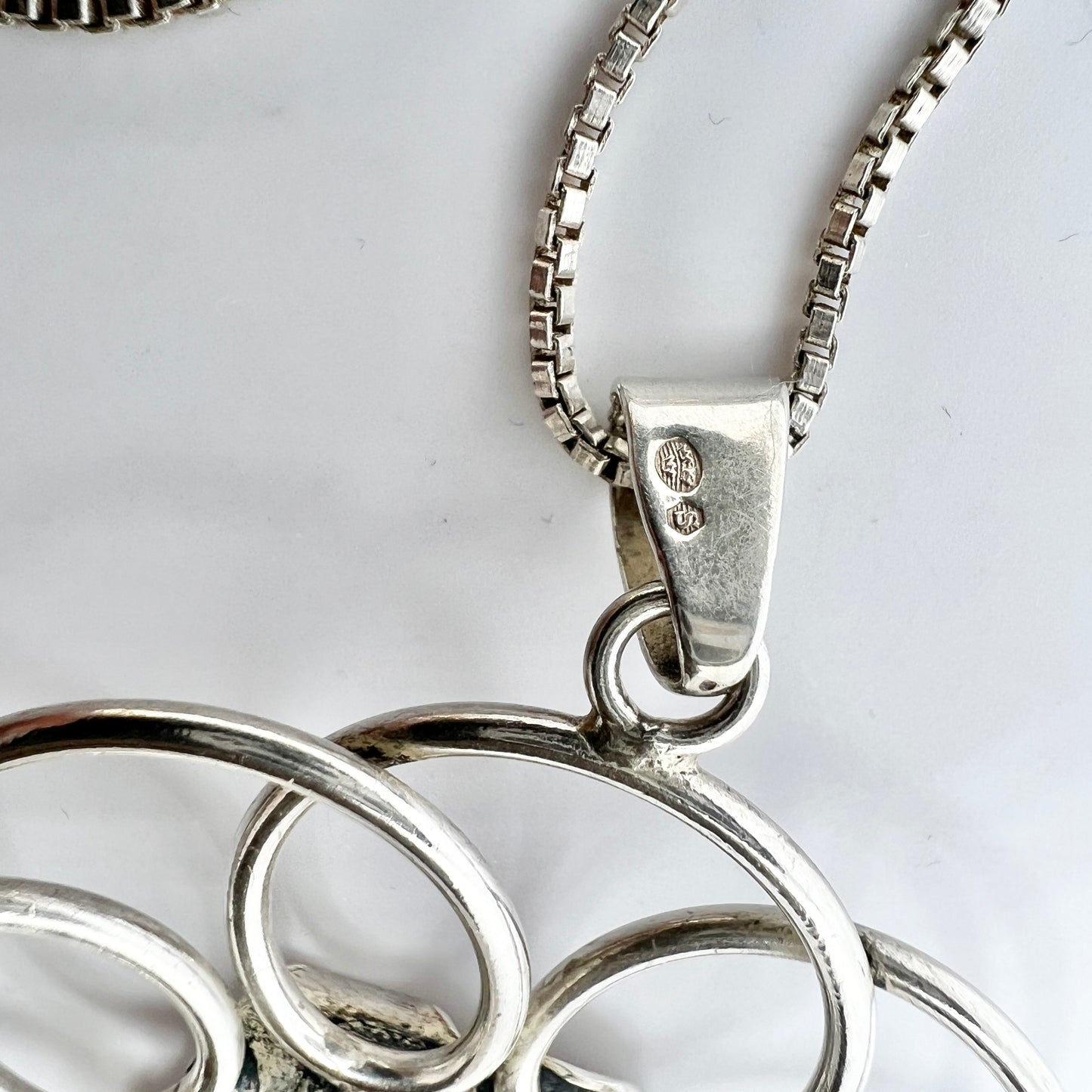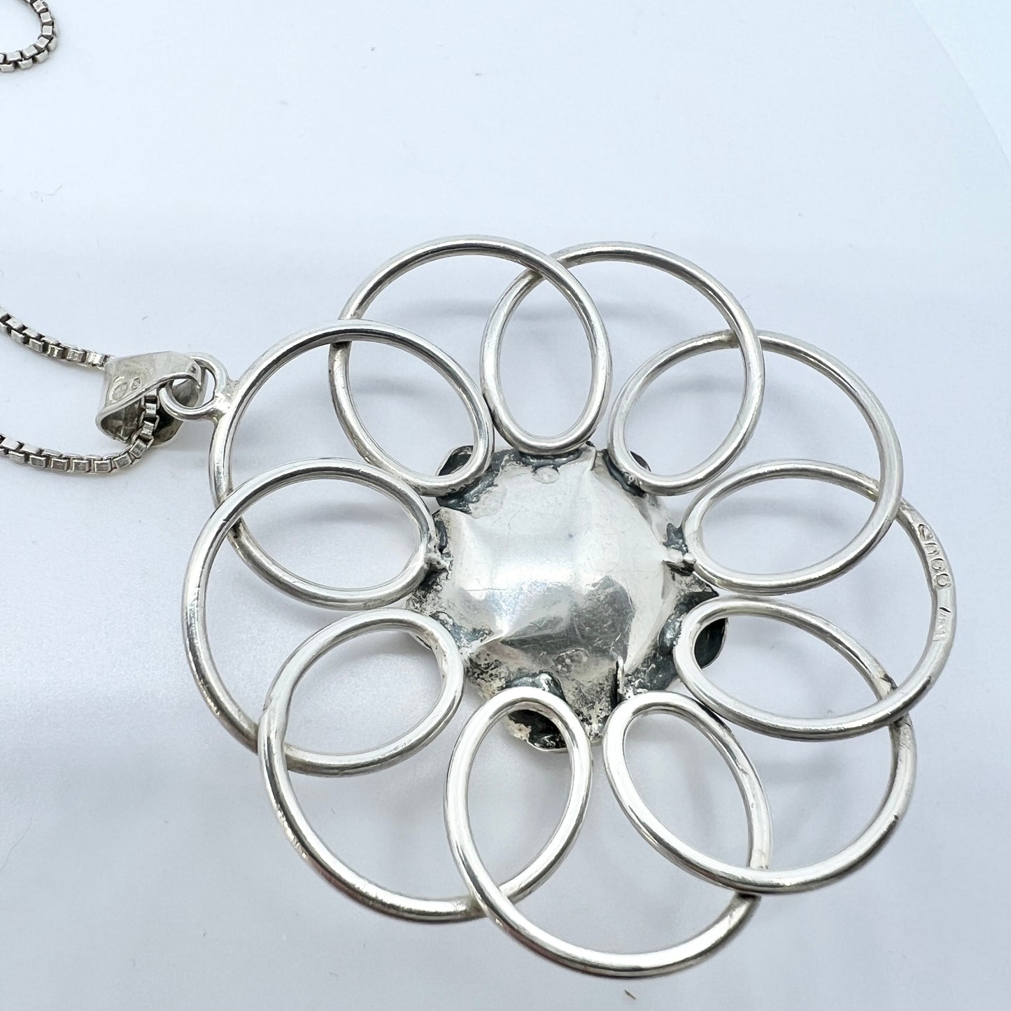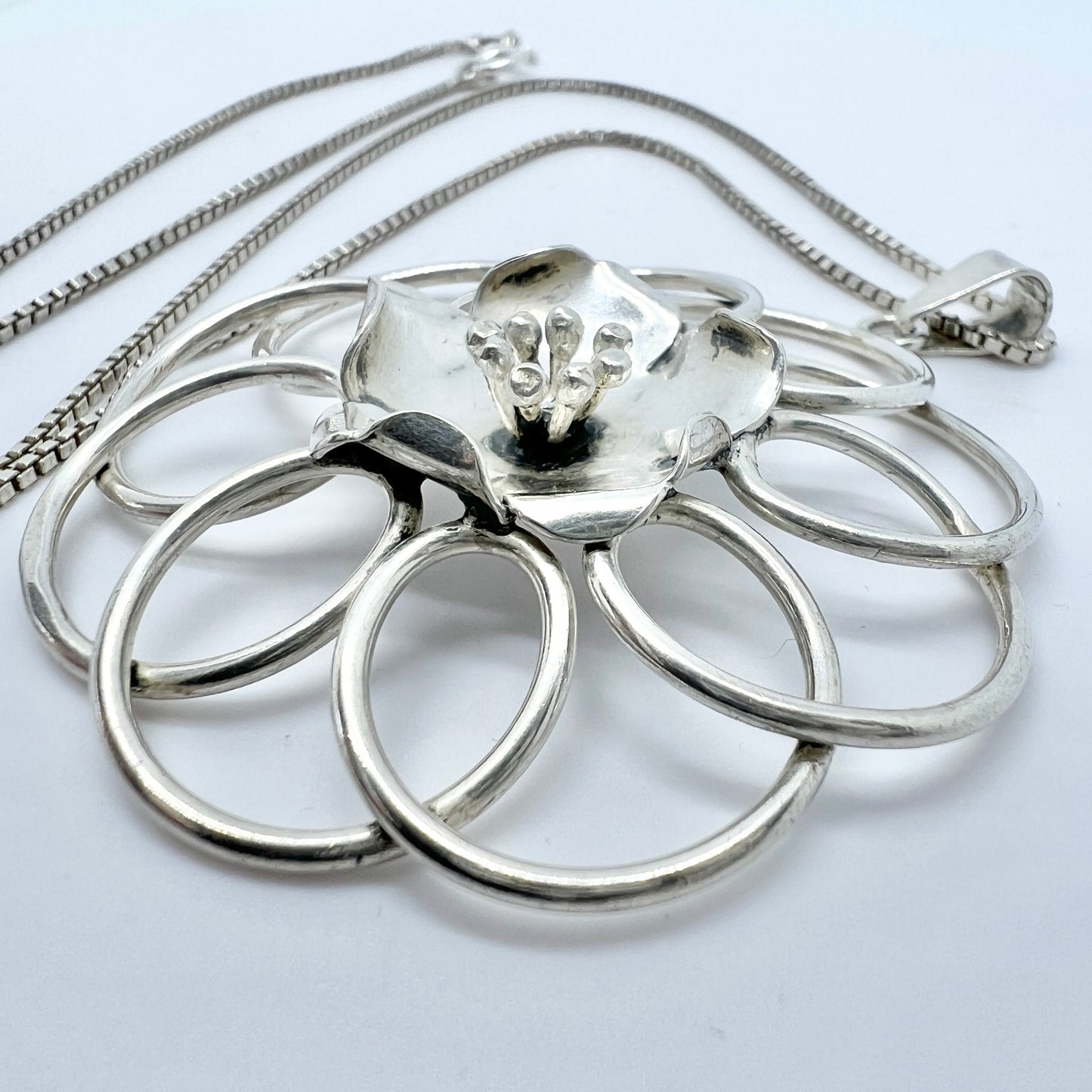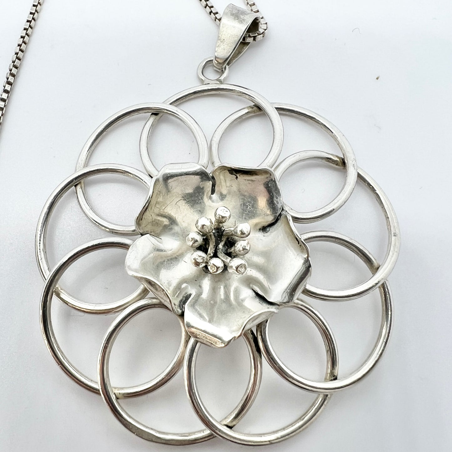 Sweden 1940-50s. Solid Silver Flower Pendant Necklace.