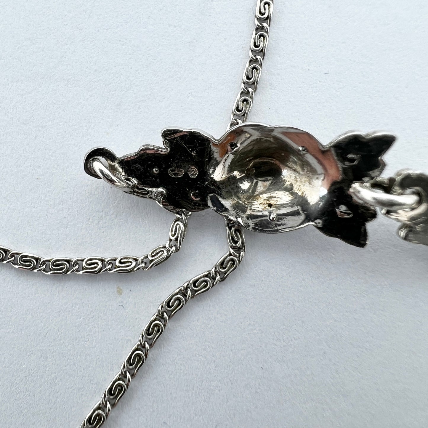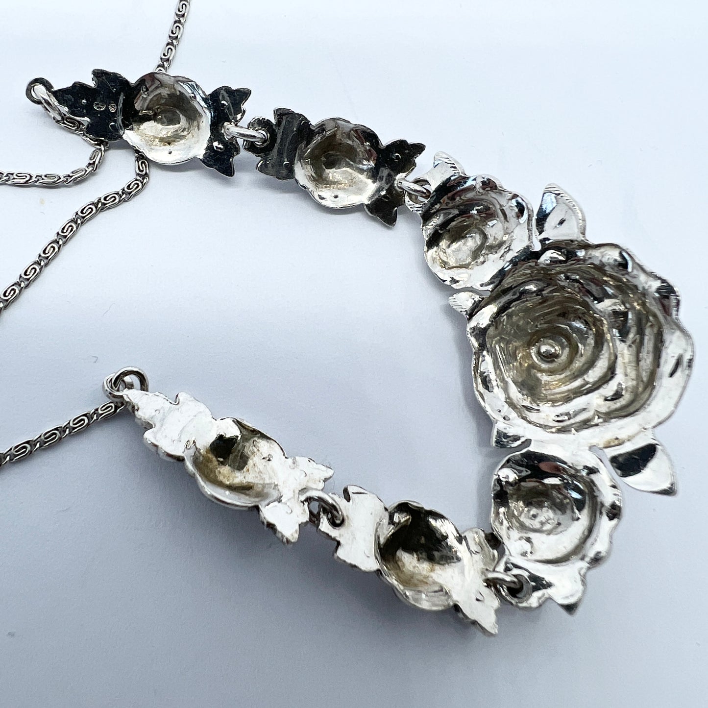 Sweden 1940s. Solid Silver Marcasite Flower Necklace.