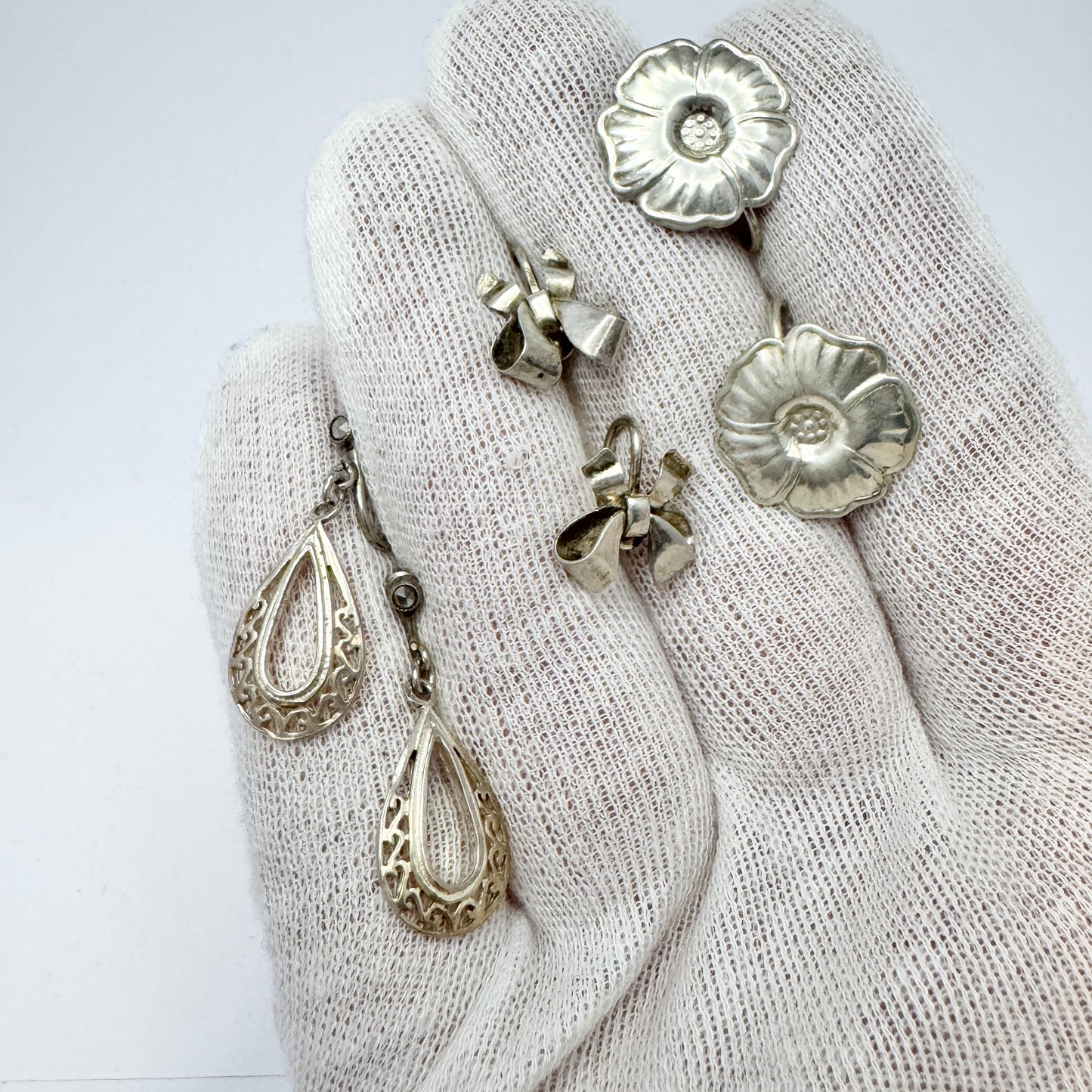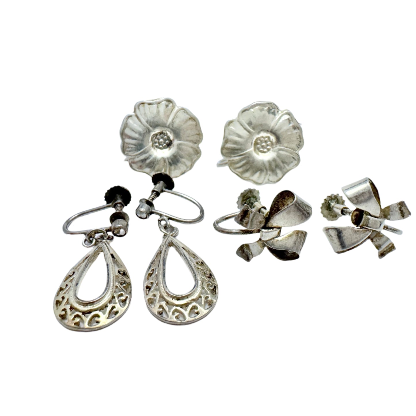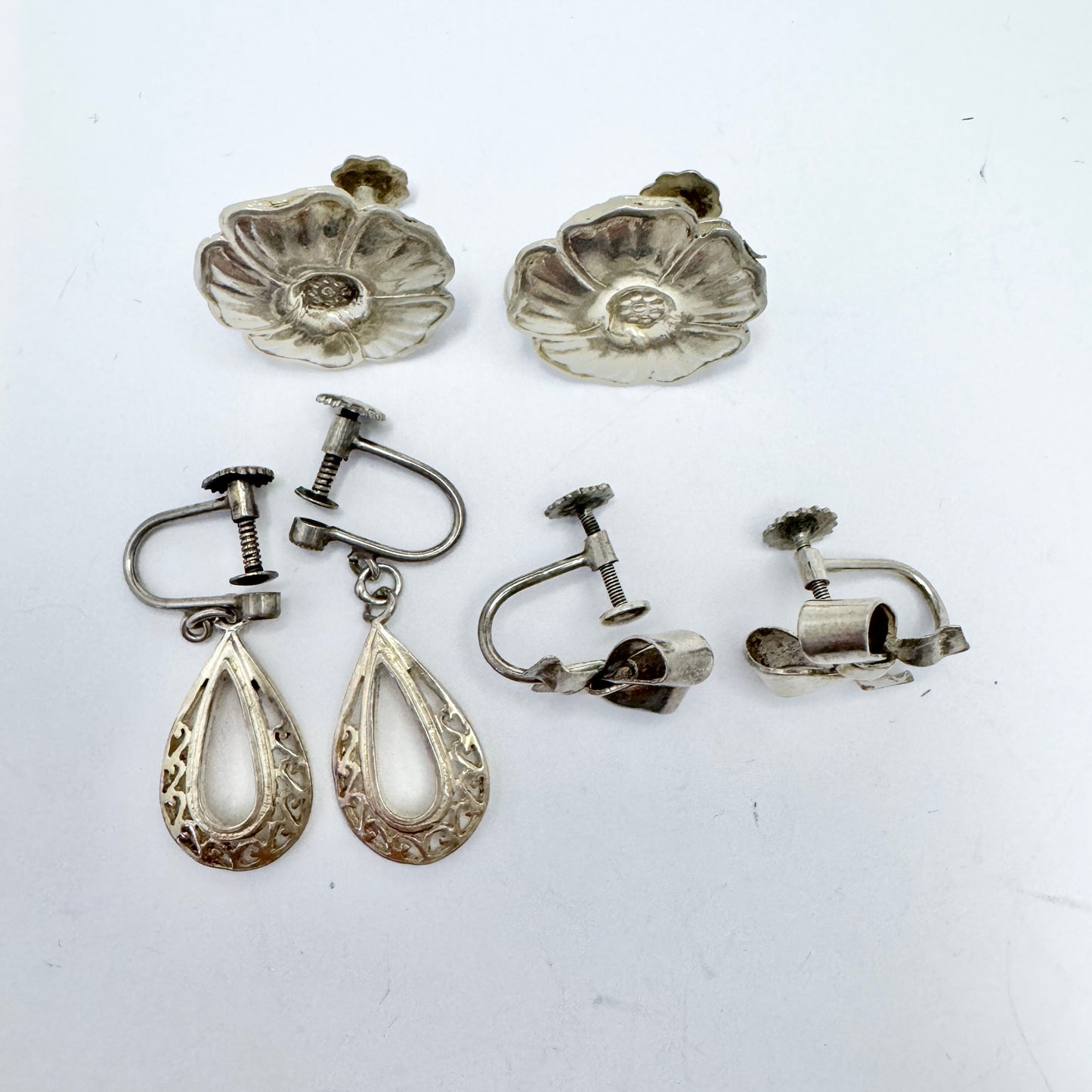 Sweden 1940s. Three Pair of Vintage Solid Silver Screw-Back Earrings.