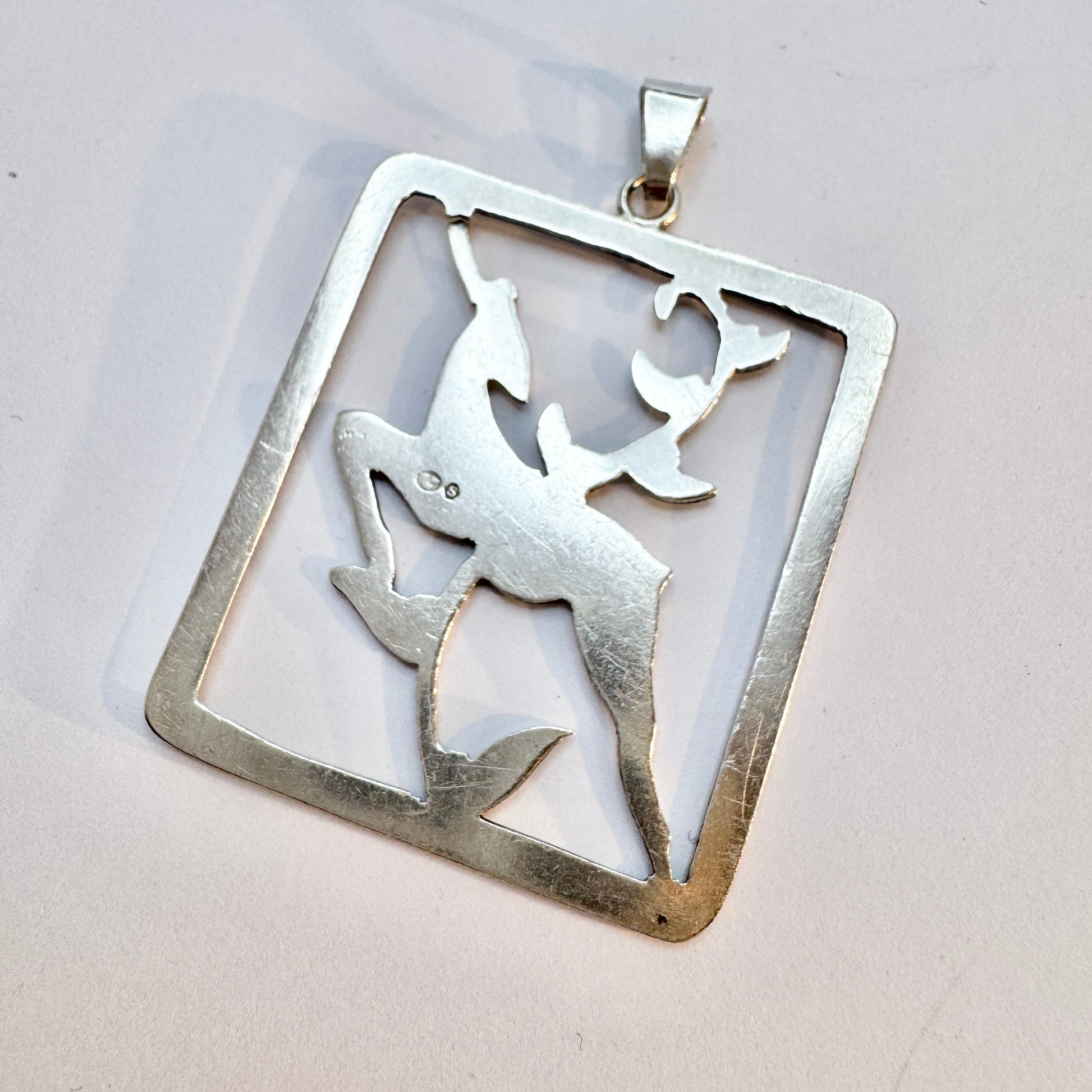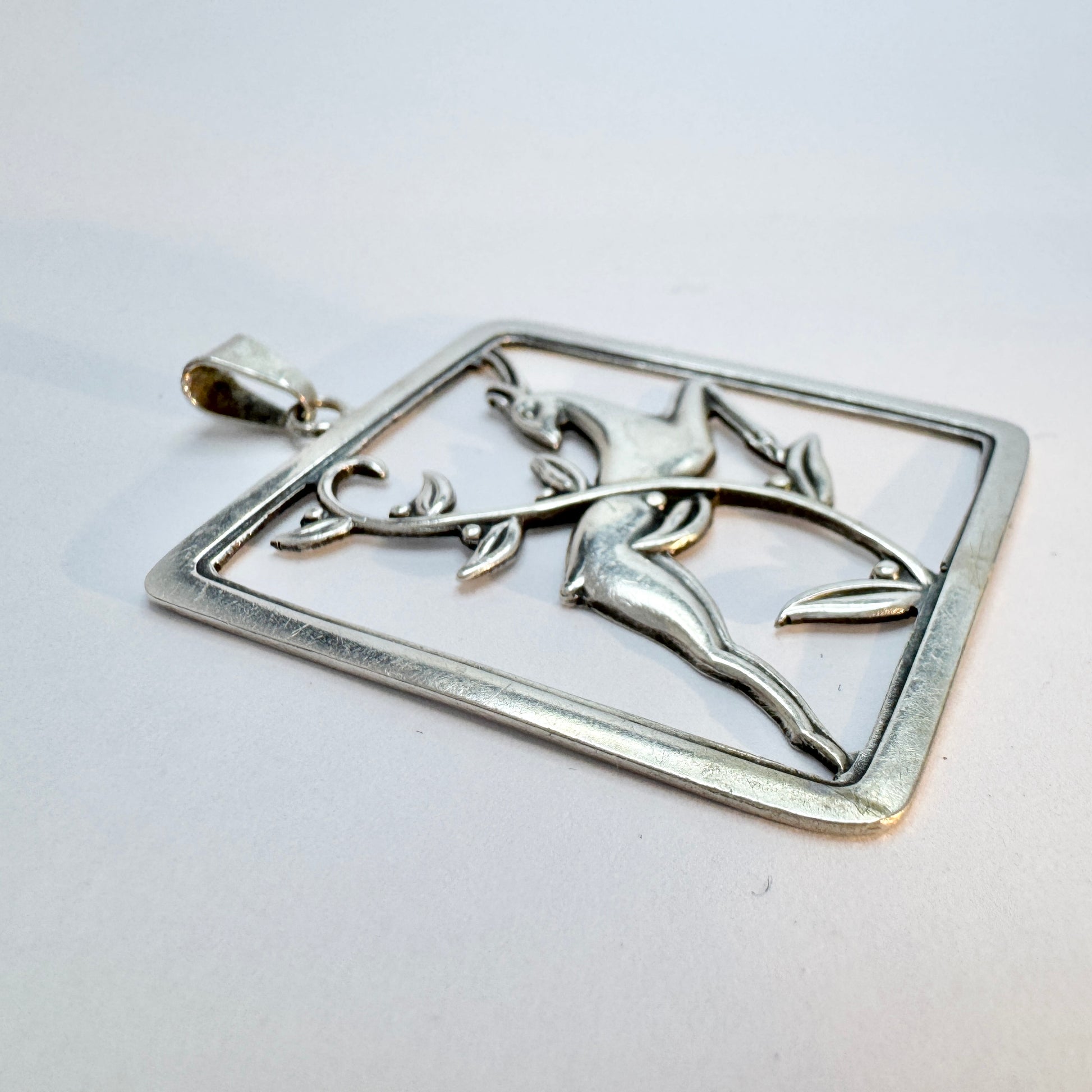 Beautiful and sought after vintage sterling silver deer pendant. Hallmarked with Swedish control marks, 1940s.