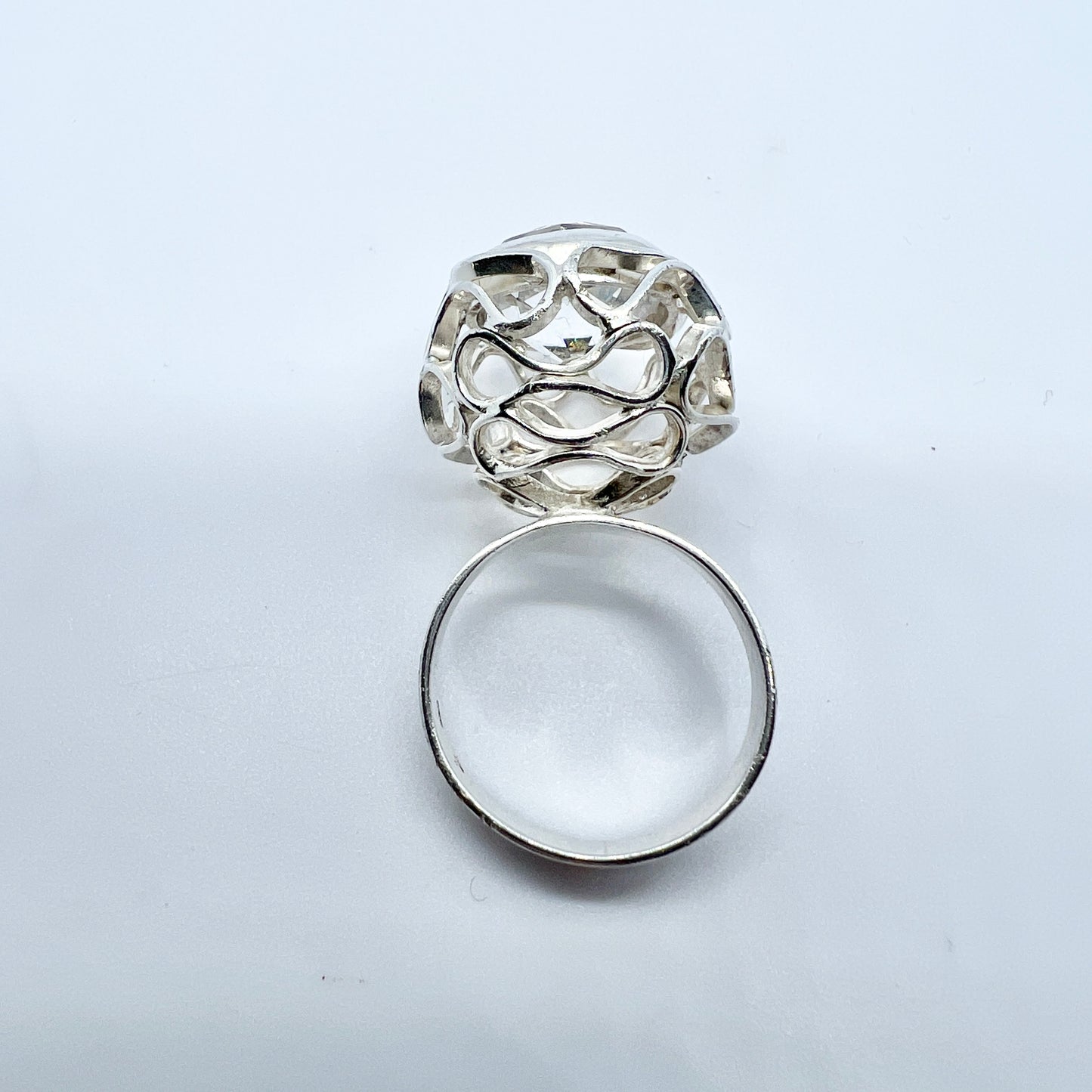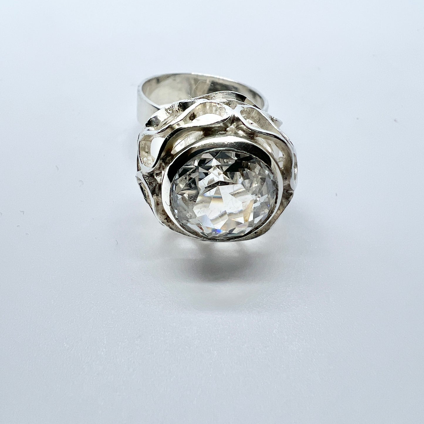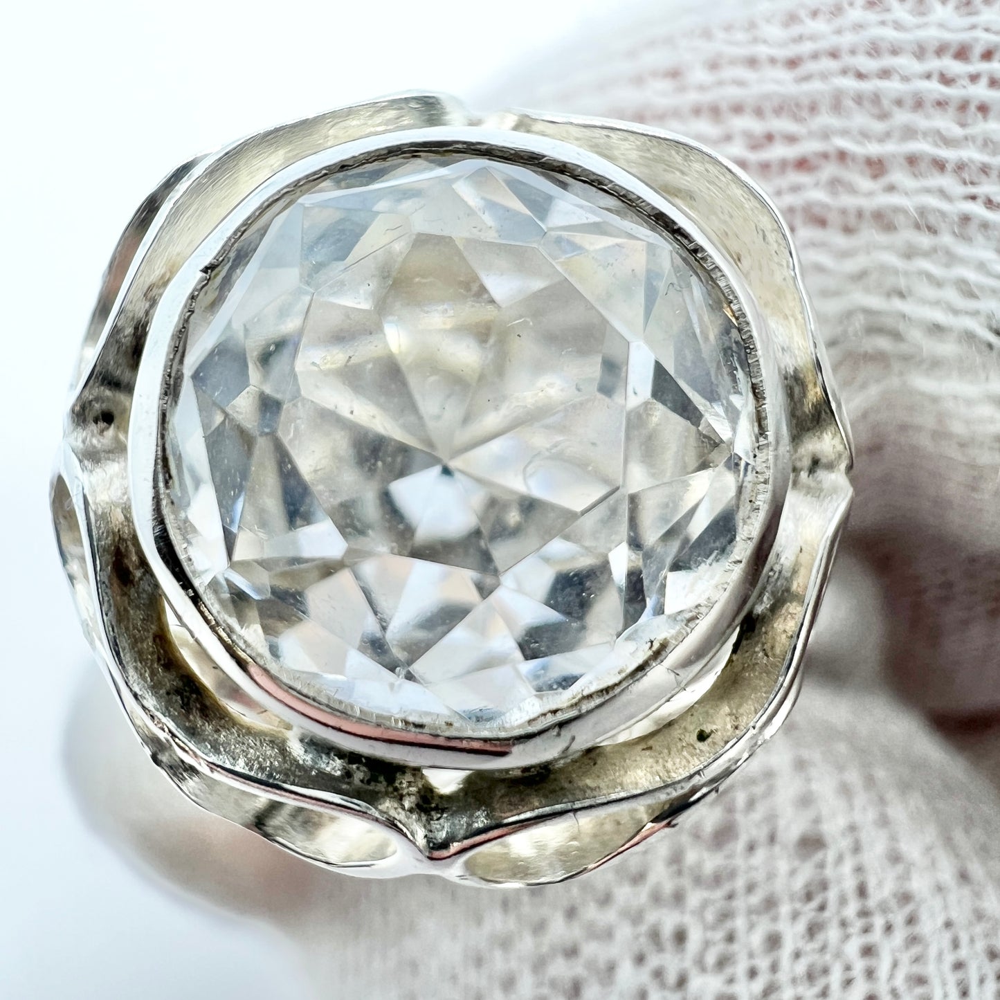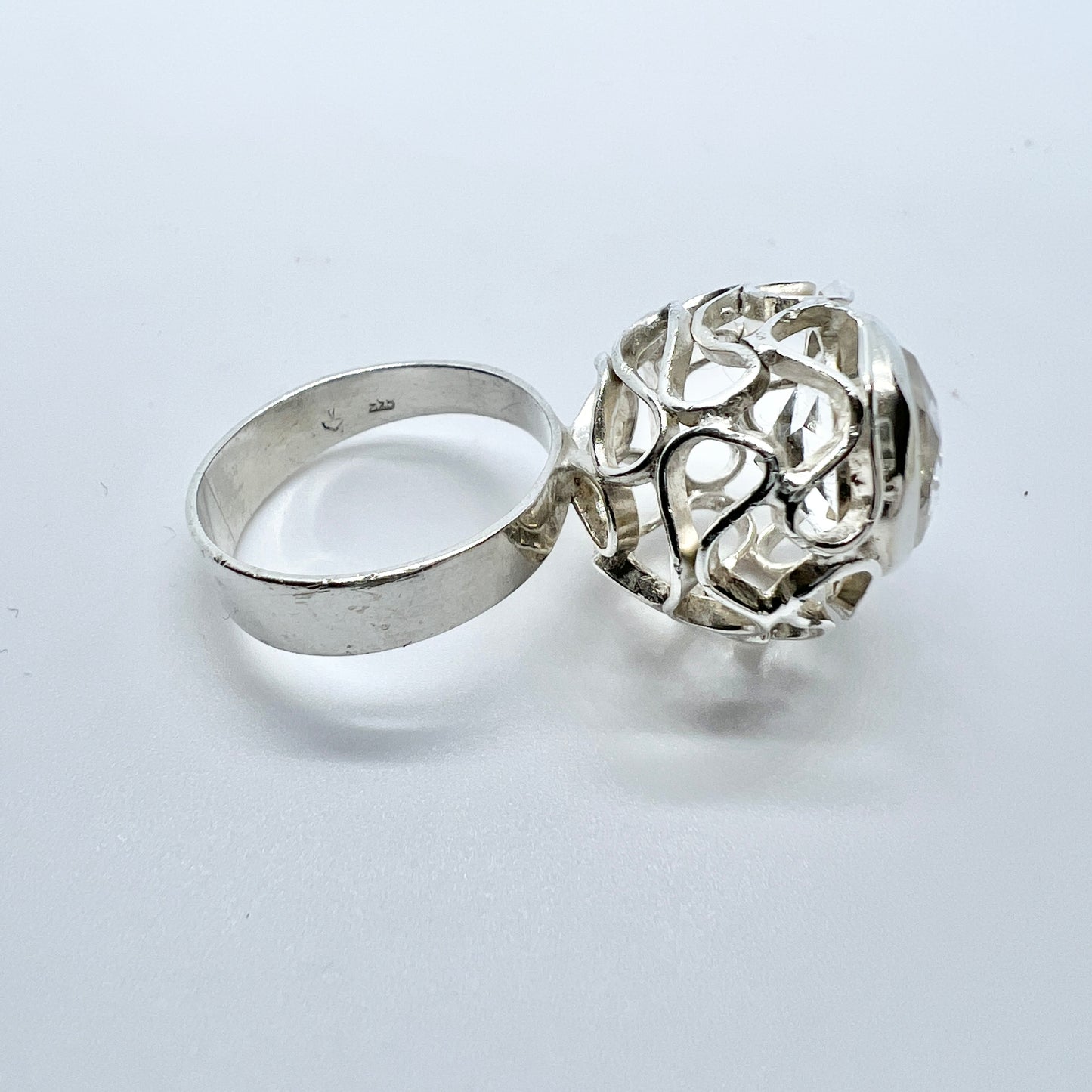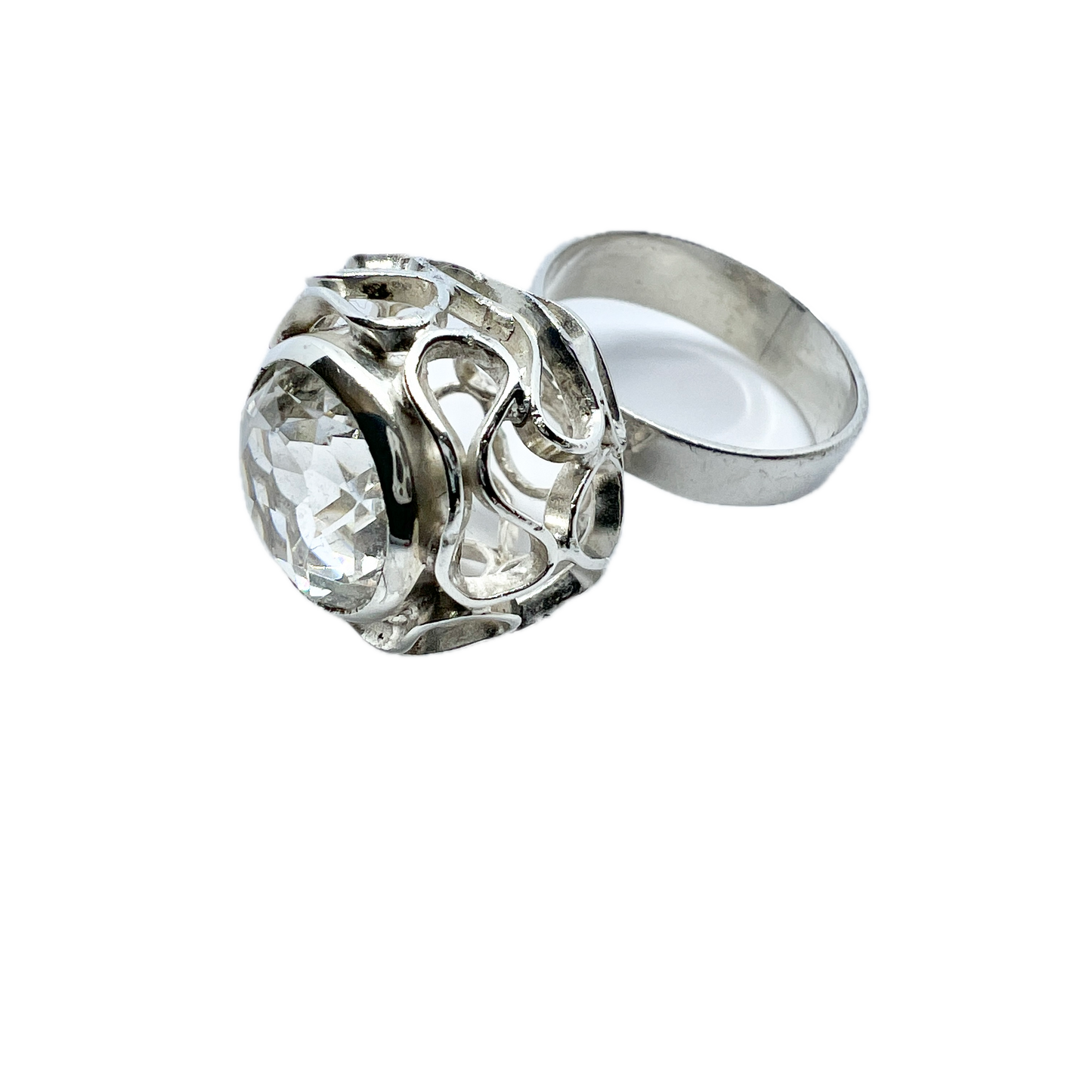 Sweden 1960-70s. Vintage Solid Silver Rock Crystal Ring.