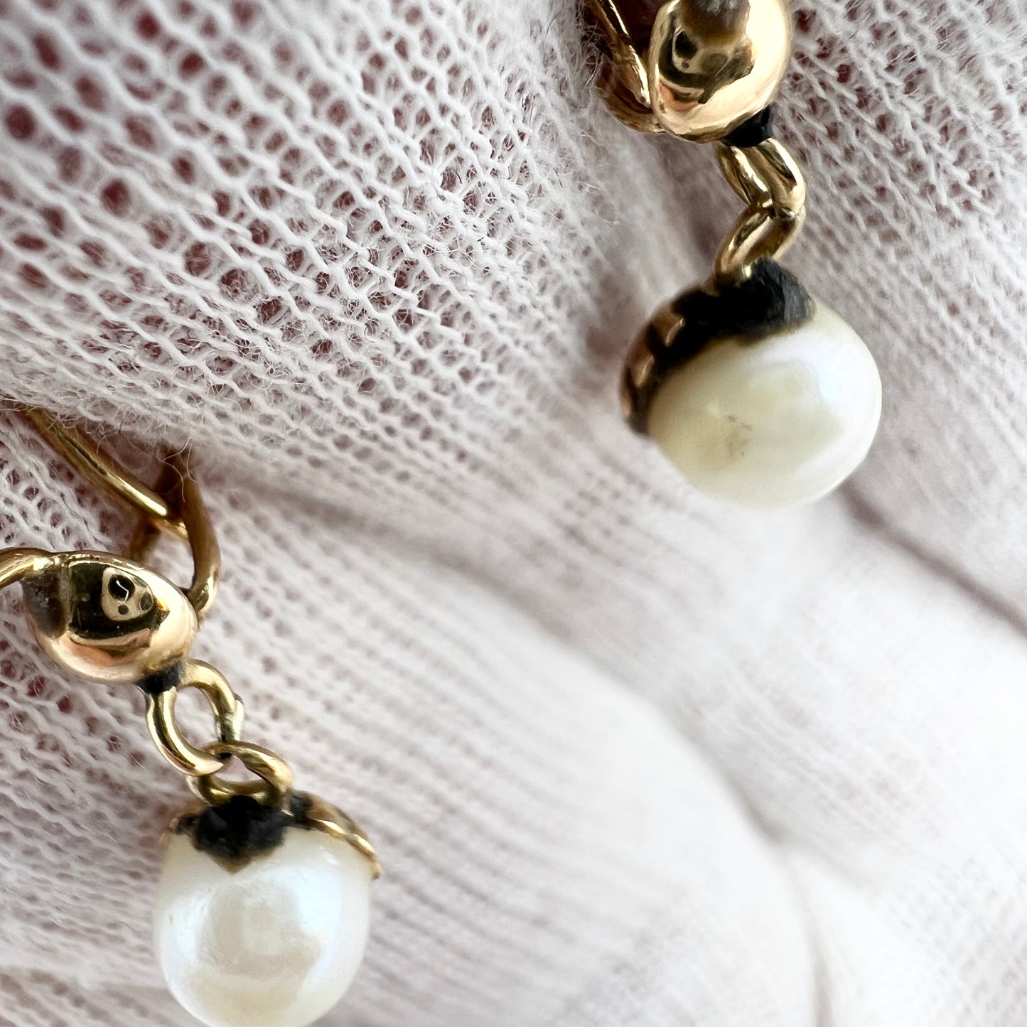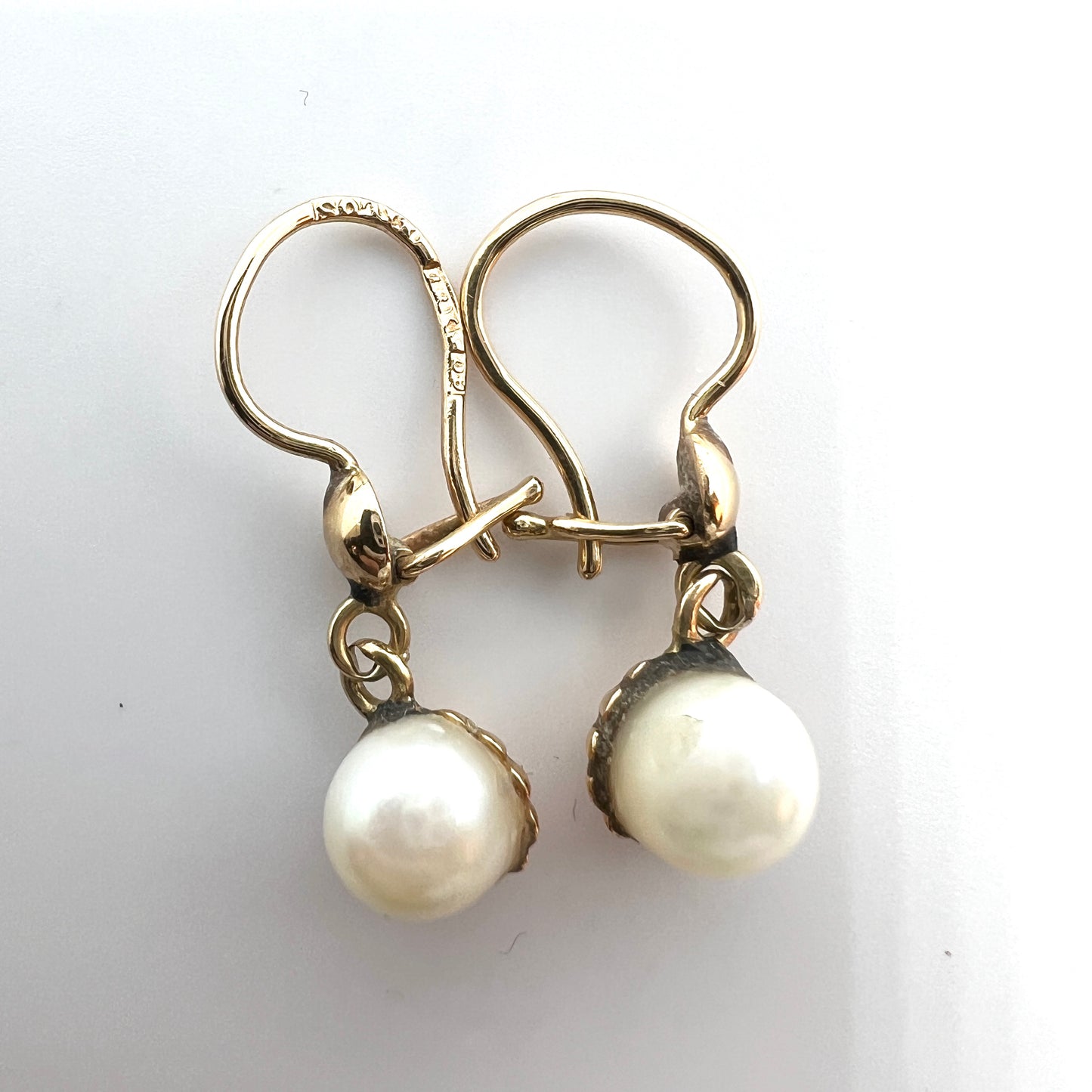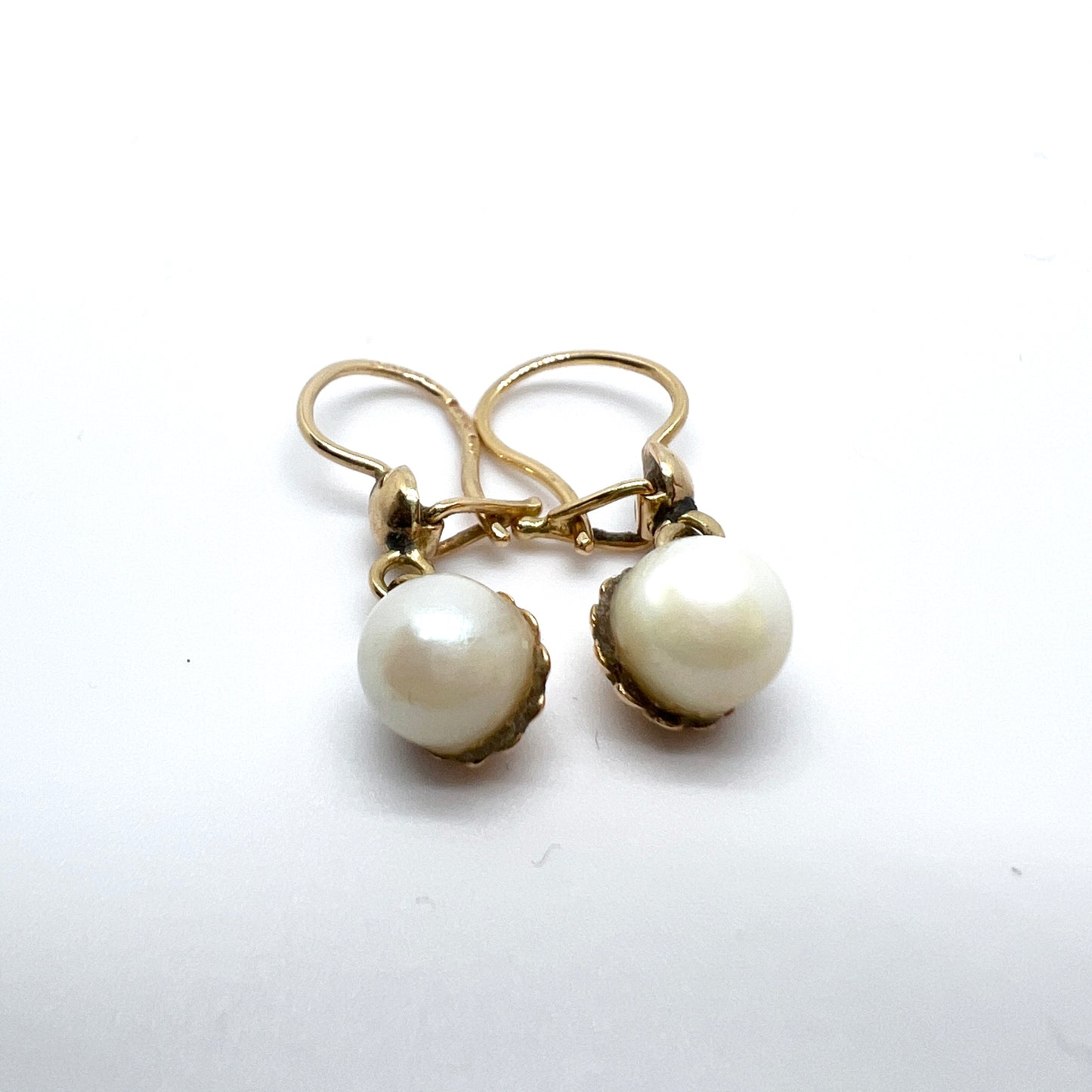 Beautiful vintage 18k gold cultured pearl earrings. Hallmarked for 18k gold, Sweden year 1964. Indistinct makers mark.