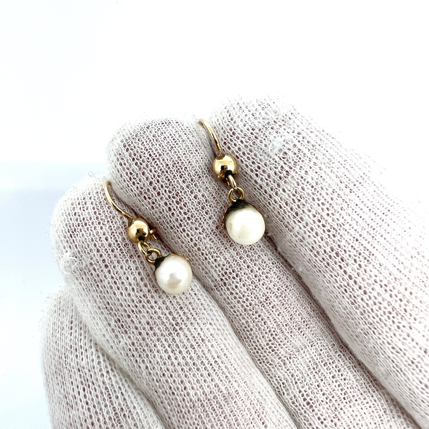 Sweden 1964 Vintage 18k Gold Cultured Pearl Earrings.