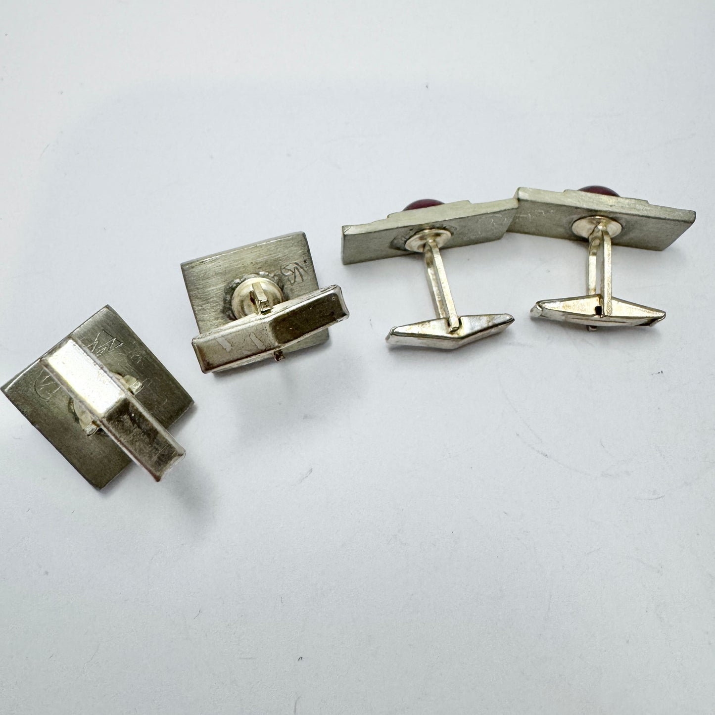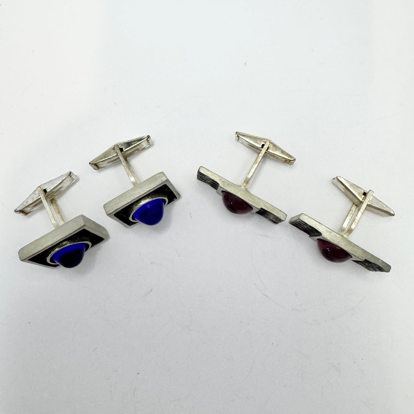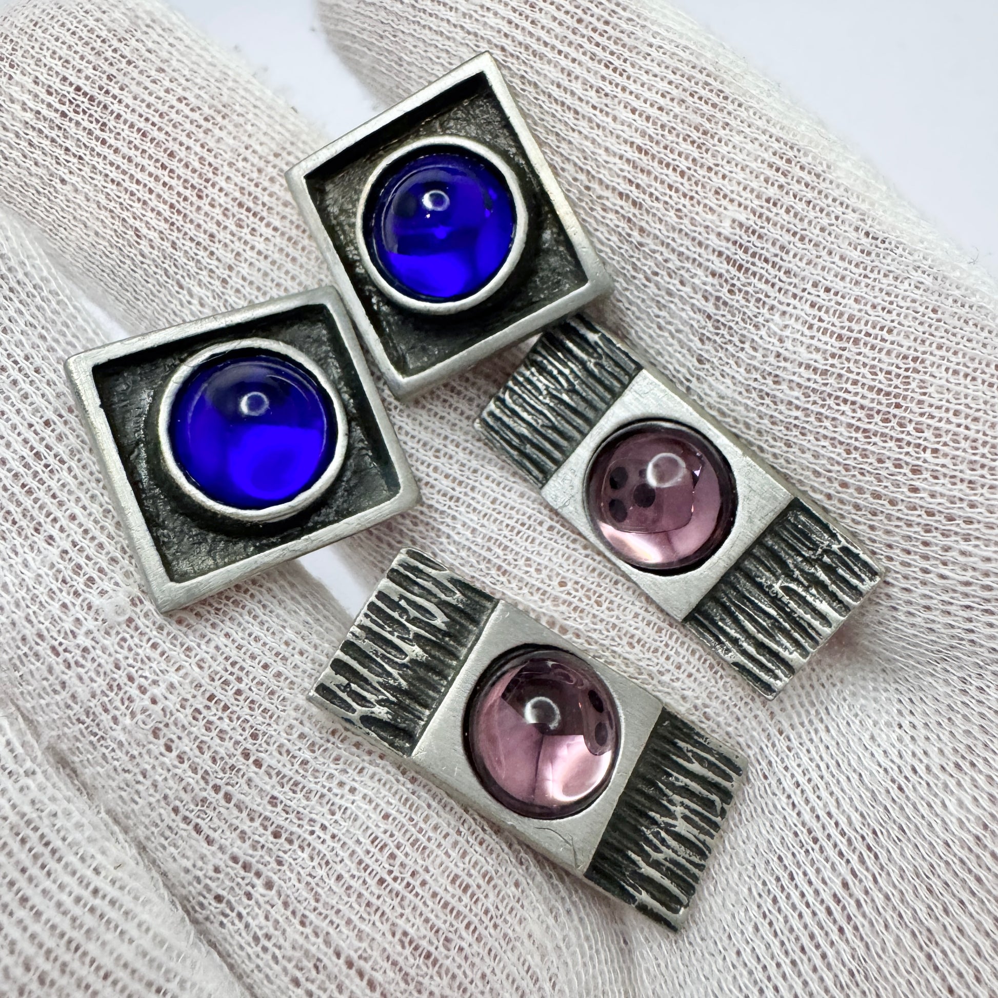Sweden 1968. Two Vintage Pair of Pewter Paste Stone Cufflinks.