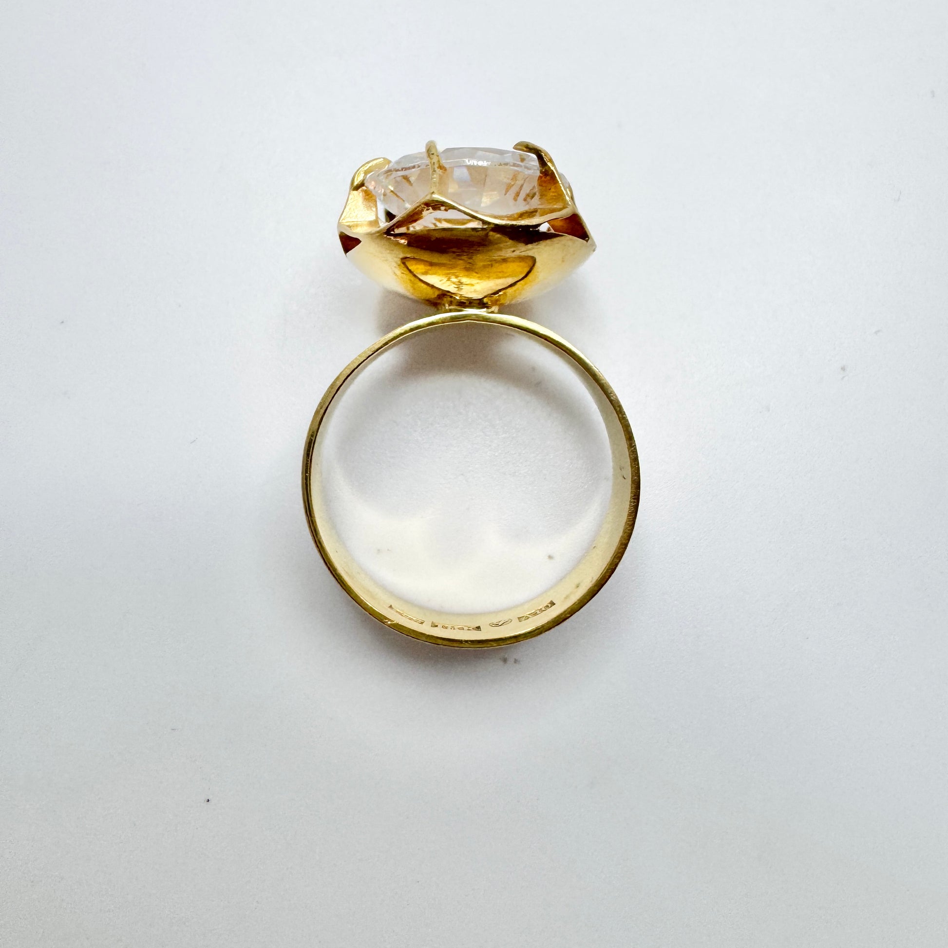 Sweden 1975. Vintage 18k Gold Rock Crystal Cocktail Ring. 6 gram