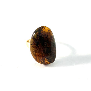 Sweden 1977. Vintage 18k Gold Baltic Amber Ring.