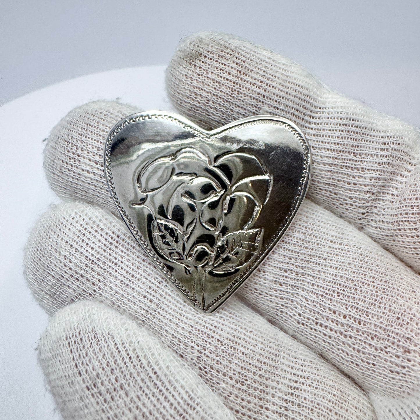 Sweden 1983. Vintage Sterling Silver Heart Rose Flower Pendant.
