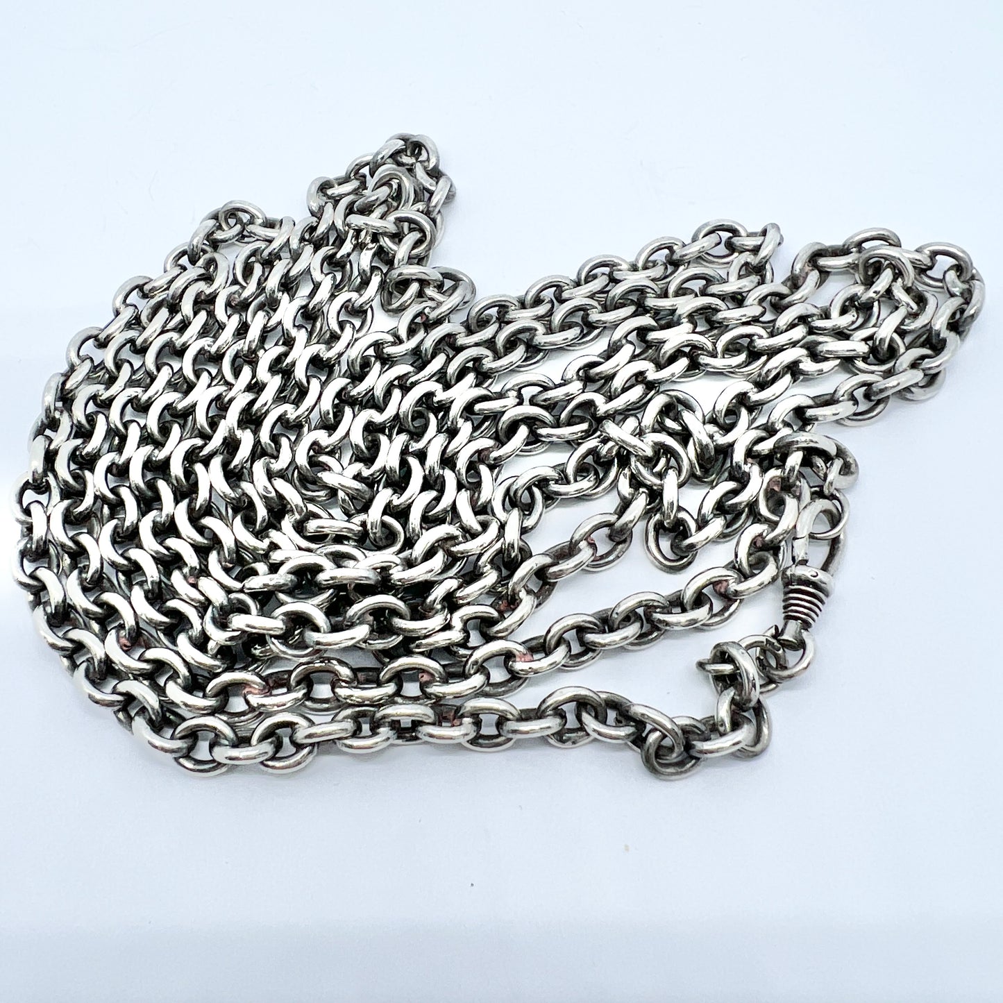 Sweden c 1900. Antique 830 Silver 56 inch Longuard Chain Necklace.