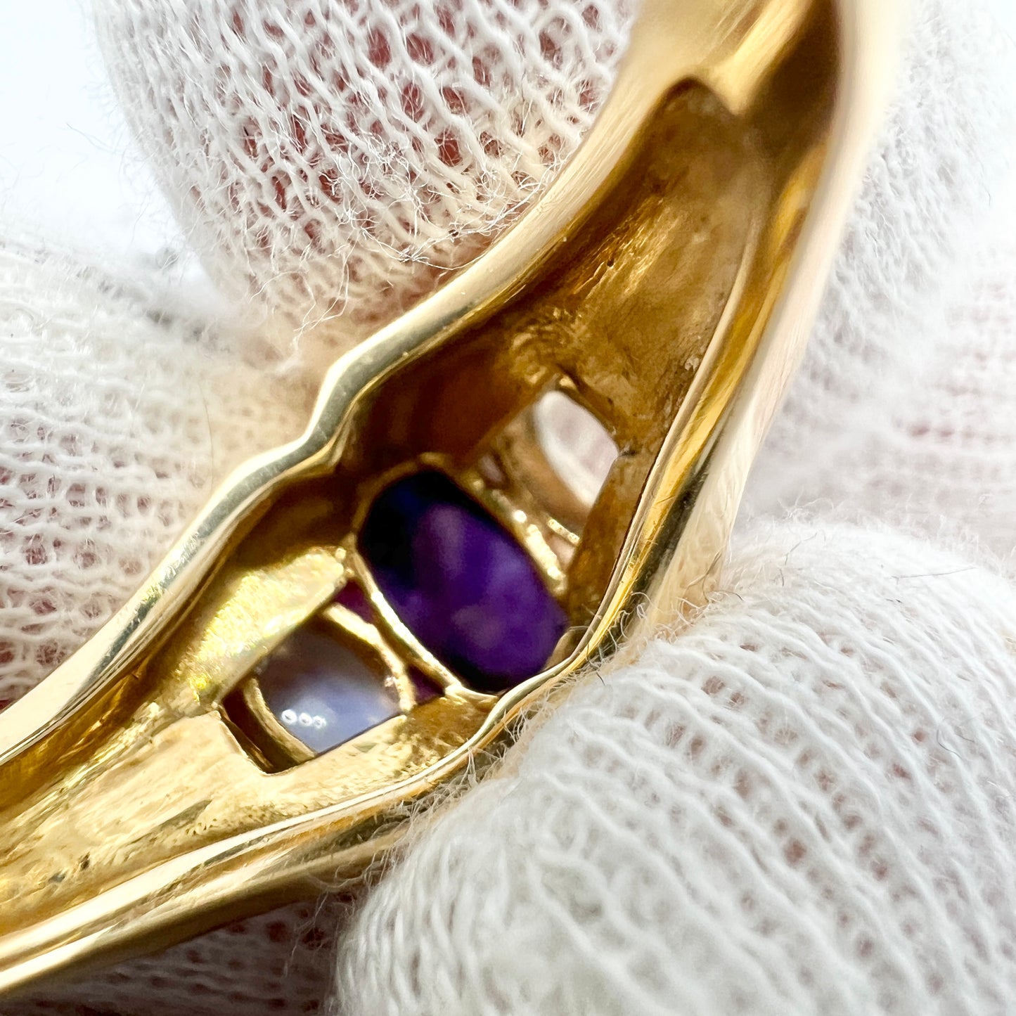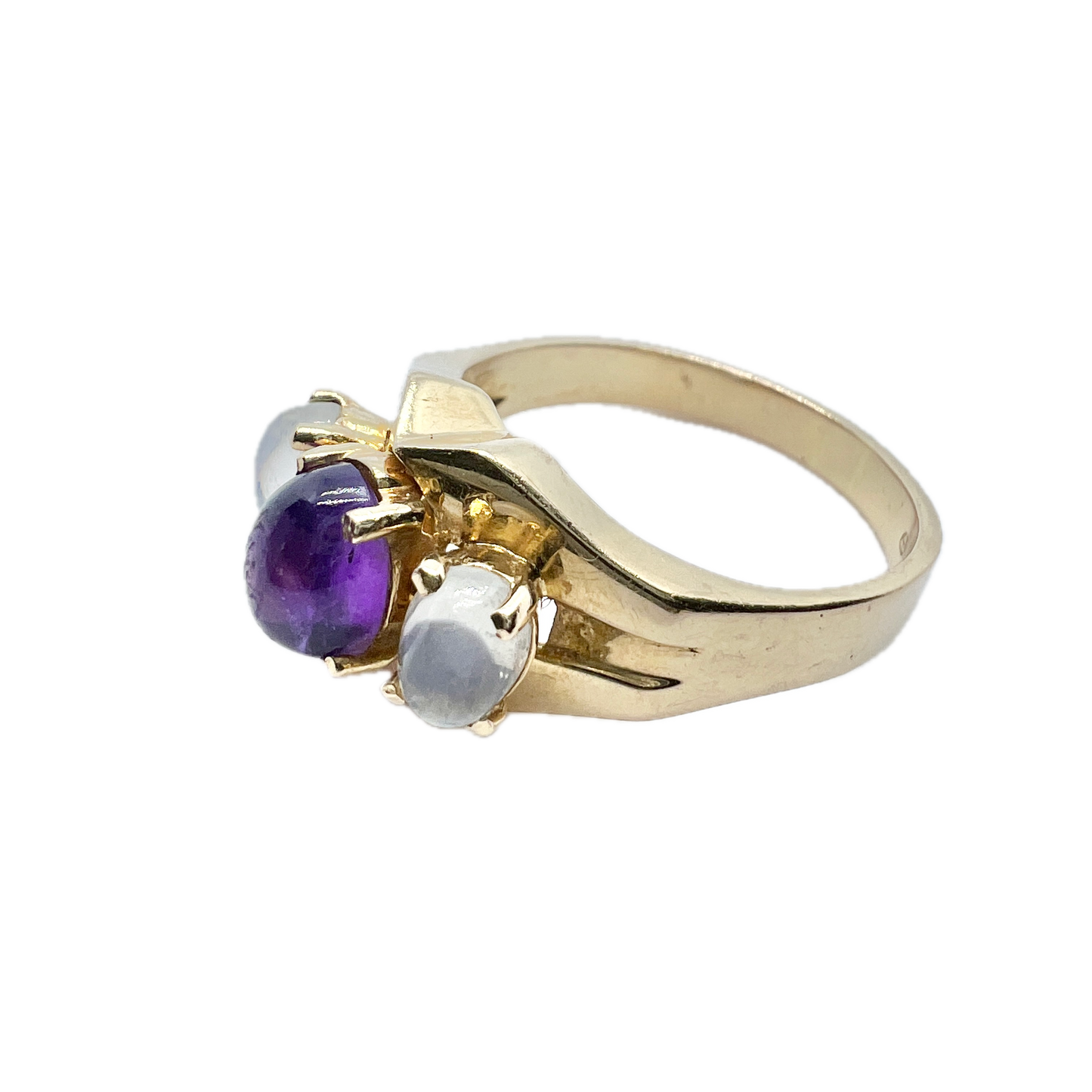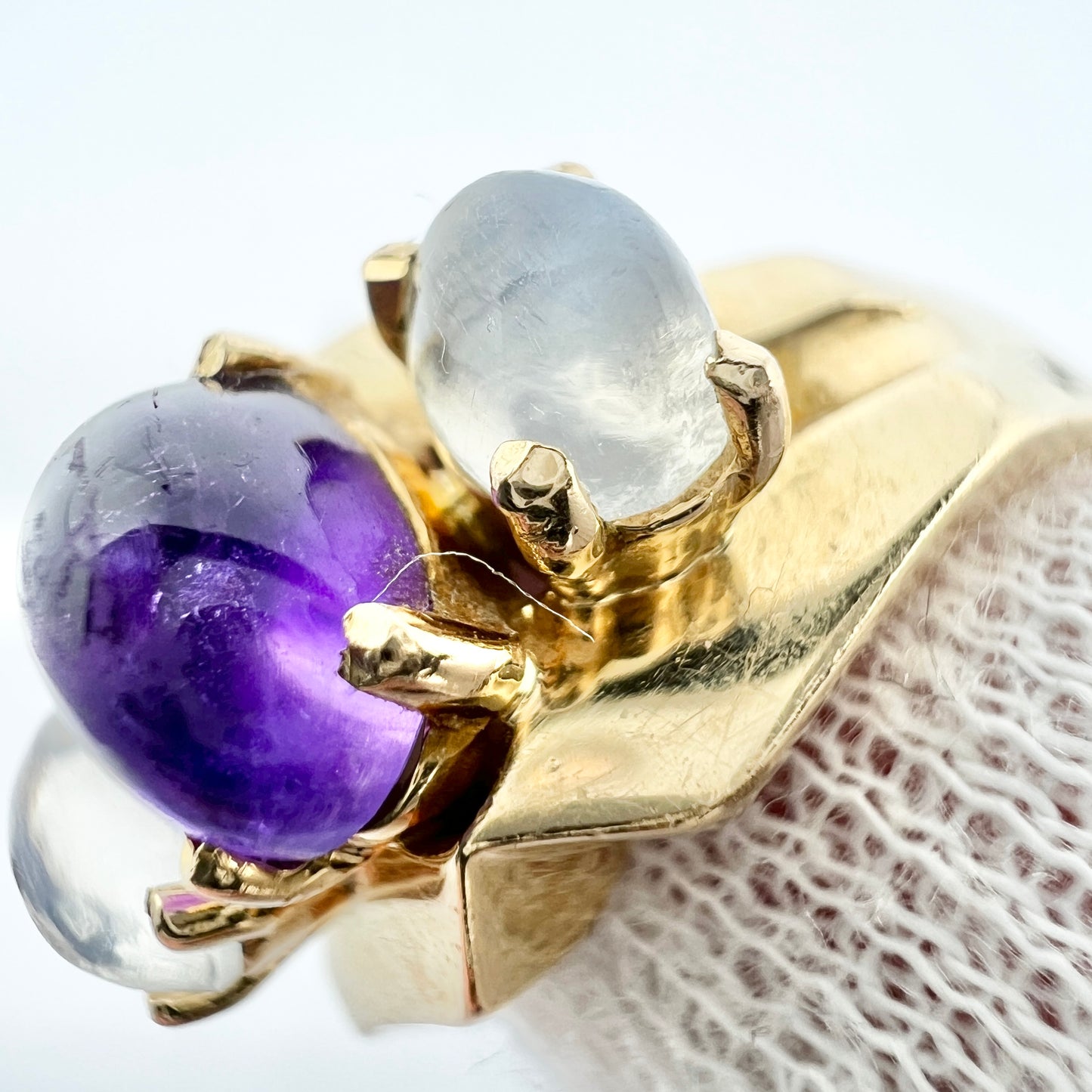 Sweden c 1950s. Vintage 18k Gold Moonstone Amethyst Ring.