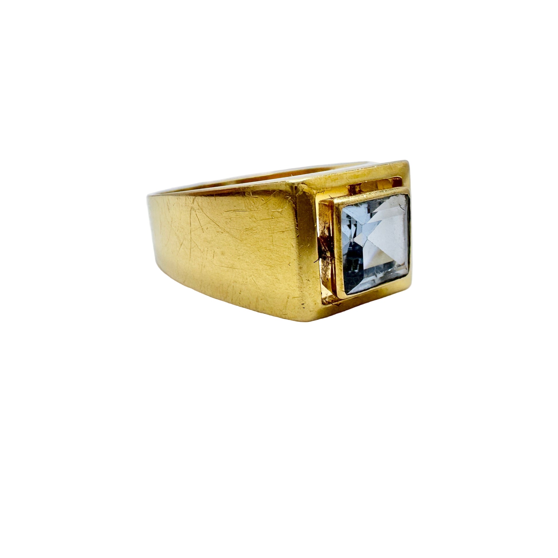 Sweden c 1960 Vintage Mid-century 18k Gold Blue Synthetic Spinel Ring