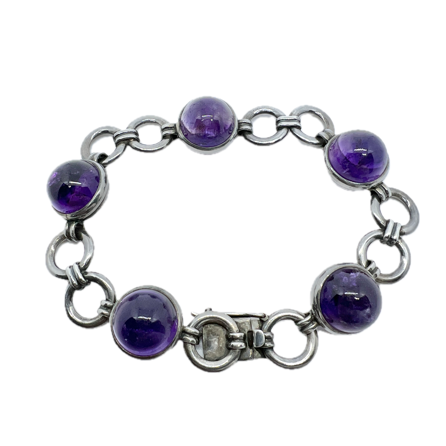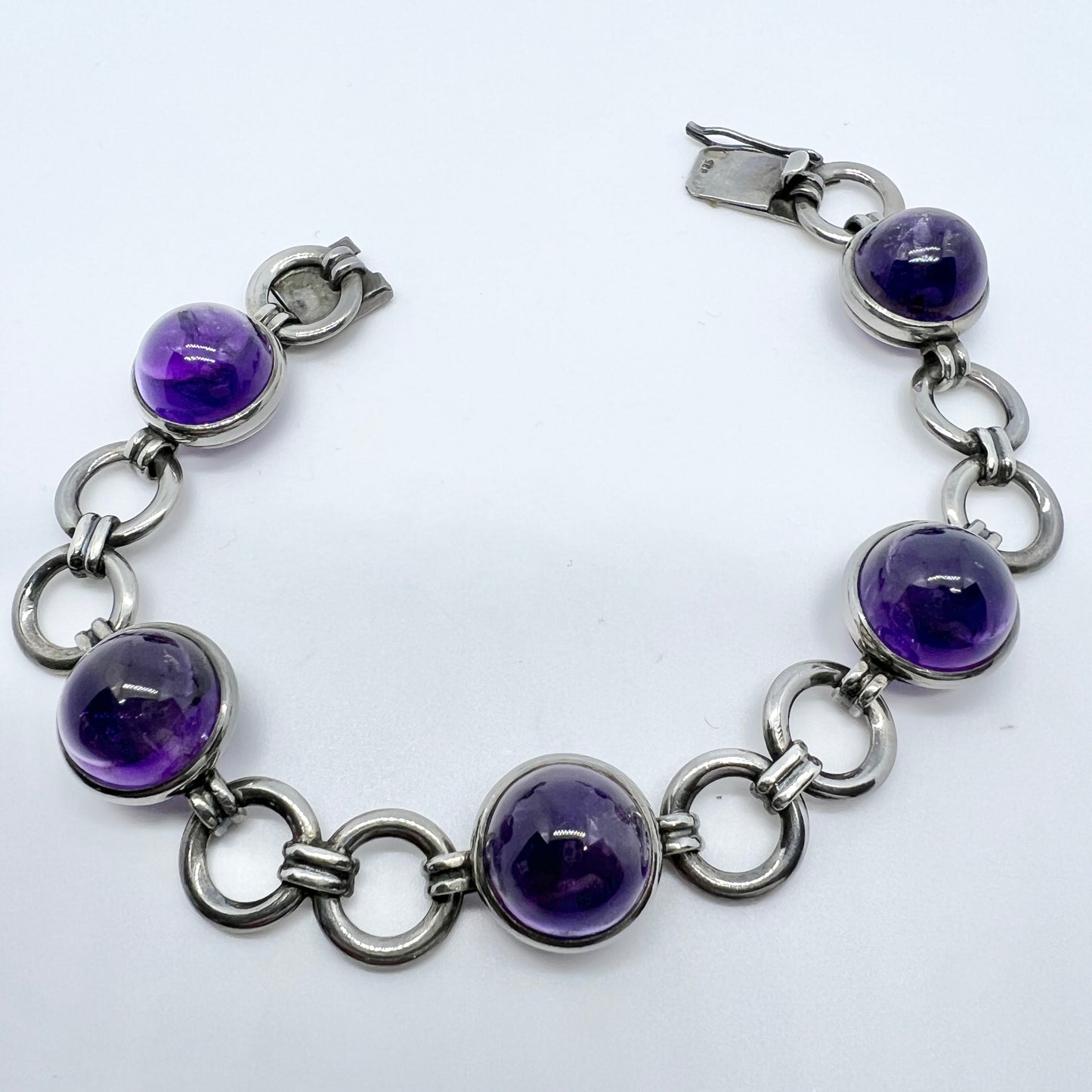 Sweden c 1960s. Vintage Solid Silver Amethyst Bracelet.