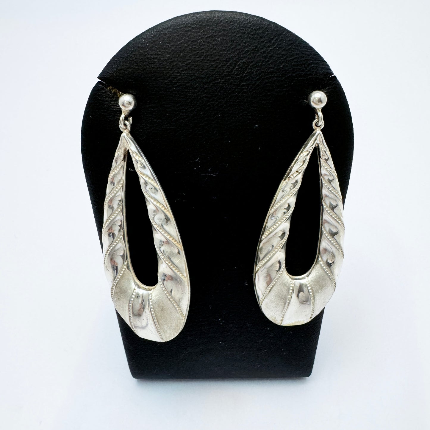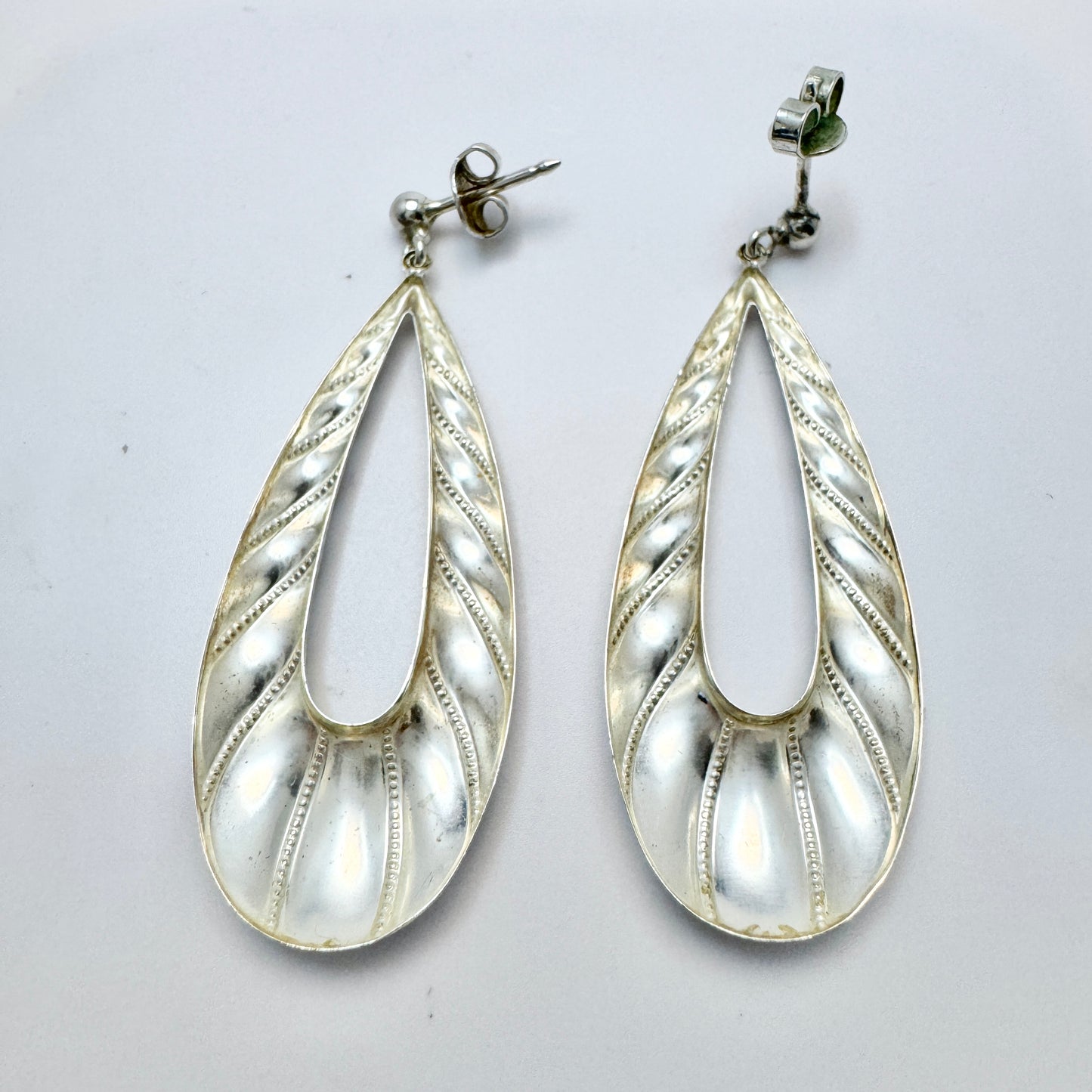 Sweden c 1980s. Large Vintage Solid Silver Earrings.
