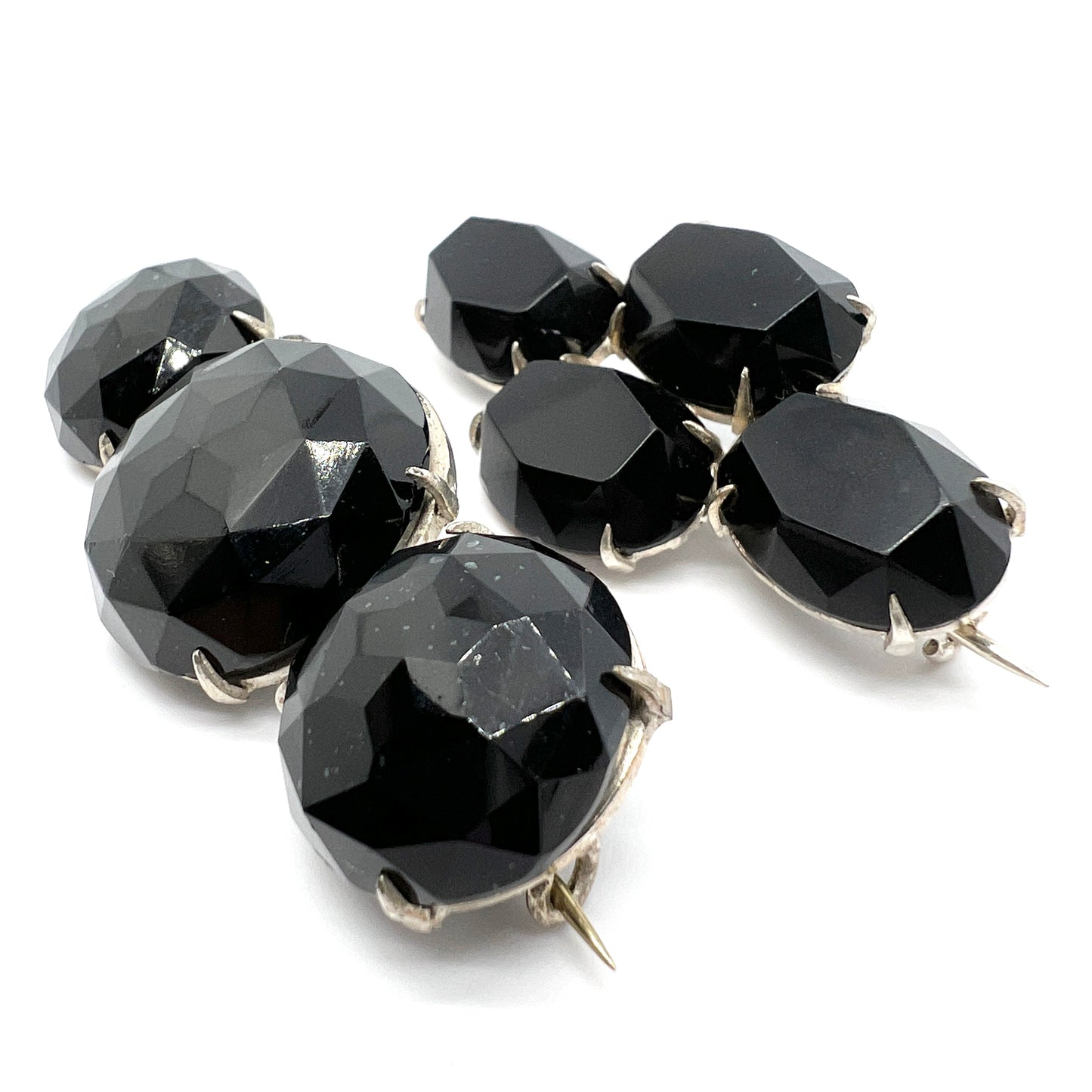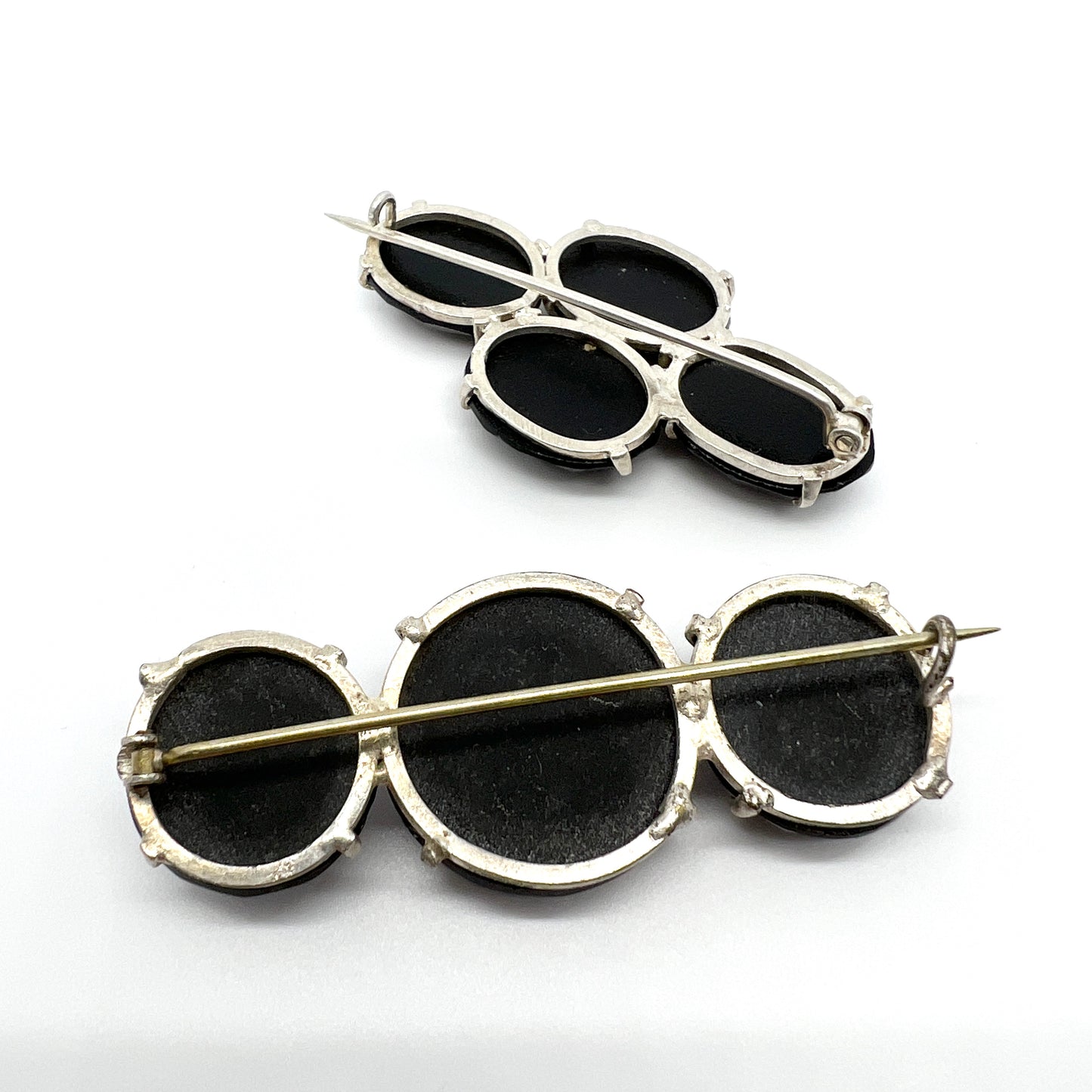 Sweden. Two Late Victorian French Jet Mourning Brooches. One in Silver One White Metal.