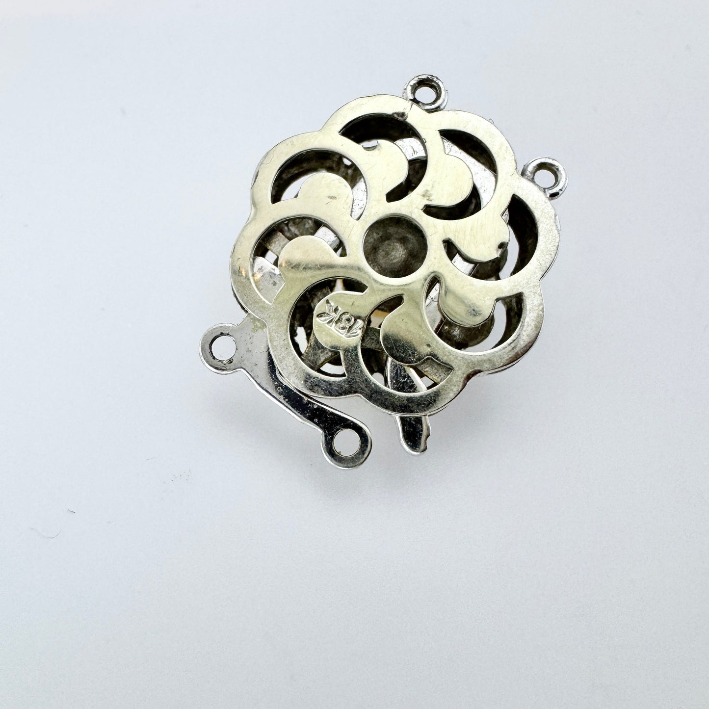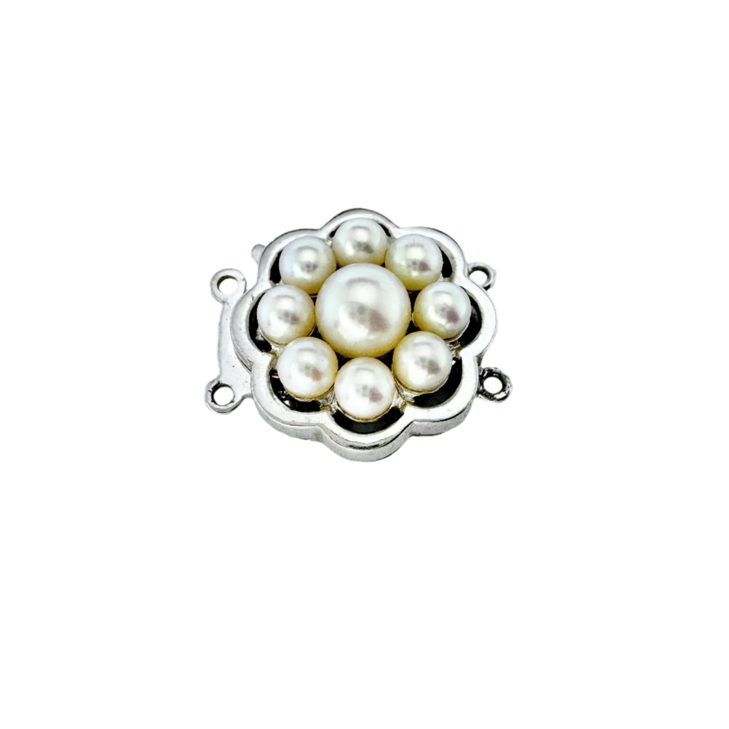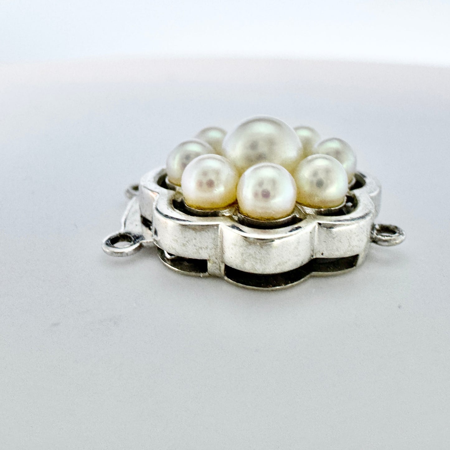 Beautiful vintage 18k white gold cultured pearl two strand clasp. Hallmarked for 18k gold and Swedish control mark.