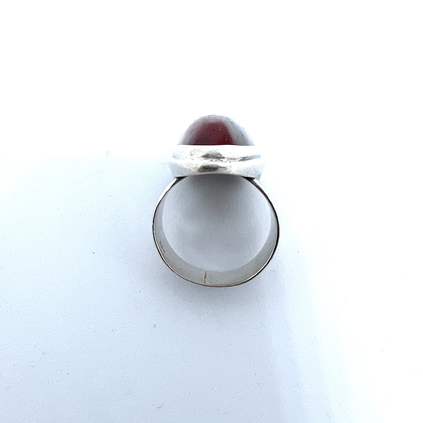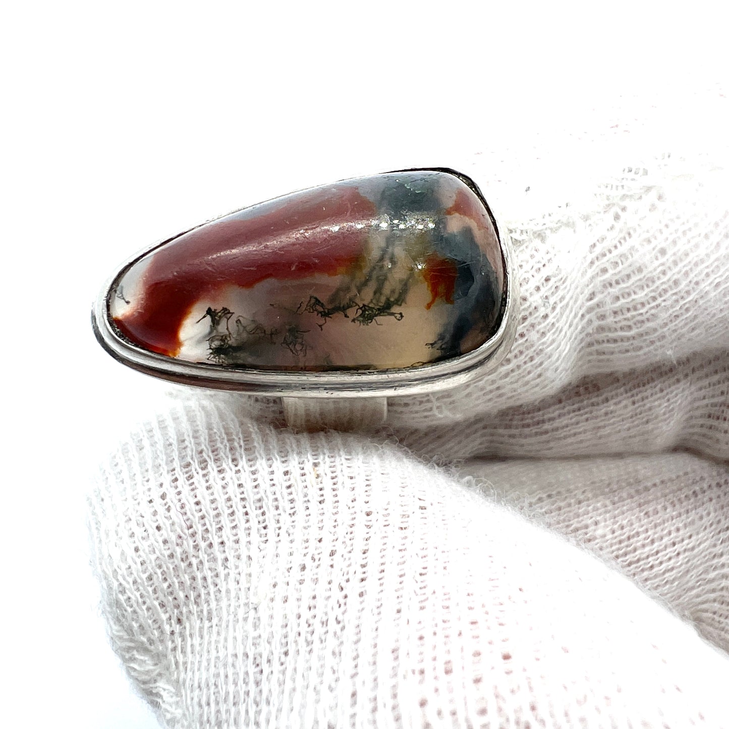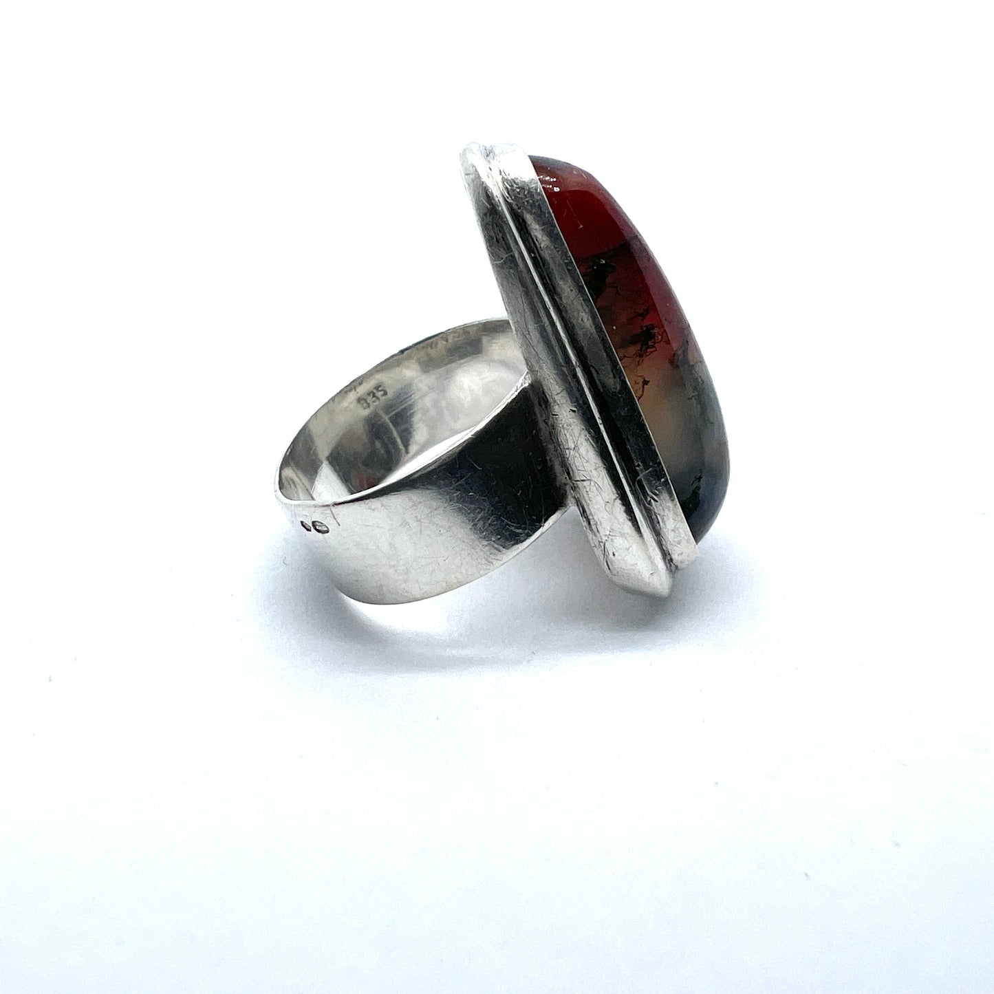 Sweden, Vintage 1950-60s Bold Solid 835 Silver Moss Agate Ring.