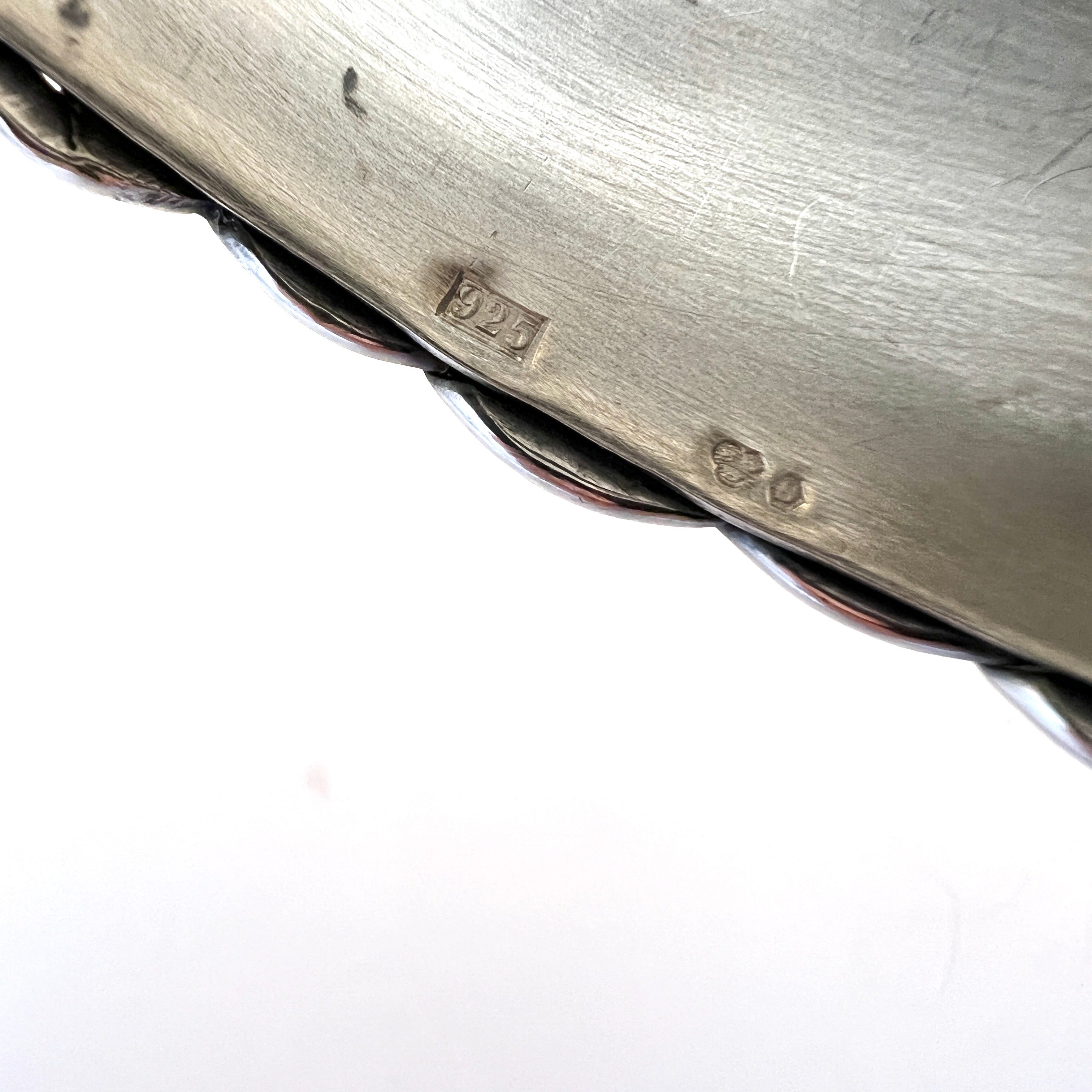 Charming and heavy vintage sterling silver bangle bracelet. Hallmarked for sterling silver (925) and Swedish control marks. Also engraved "EE", possibly the maker.