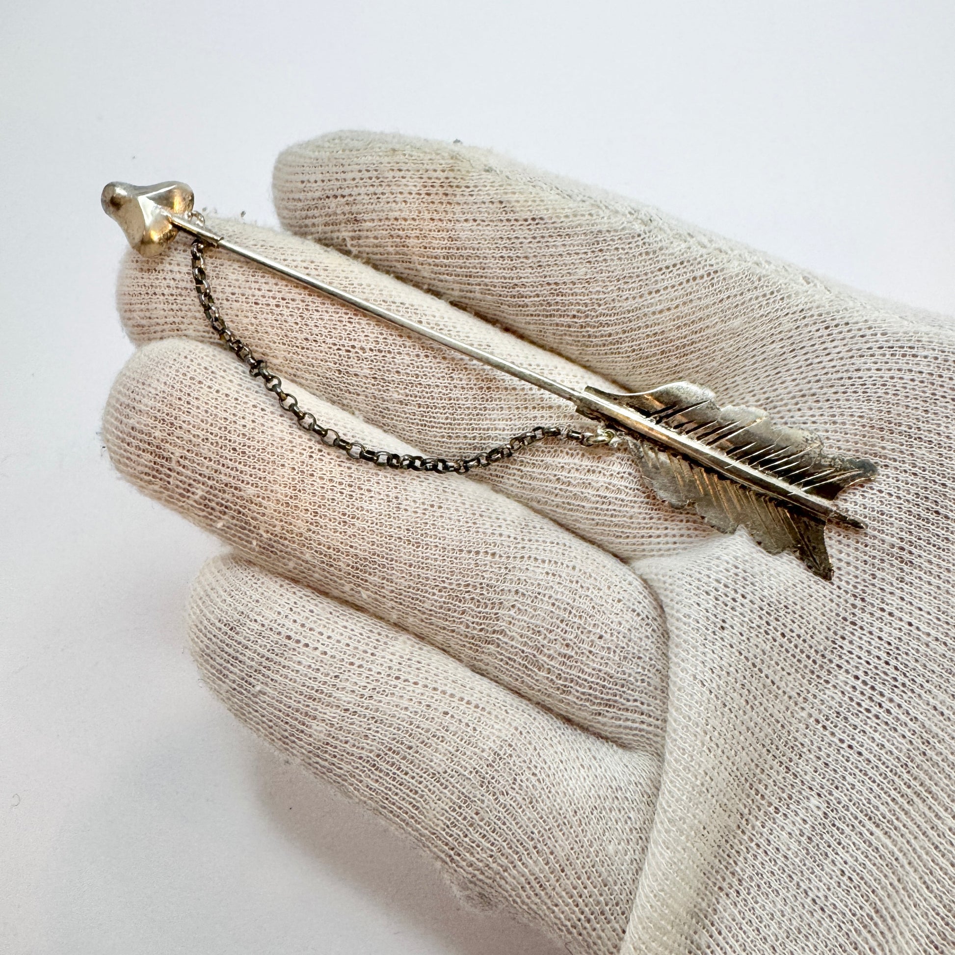 Wondeful and much sought after antique solid silver arrow jabot pin brooch. Hallmarked for Sweden year 1922. (Indistinct makers mark)
