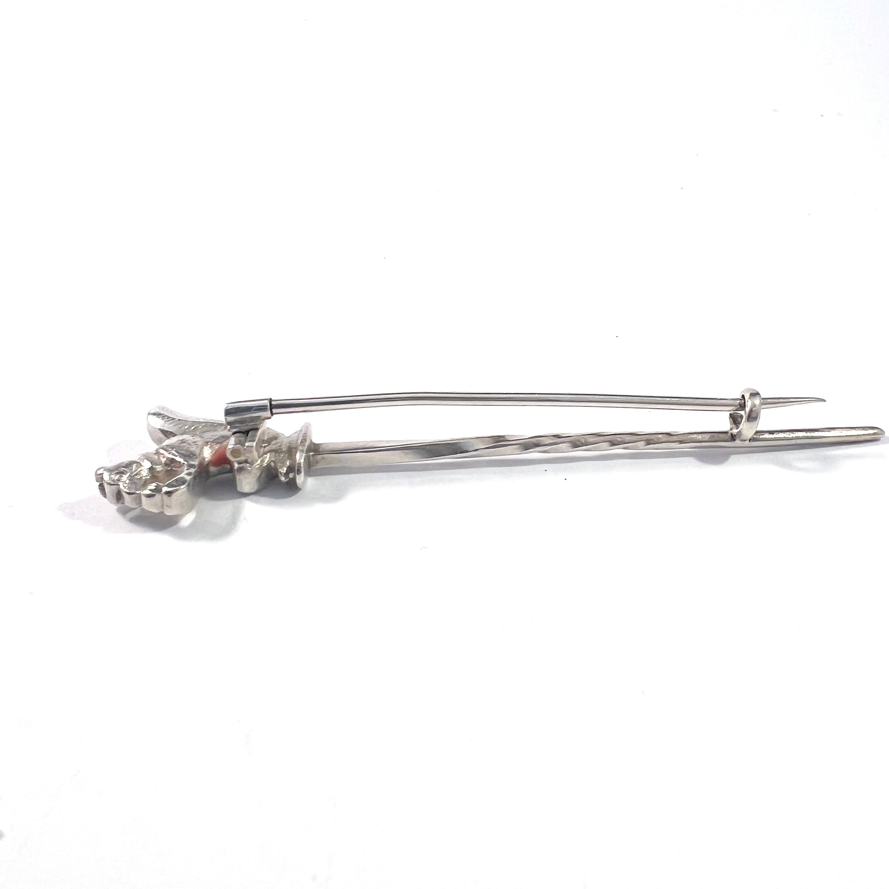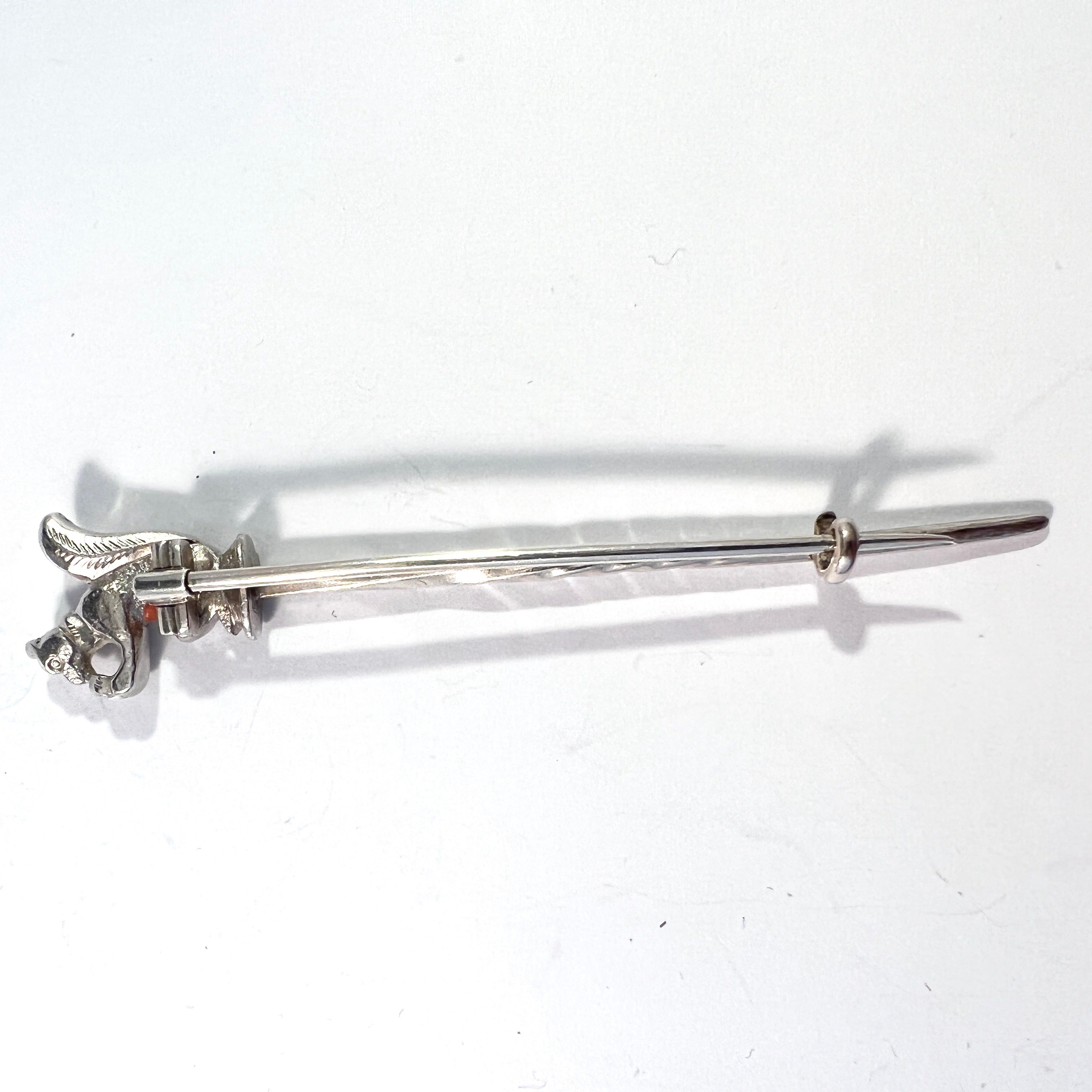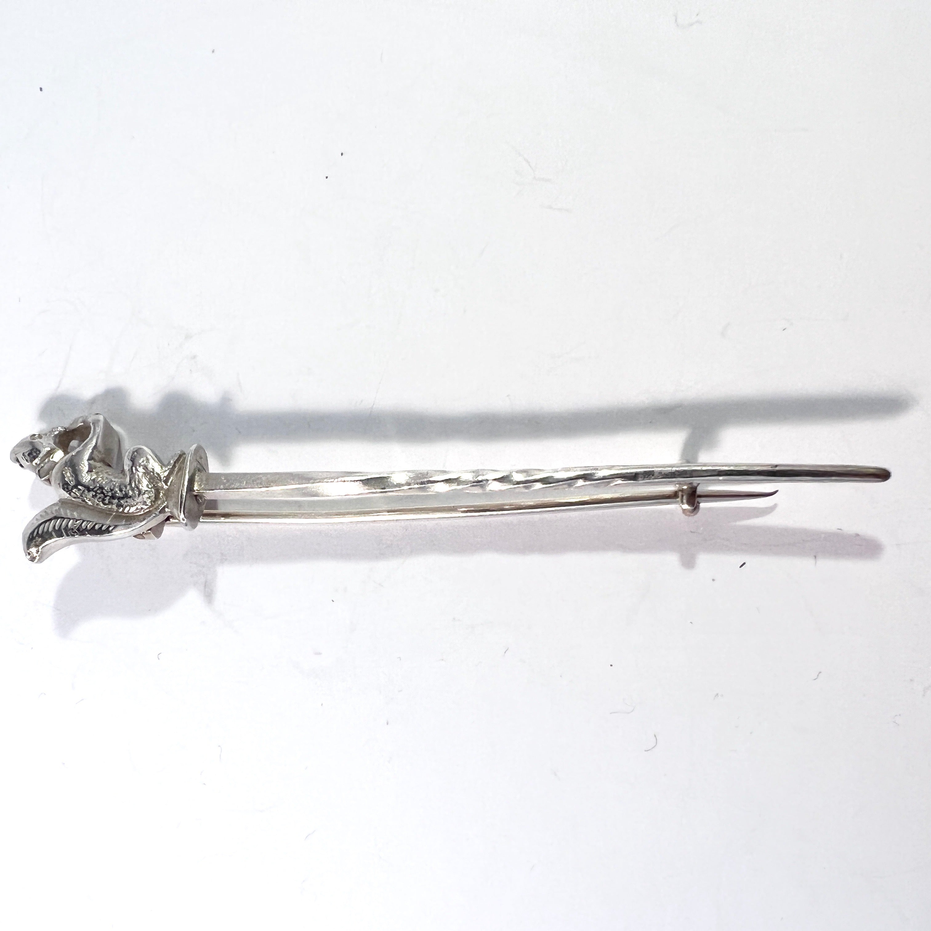 The Netherlands early 1900s. Long Solid Silver Squirrel Brooch Pin.