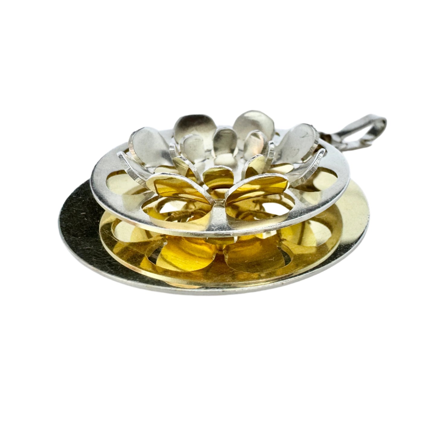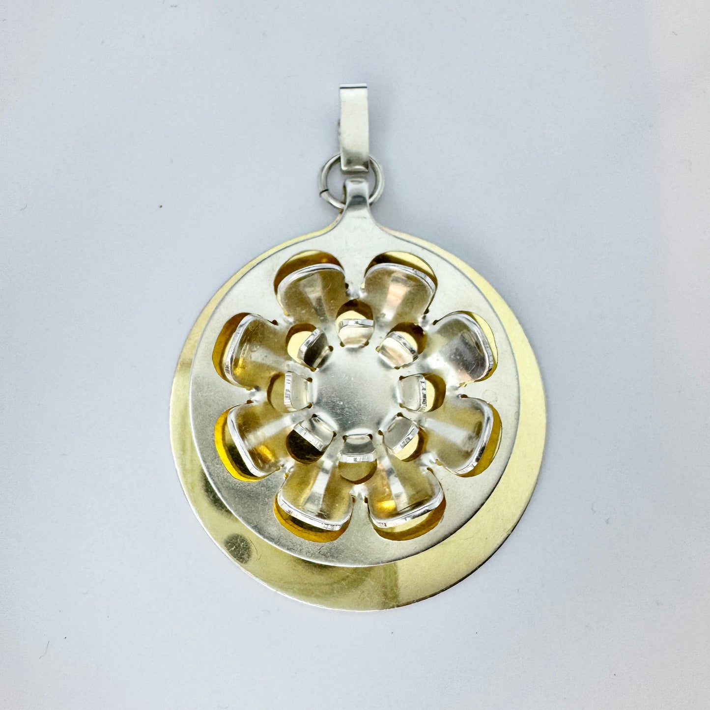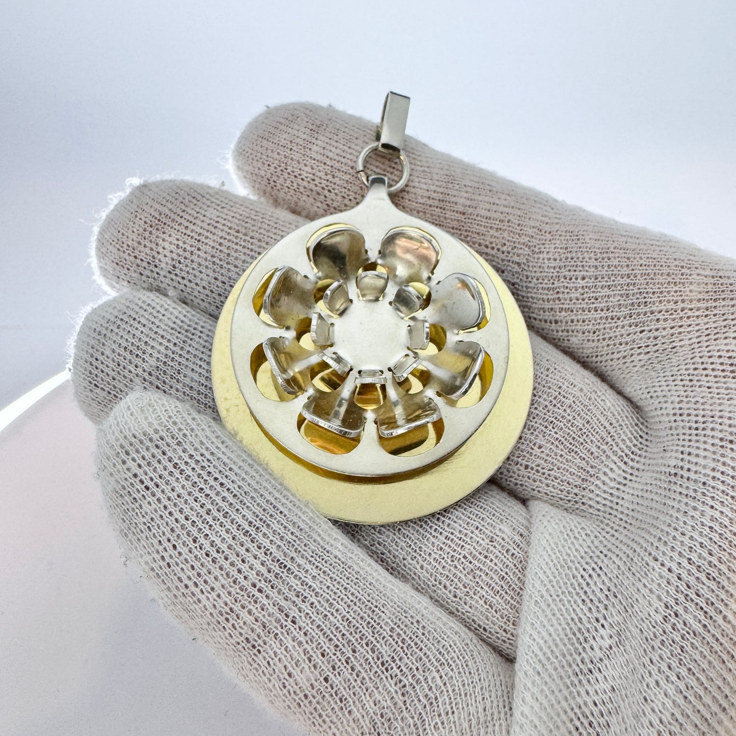 Wonderful and much sought after vintage sterling silver (partly gold gilt) designer pendant. Fully hallmarked and signed for renowned Theresia Hvorslev for Alton, Sweden 1968.