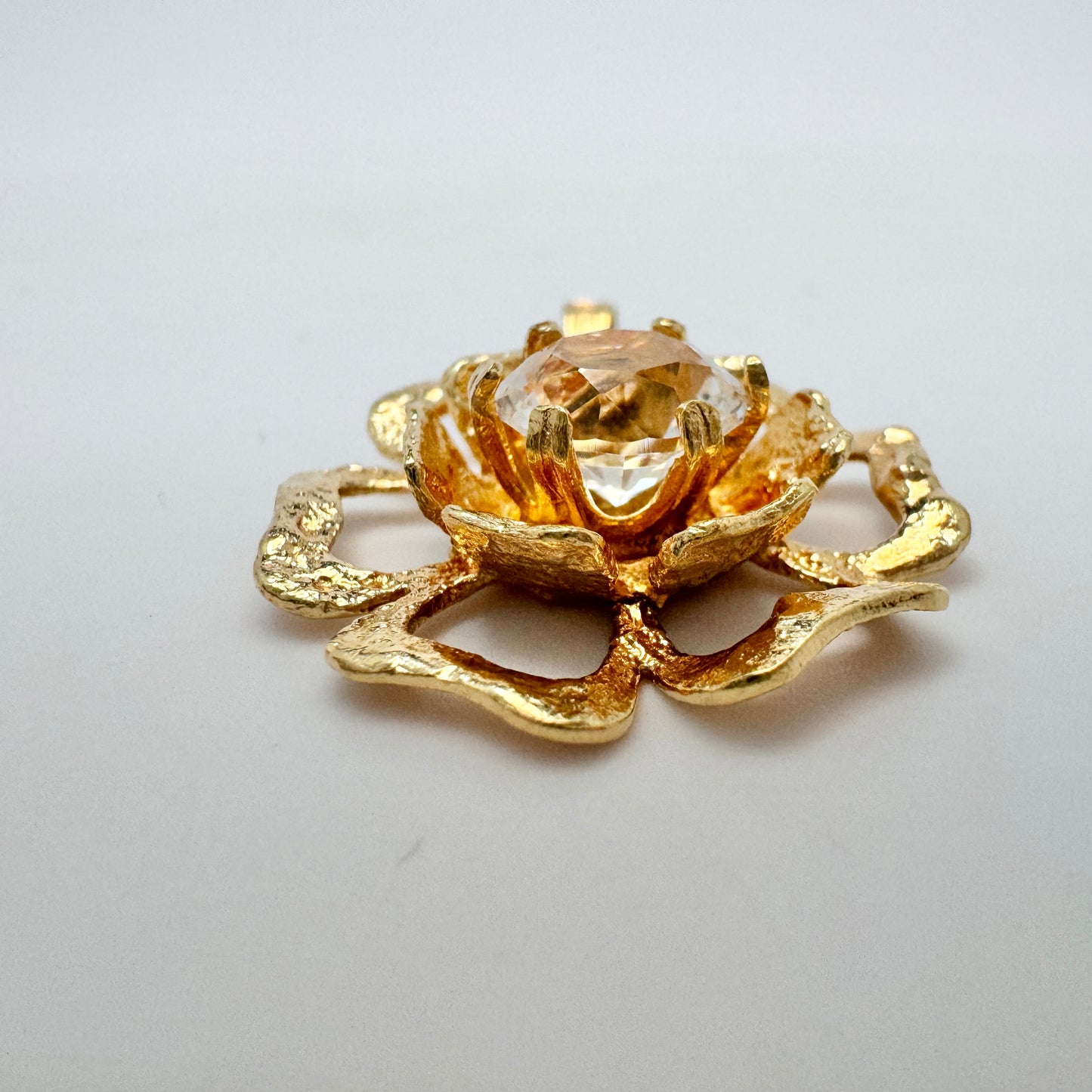 Theresia Hvorslev for MEMA, Sweden 1975. Vintage 18k Gold Rock Crystal Pendant. Signed