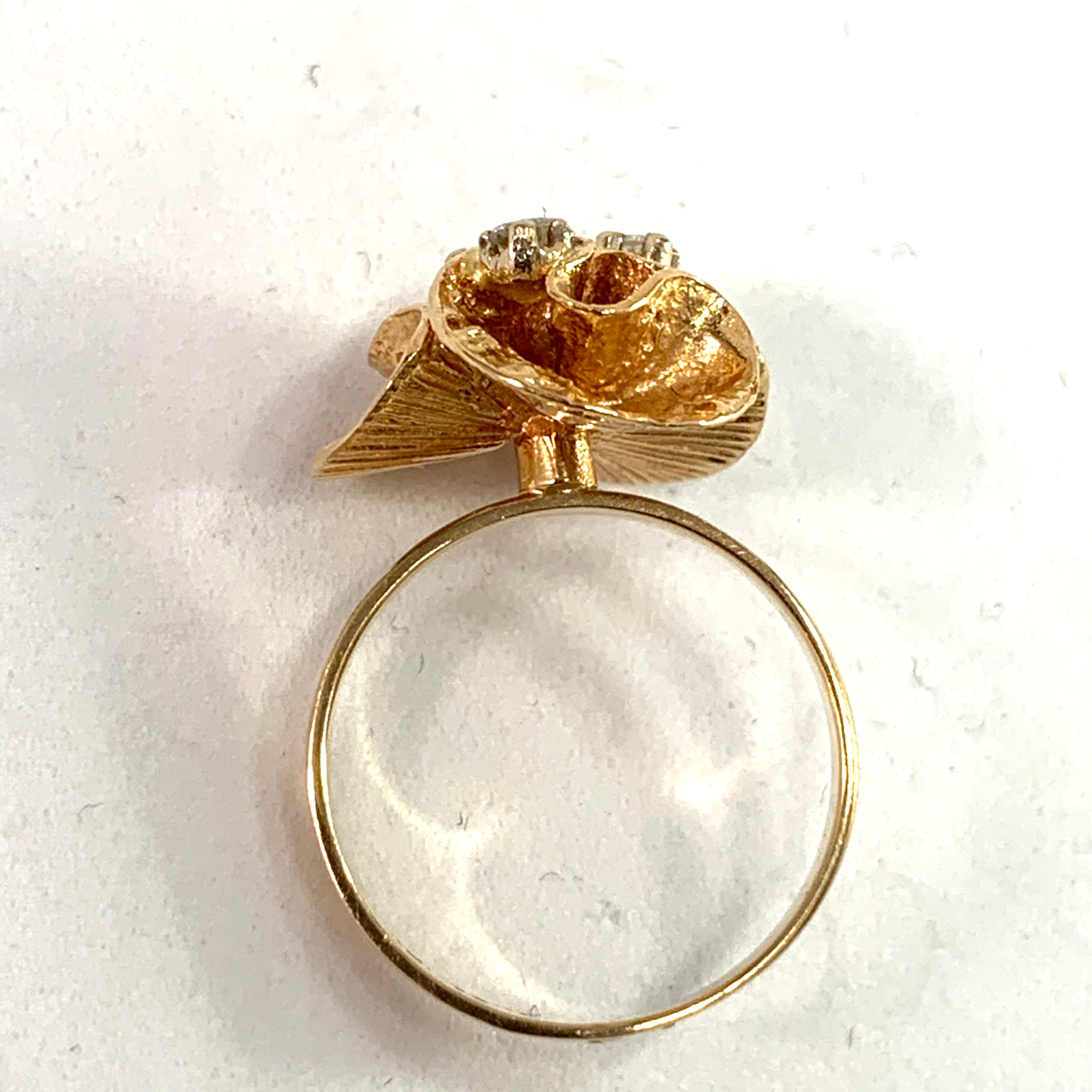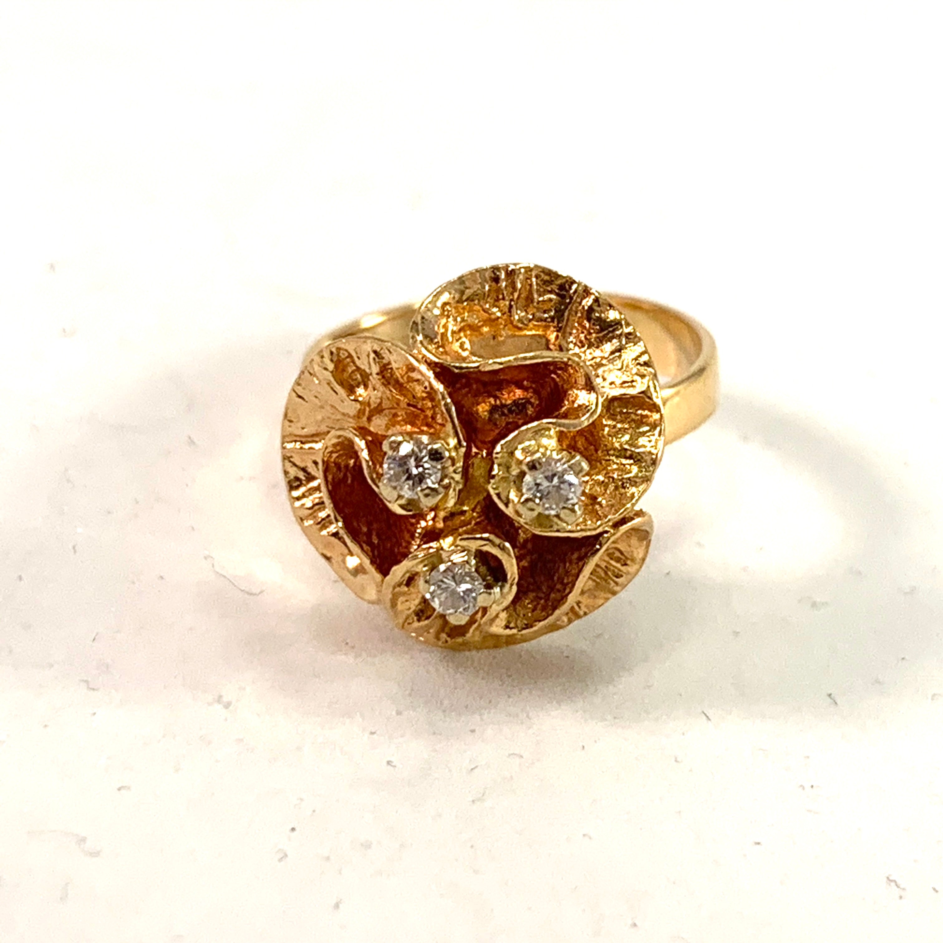 Wonderful and much sought after 18k gold diamond ring. Marked for renowned maker Theresia Hvorslev, for MEMA, Sweden 1976. The water lily design.