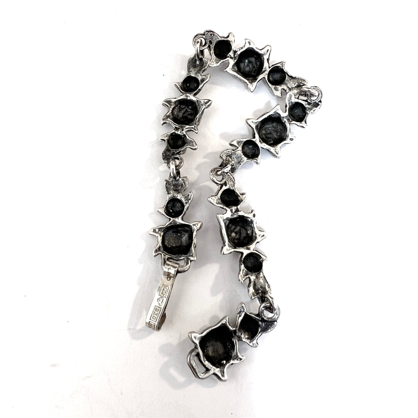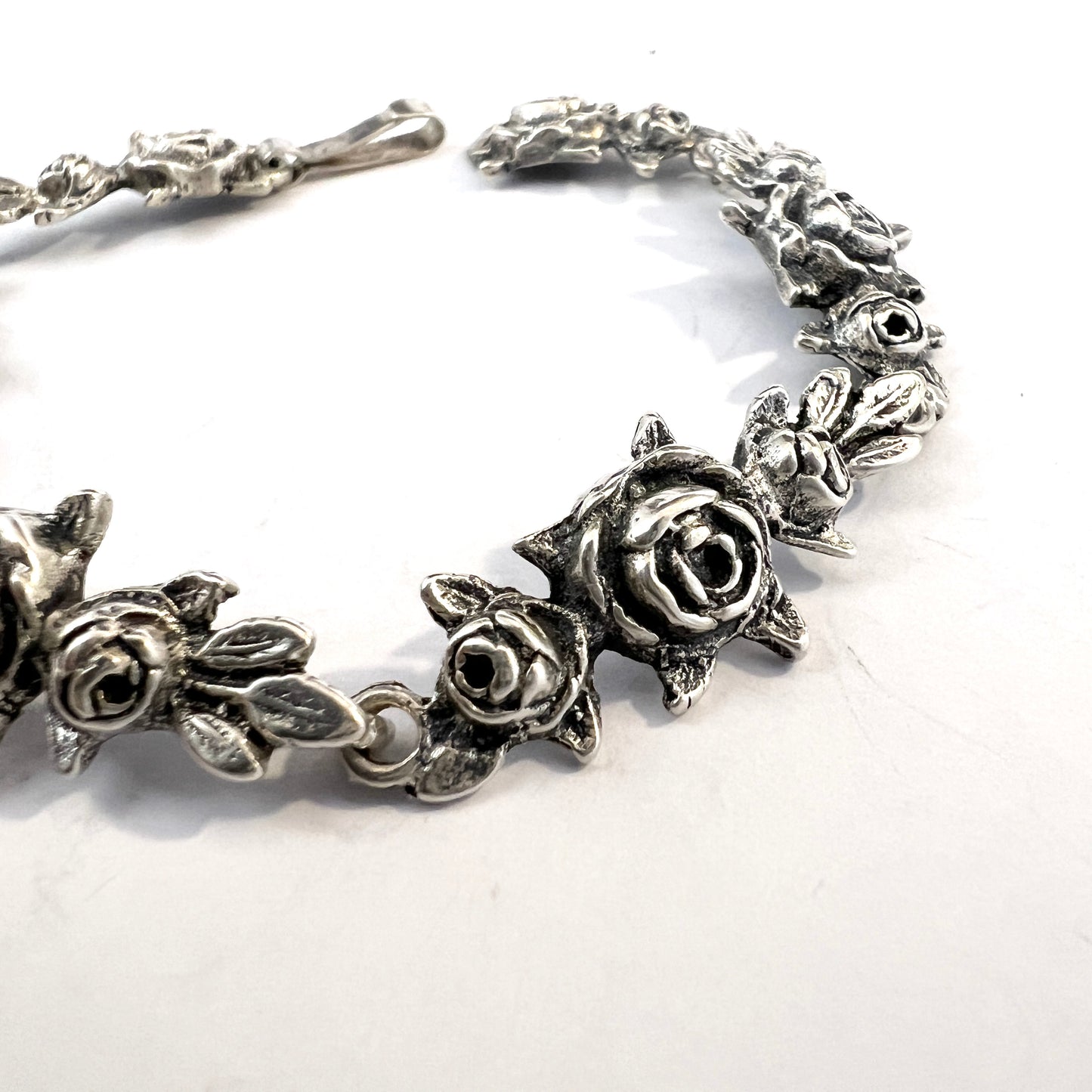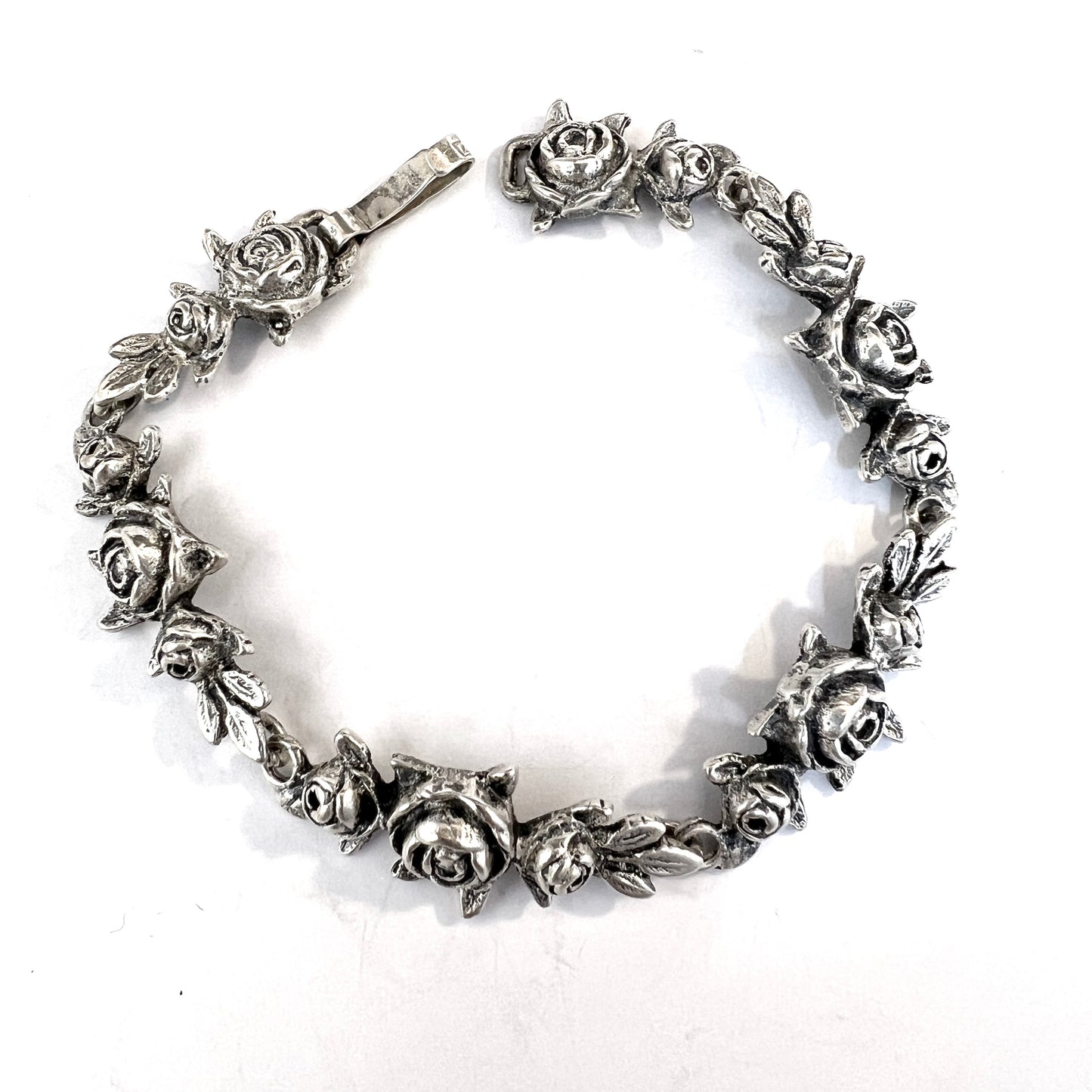 Turun Hopea, Finland 1975. Vintage Solid Silver Rose Flower Bracelet.