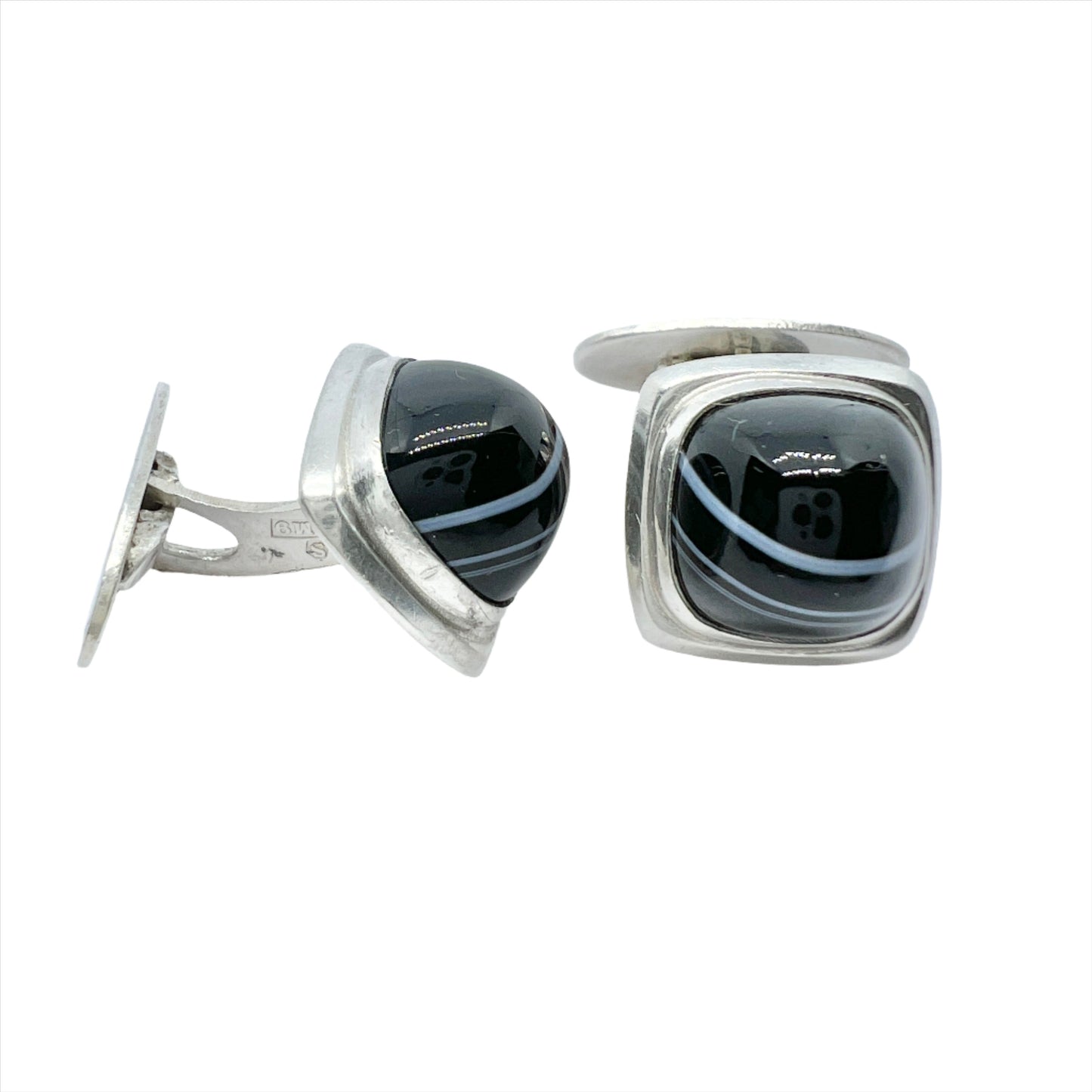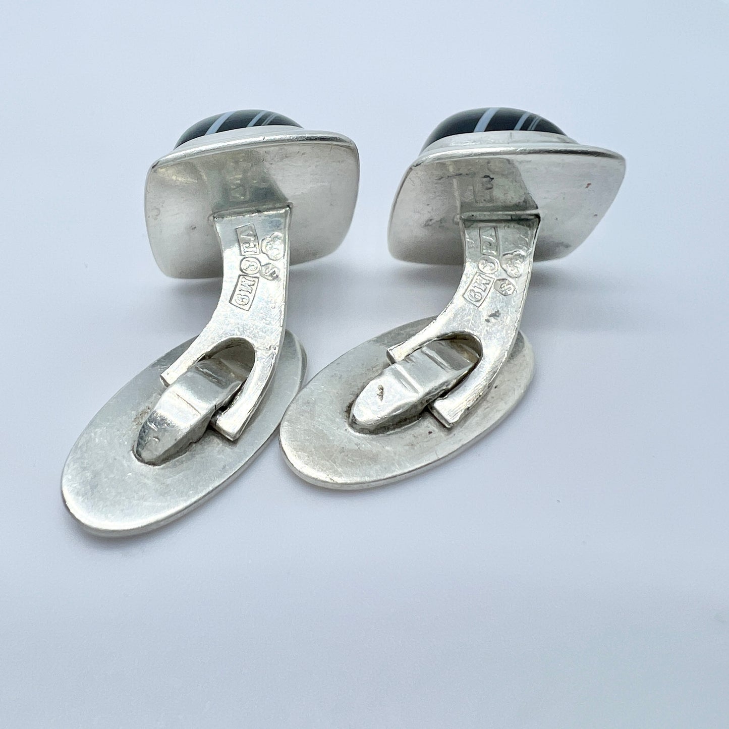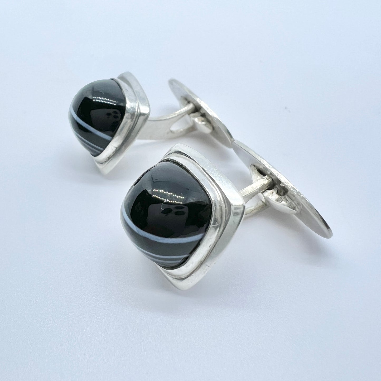 Victor Janson, Sweden 1962. Vintage Solid Silver banded Agate Cufflinks.