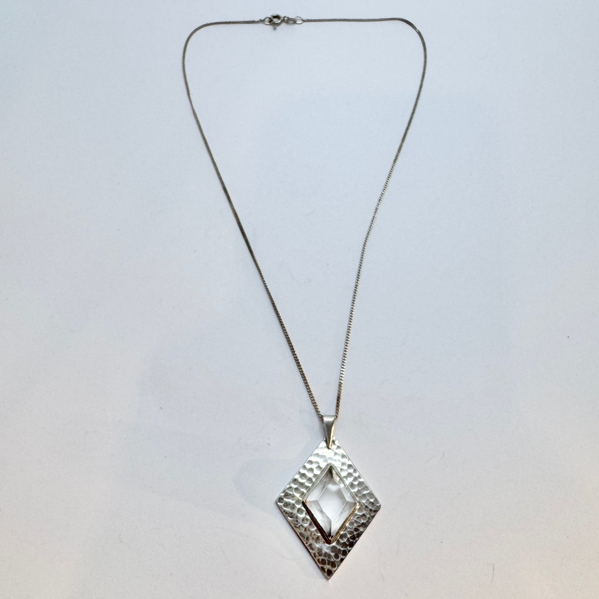 Victor Janson, Sweden 1968. Vintage Sterling Silver Rock Crystal Pendant Necklace.