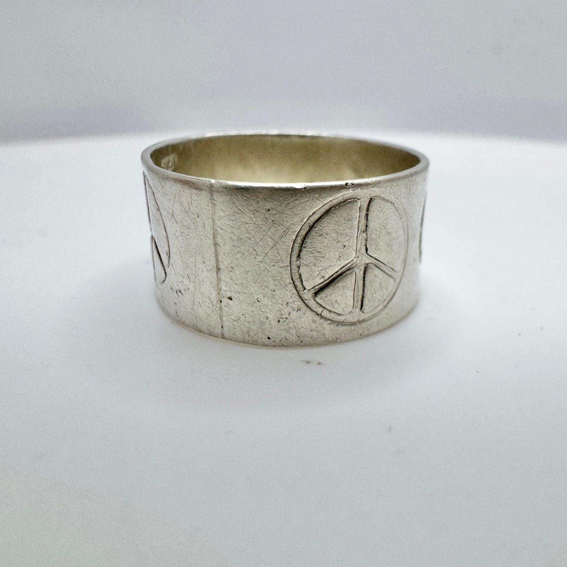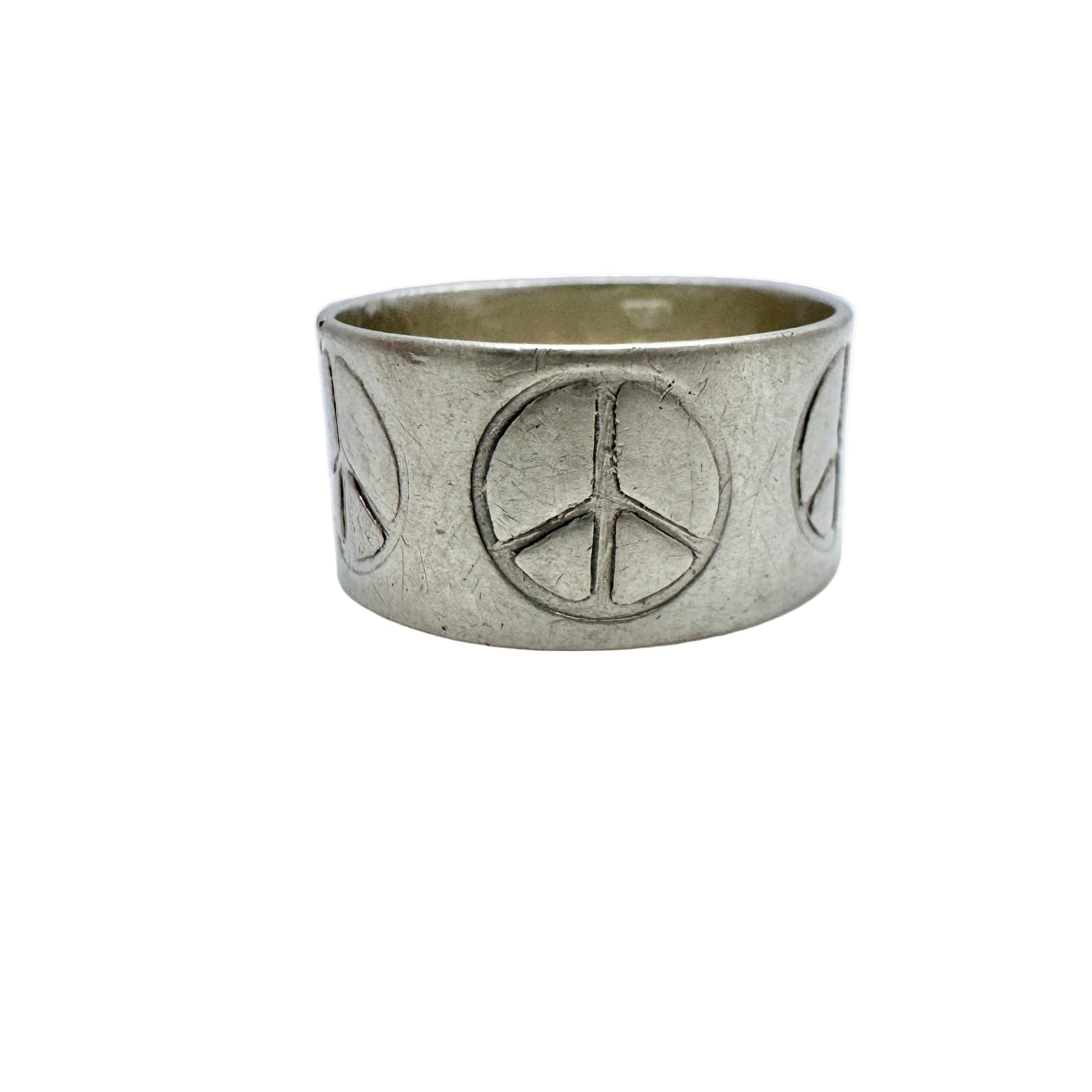 Victor Janson, Sweden 1972. Vintage Sterling Silver Peace Sign Hippie Ring Band