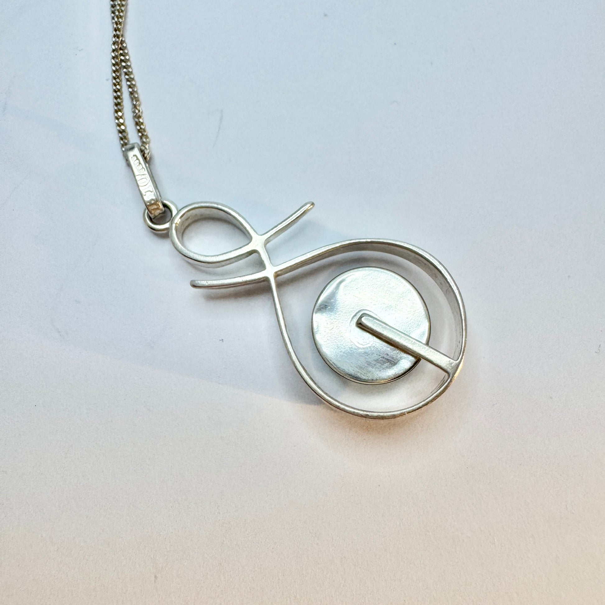 Victor Janson, Sweden 1976. Vintage Solid Silver Bergslagen-stone Pendant Necklace.