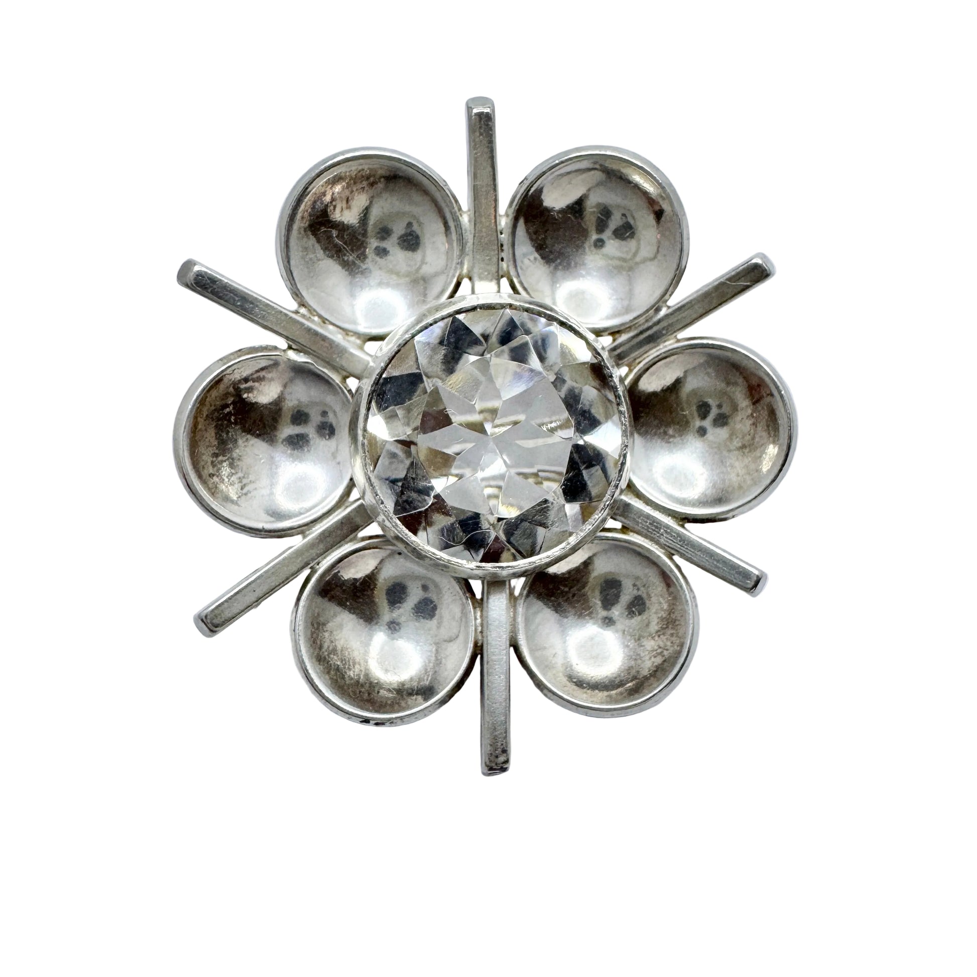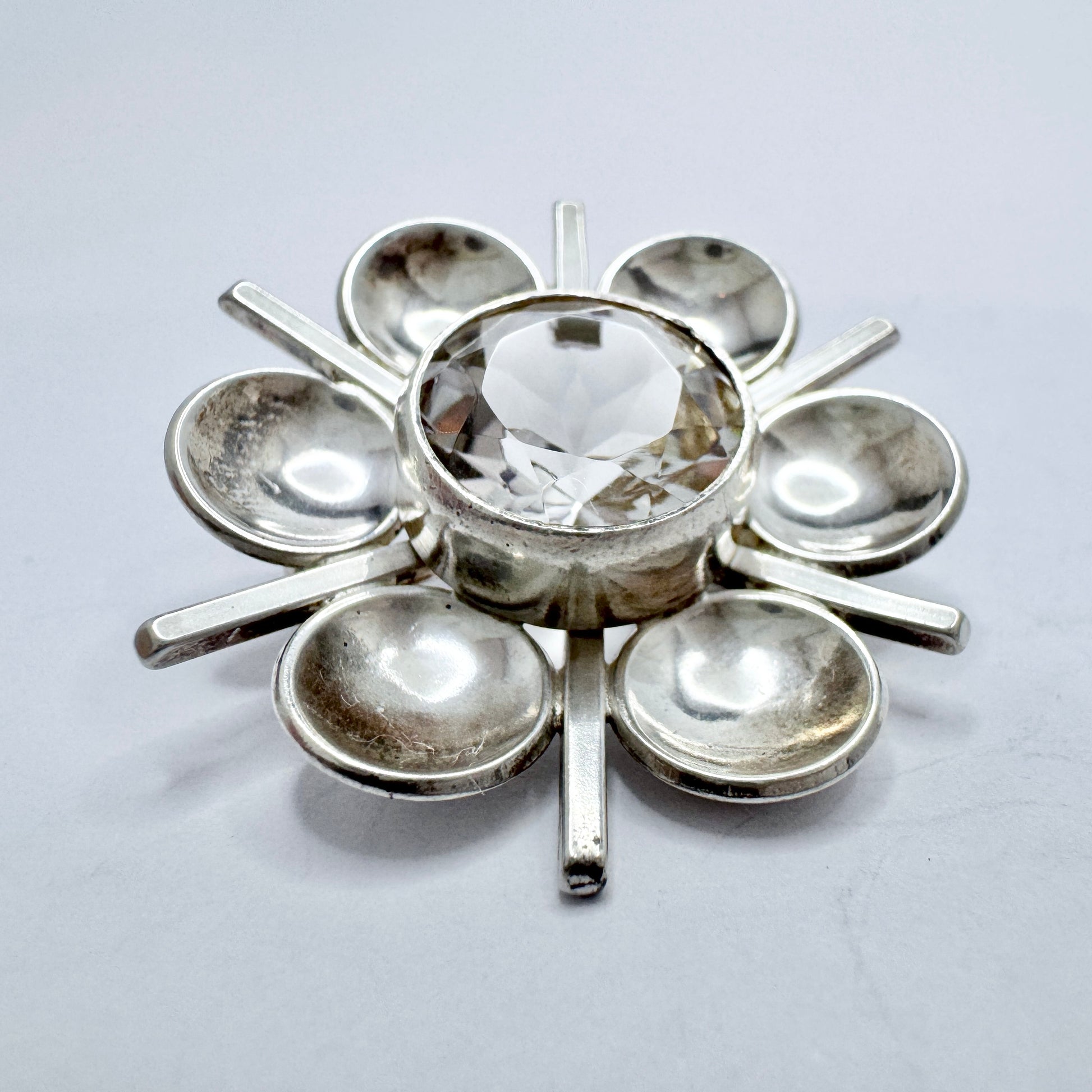 Victor Janson, Sweden. Vintage Solid Silver Rock Crystal Brooch.