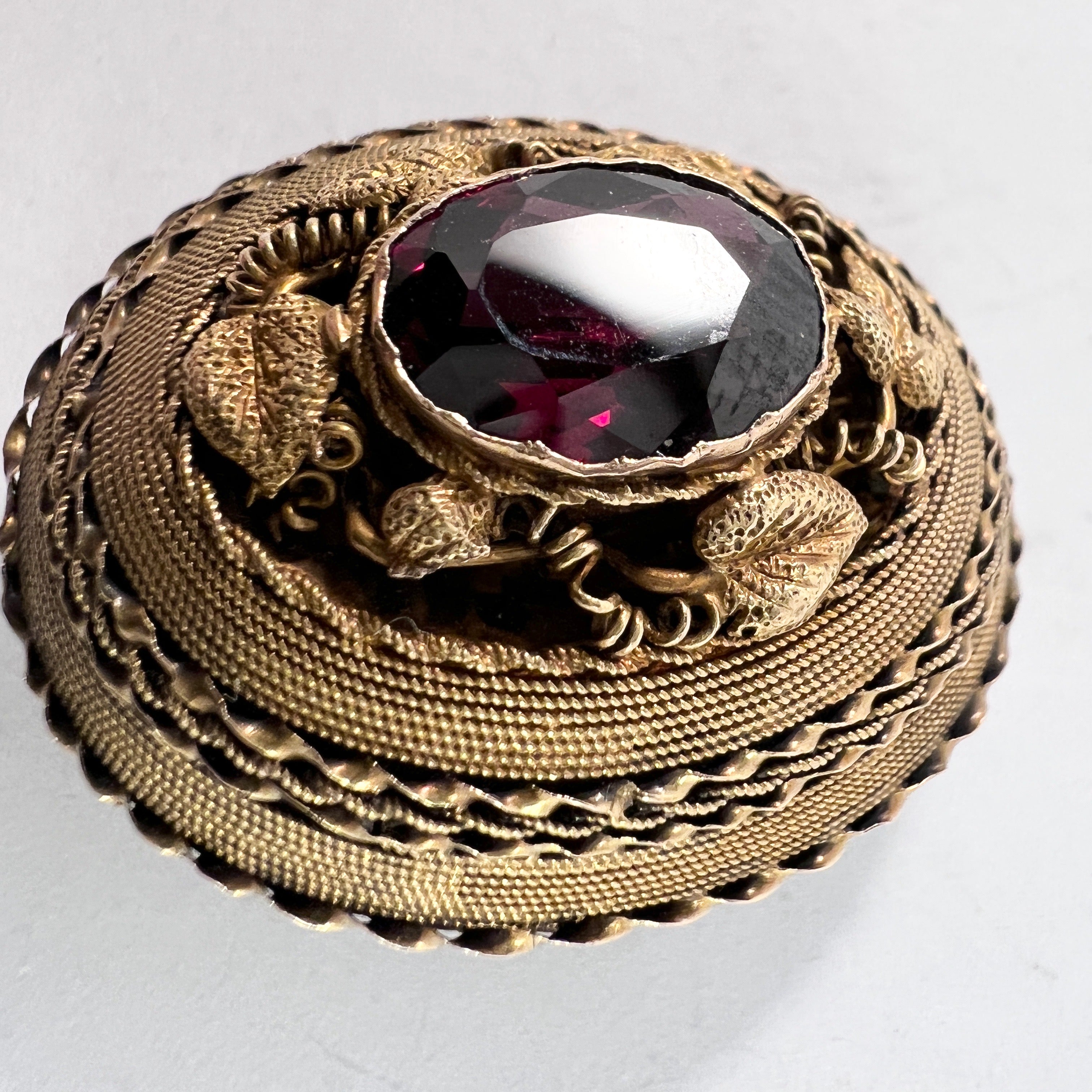 Victorian 15k Gold Garnet Etruscan Revival Brooch Pendant.