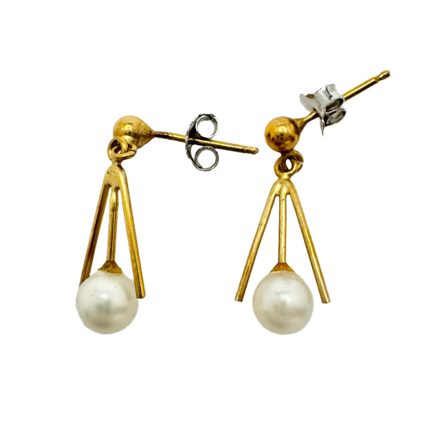 Vintage 18k Gold Cultured Pearl Earrings.