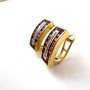 Wonderful vintage 18k gold diamond ruby pair of earrings. Hallmarked for 18k gold (750)