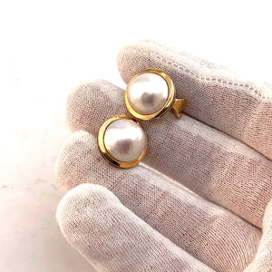Beautiful vintage 18k gold mabe pearl earrings. Apparently unmarked. Made in south continental Europe, vintage.