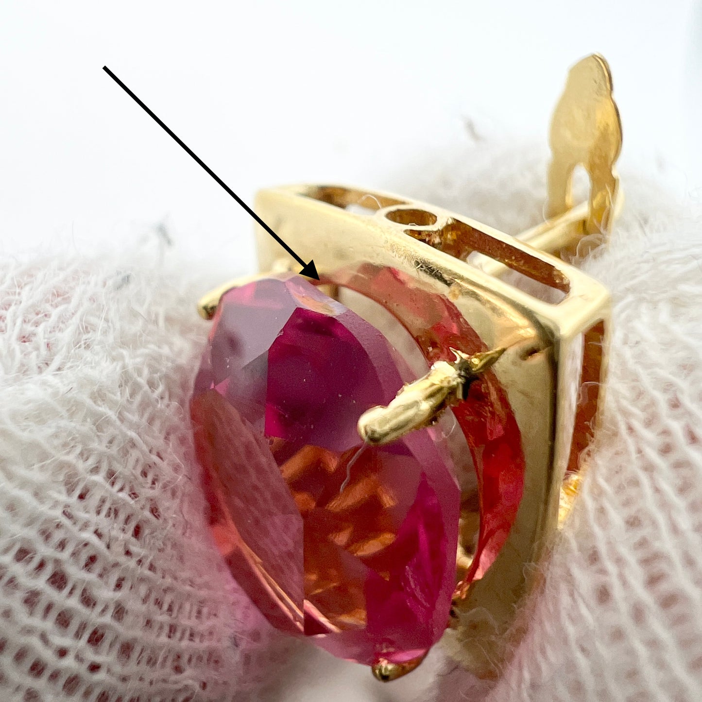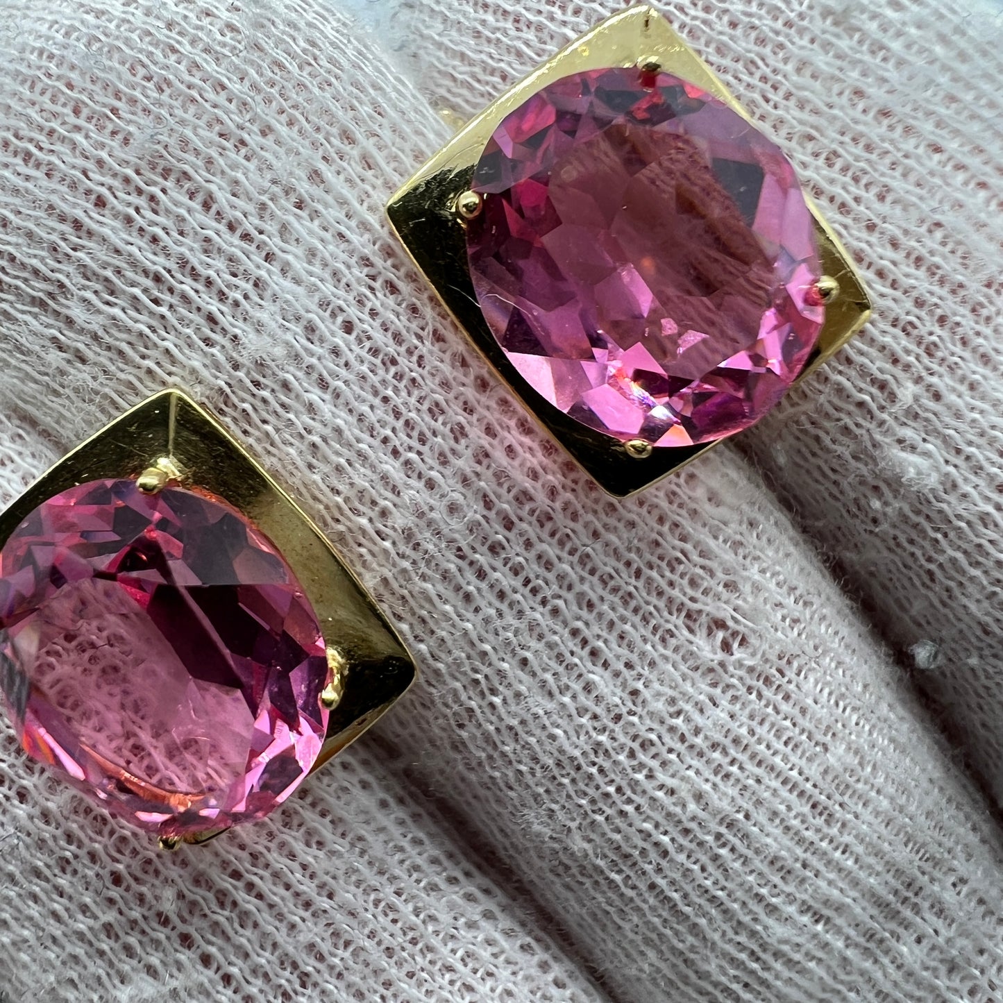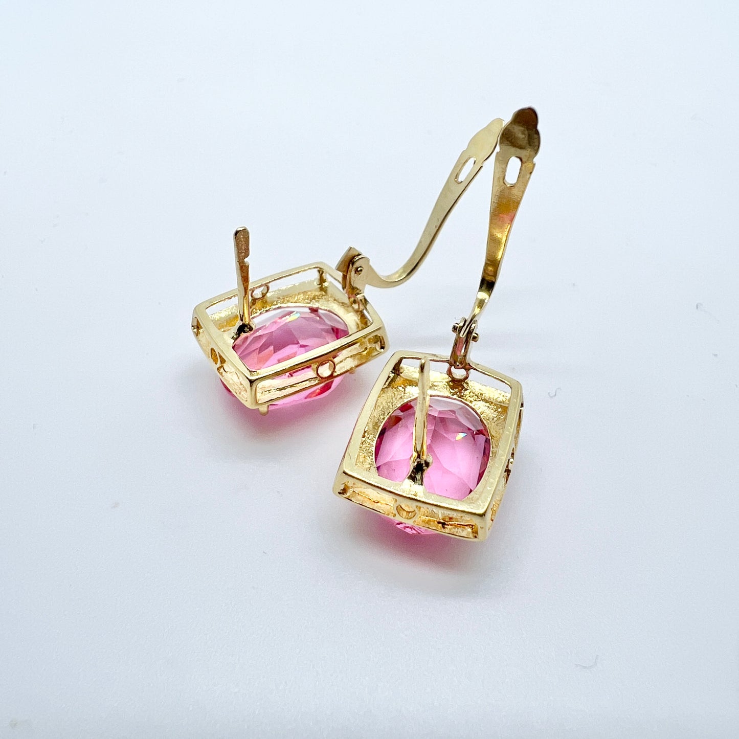 Charming vintage 18k gold pink crystal pair of earrings. Unidentified hallmarks.