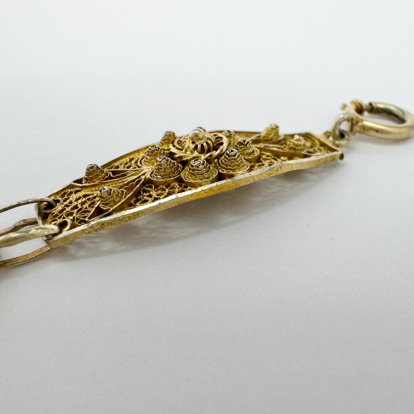 Vintage 1940-50s Gilt Solid Silver Filigree Bracelet.