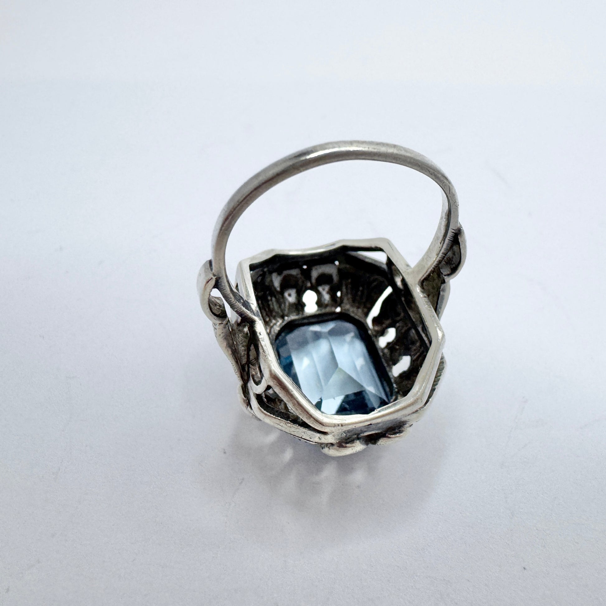 Vintage 1940s. Solid Silver Blue Synthetic Spinel Cocktail Ring.