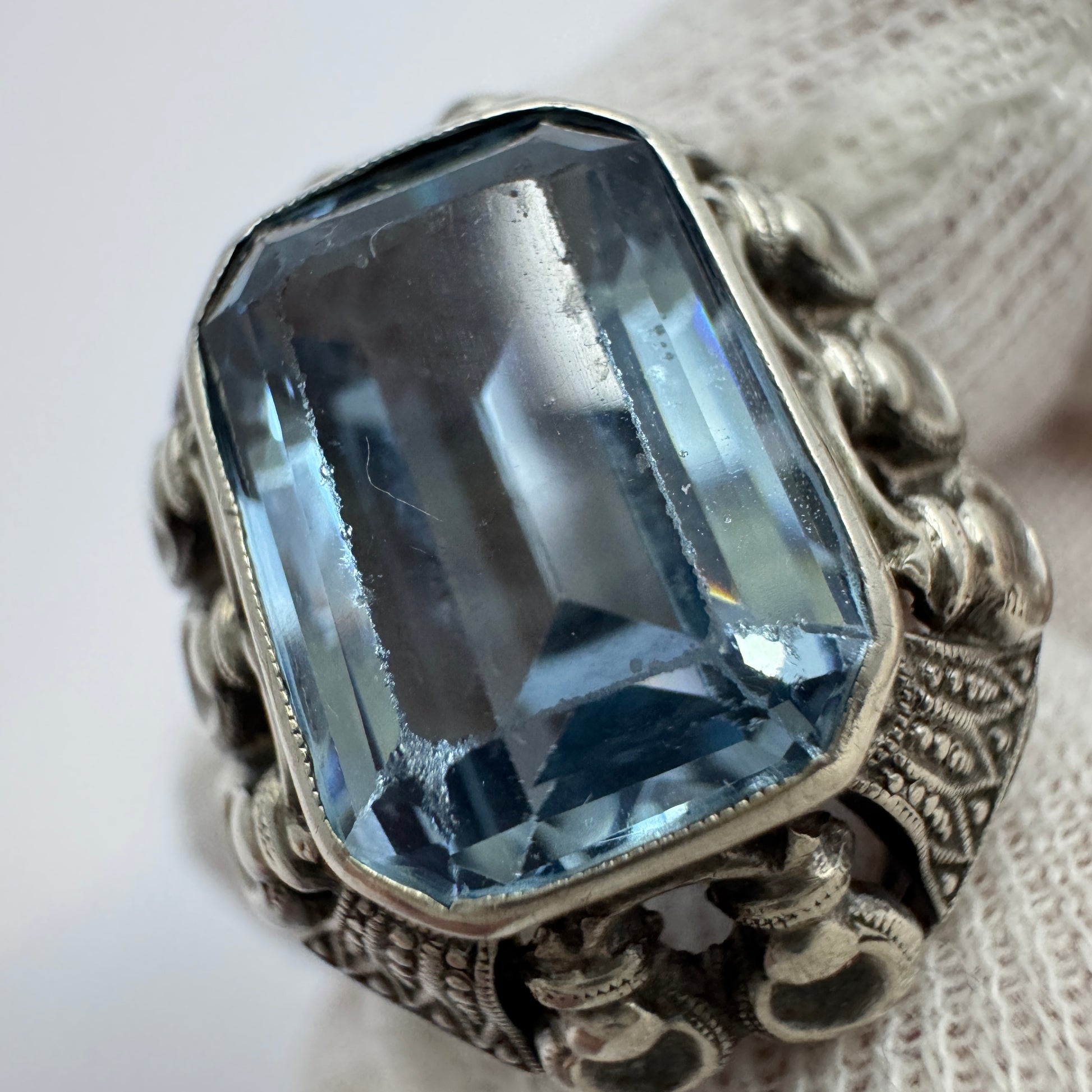 Beautiful vintage solid silver synthetic spinel ring. Hallmarked for 835 silver. Continental Europe 1940s.