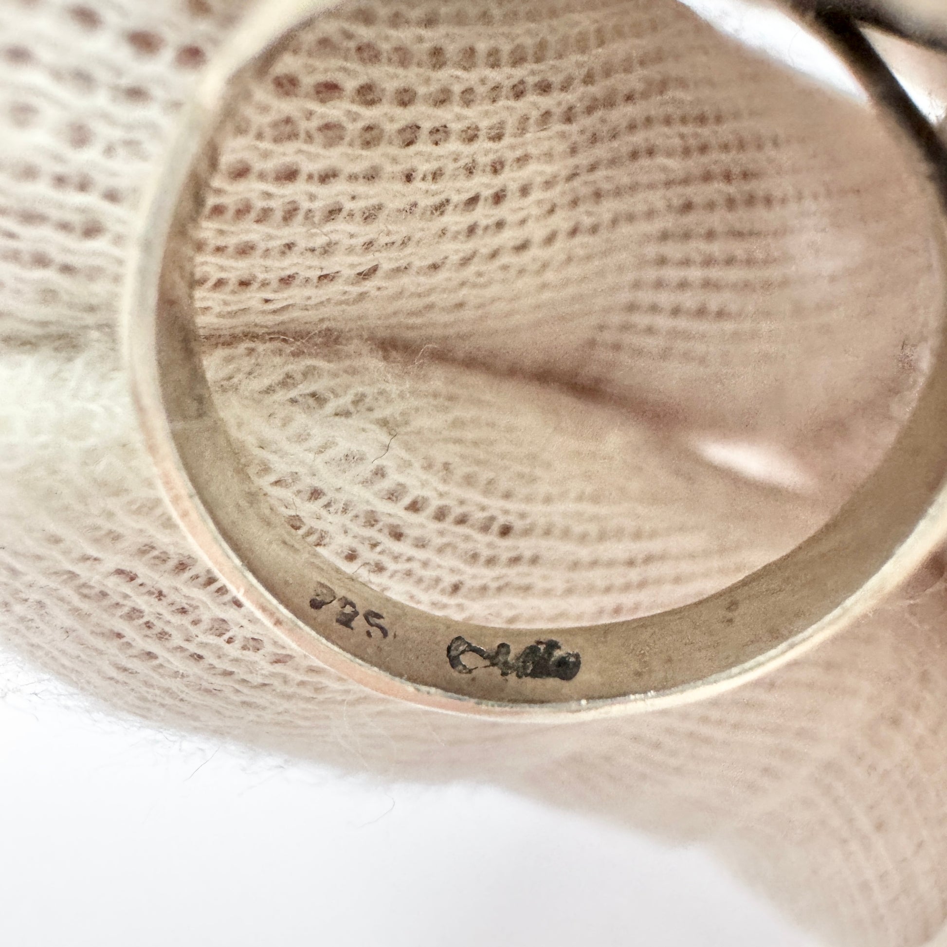 Beautiful vintage sterling silver smoky quartz ring. Hallmarked for sterling silver and an unidentified makers mark.