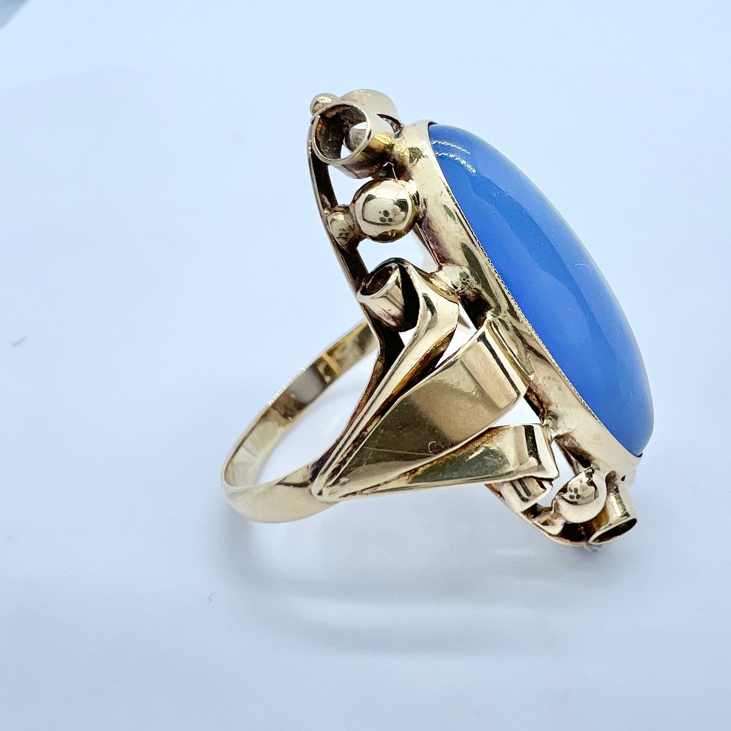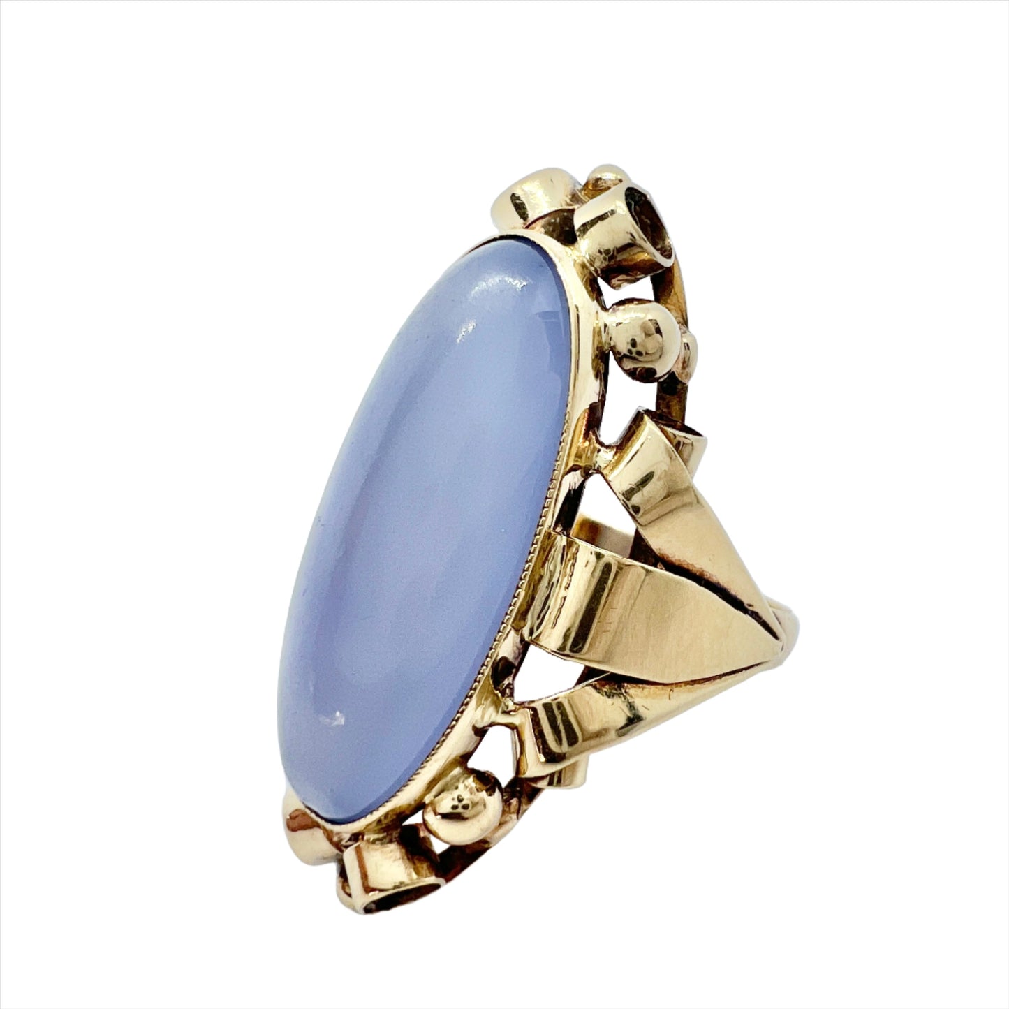 Wonderful and bod vintage 14k gold chalcedony ring. Hallmarked with an unidentified makers mark. Made 1950-60s, probably eastern Europe.