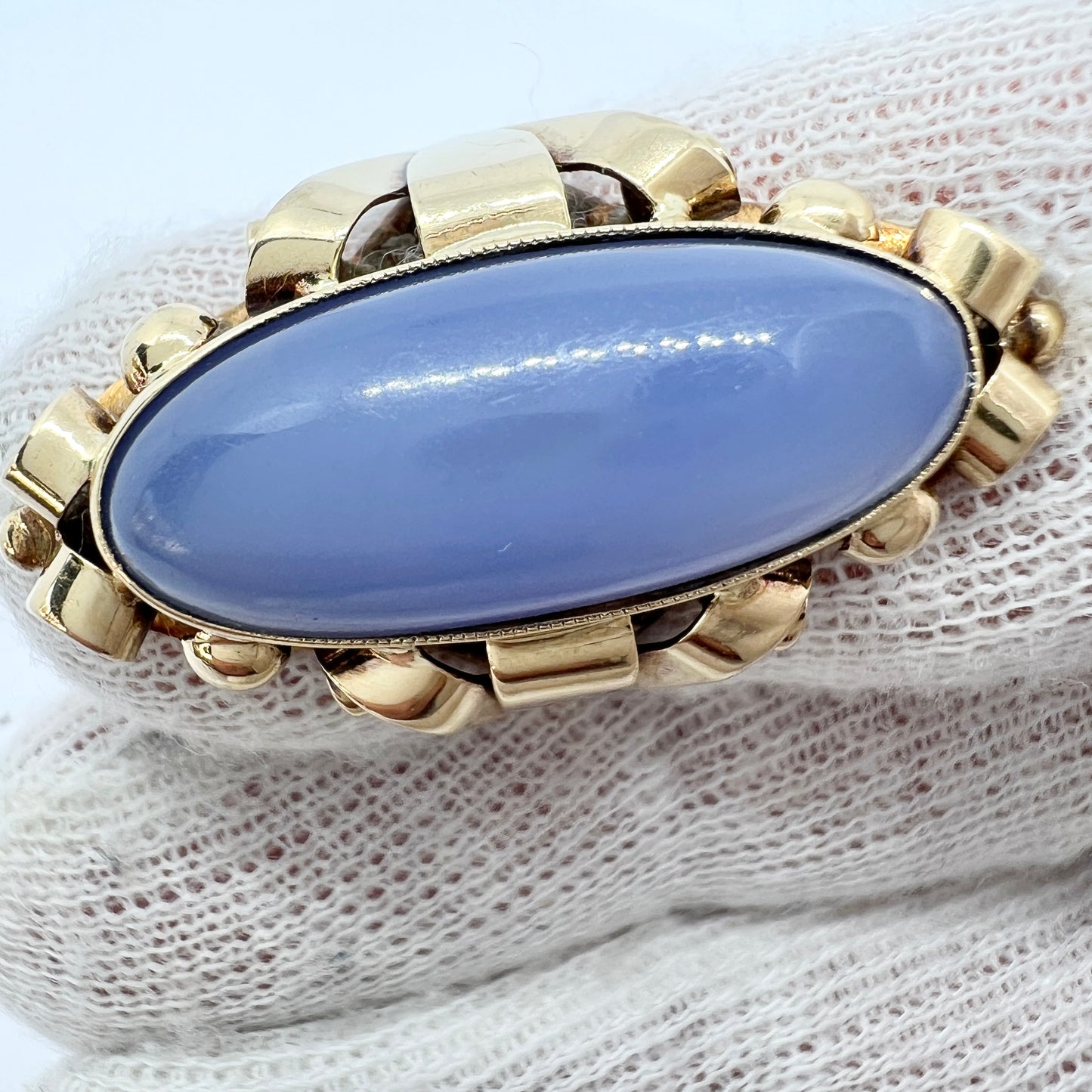 Vintage 1950-60s. Bold Vintage 14k Gold Chalcedony Ring.