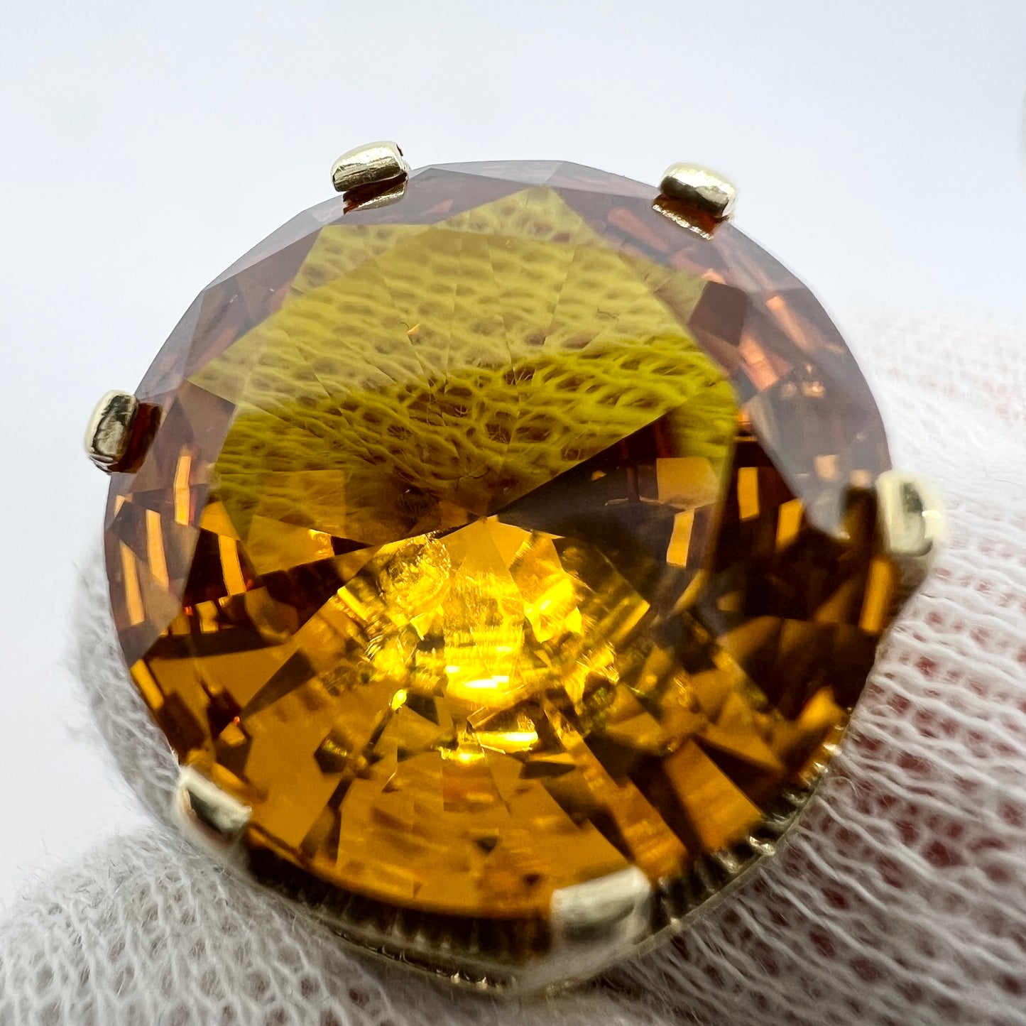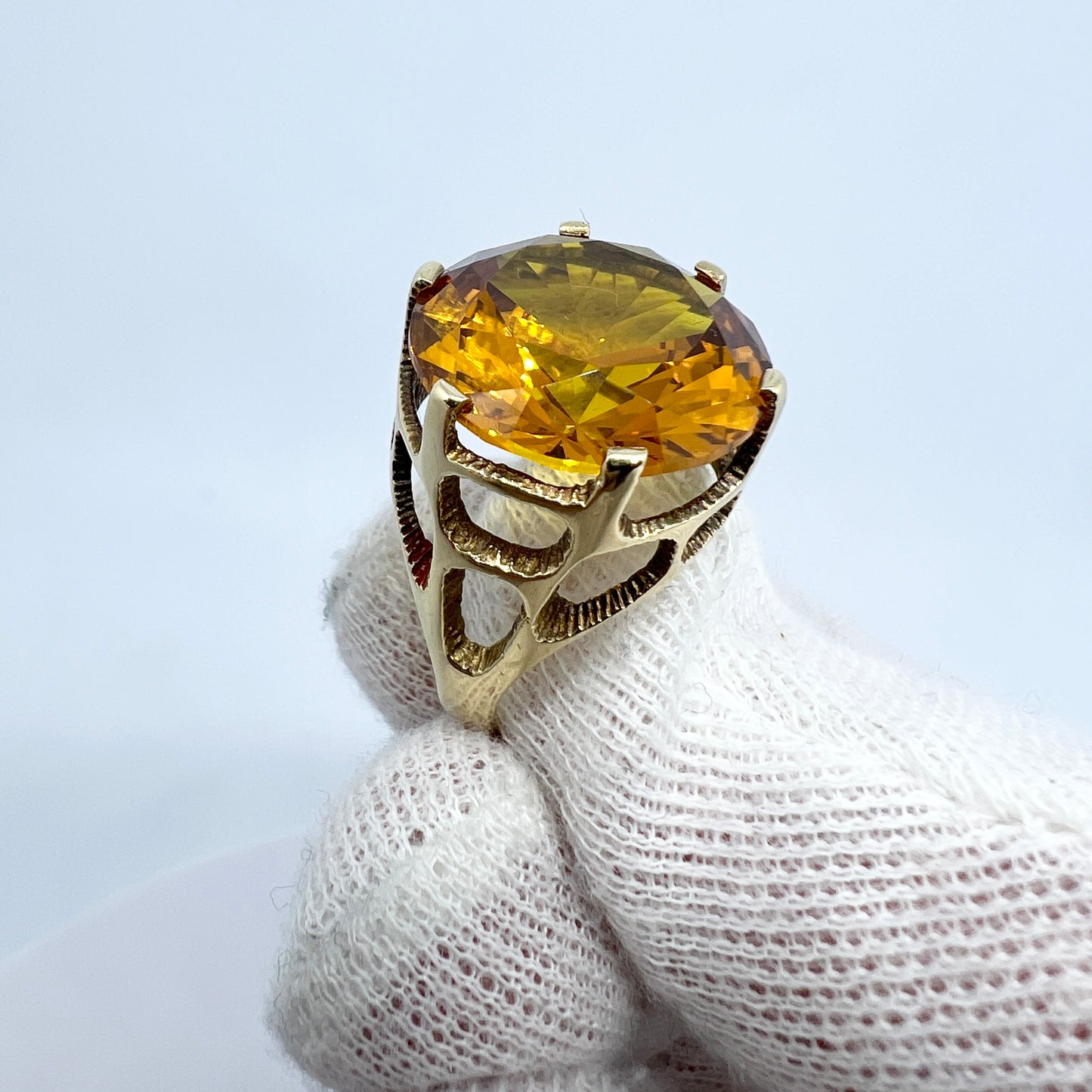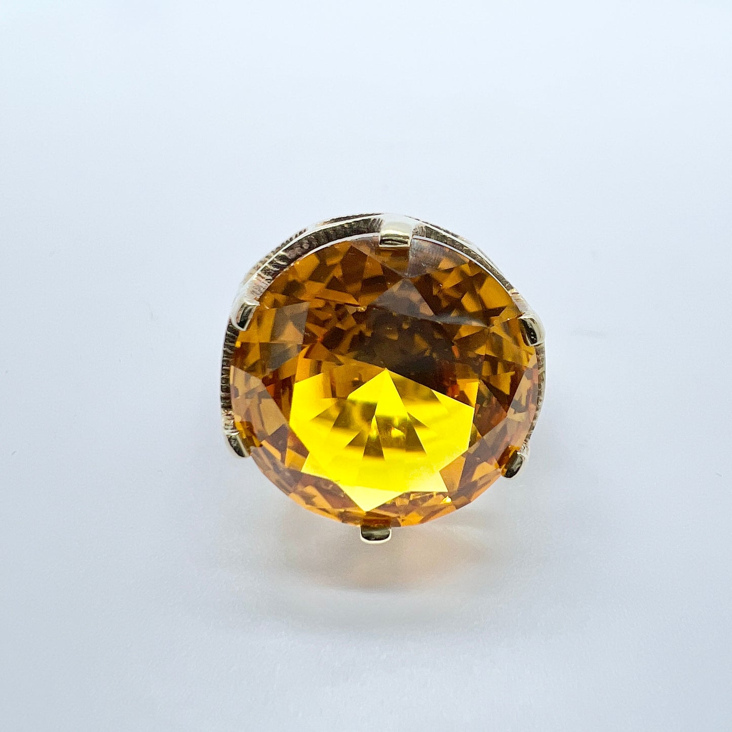 Wonderful and bold vintage 14k gold citrin ring. Hallmarked for 14k gold, and an unidentified makers mark. Possibly Denmark. 1960-70s.
