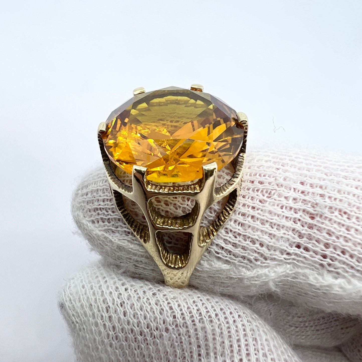 Vintage 1960-70s. Bold 14k Gold Citrine Cocktail Ring.