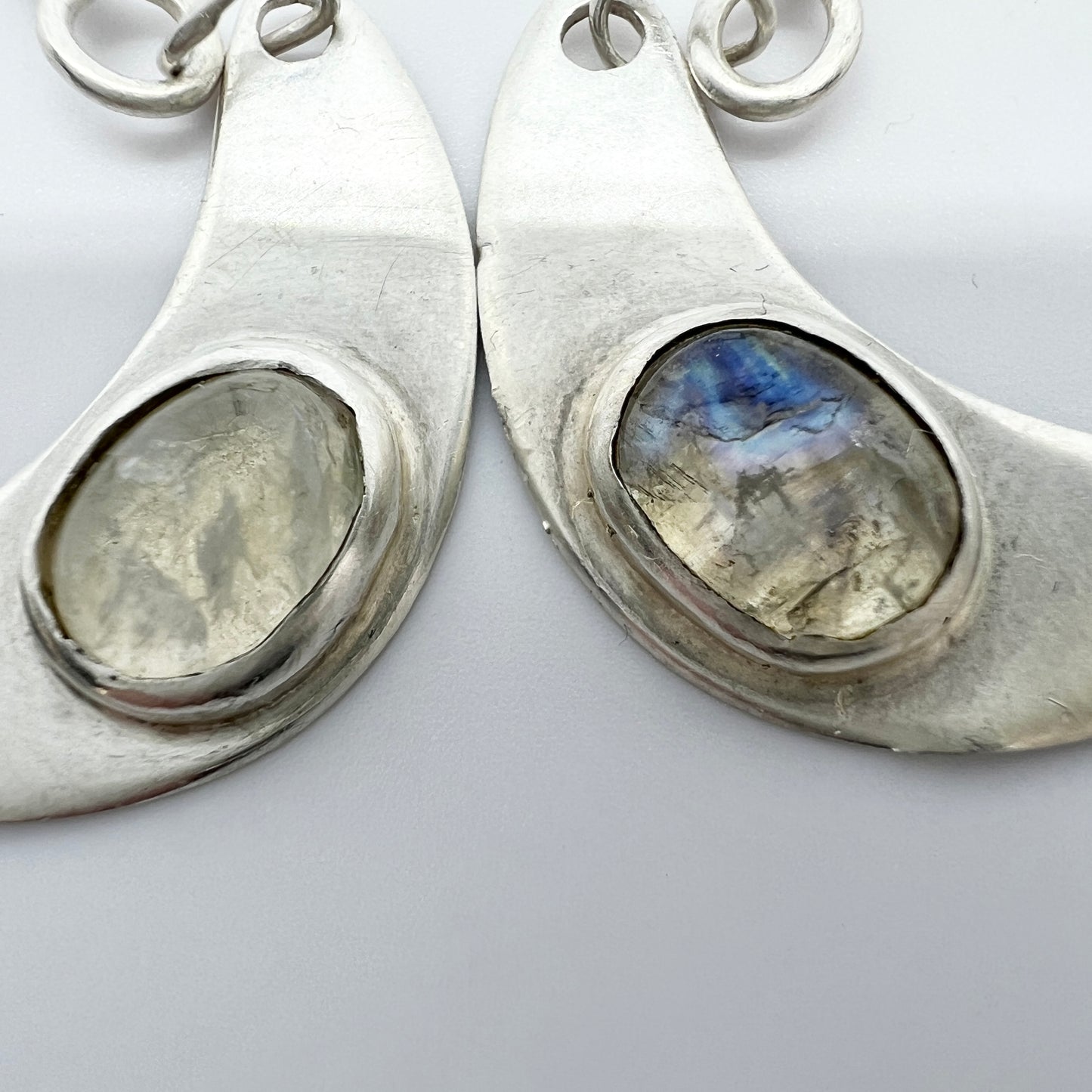 Vintage 950 Sterling Silver Moonstone Earrings.