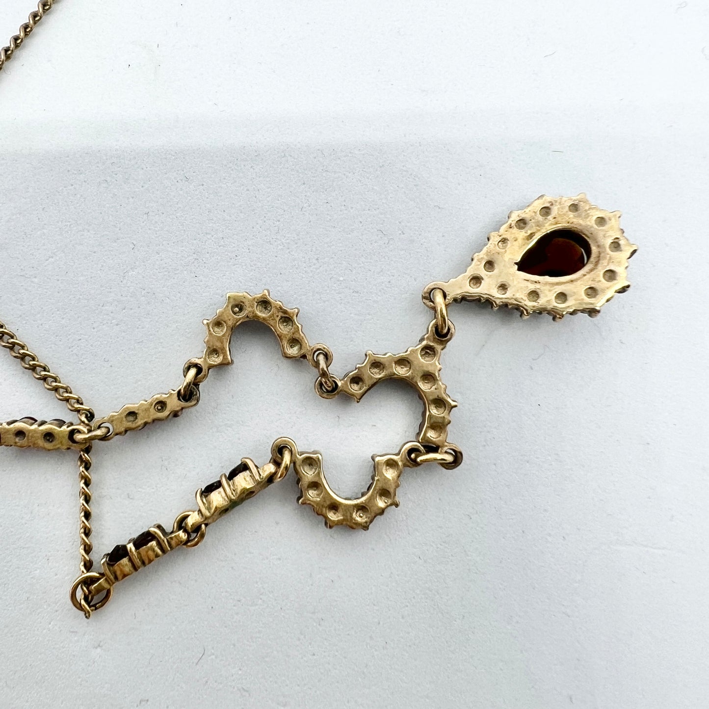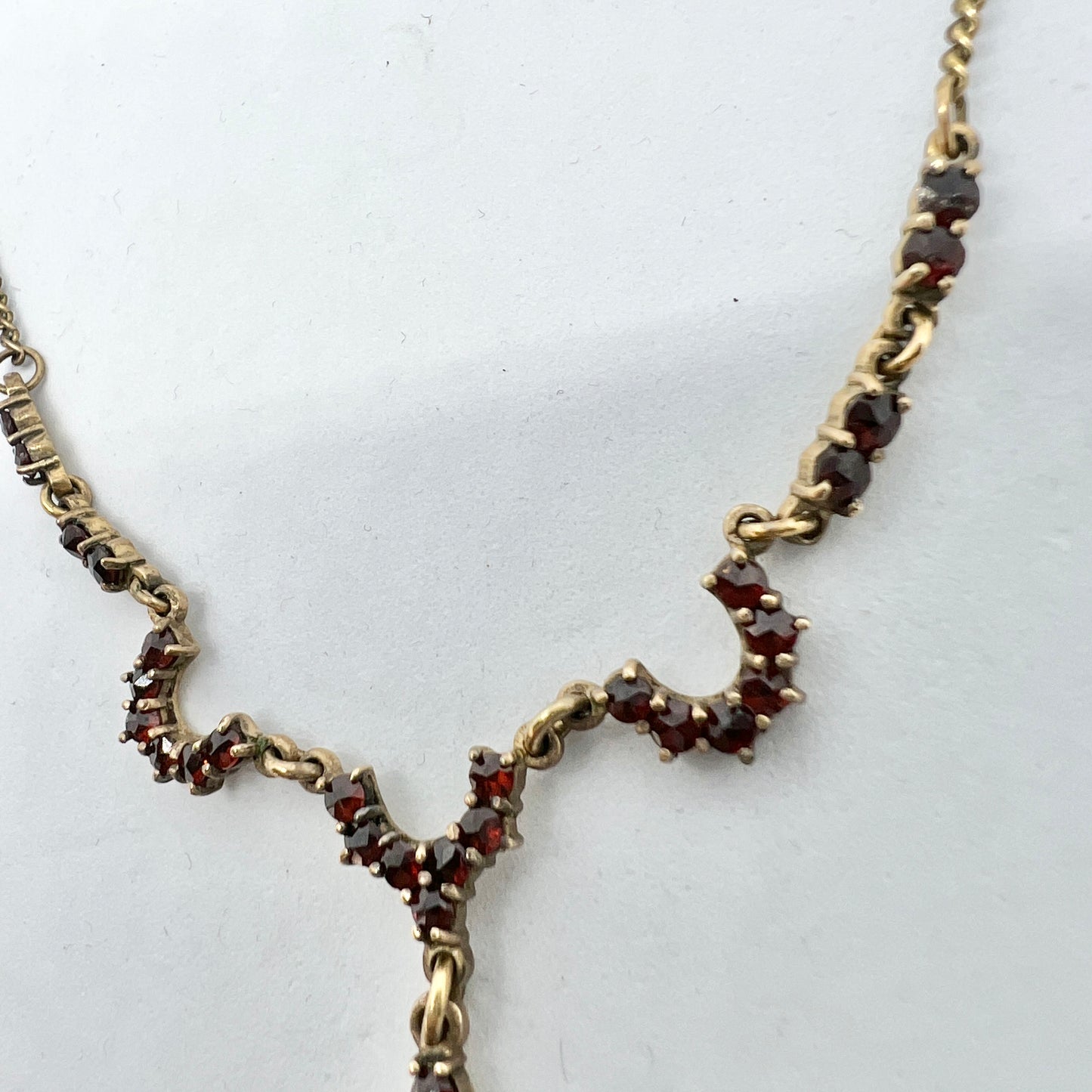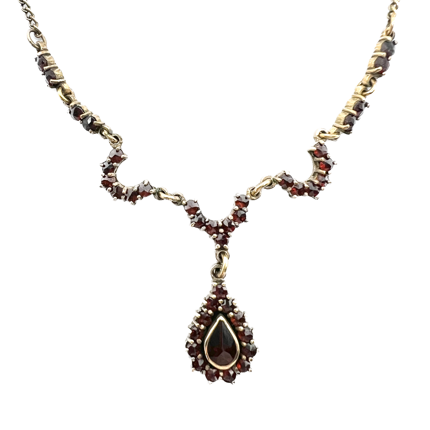 Very charming vintage gilt solid 835 silver bohemian garnet necklace. Hallmarked for 835 silver, continental Europe early - mid 1900s.
