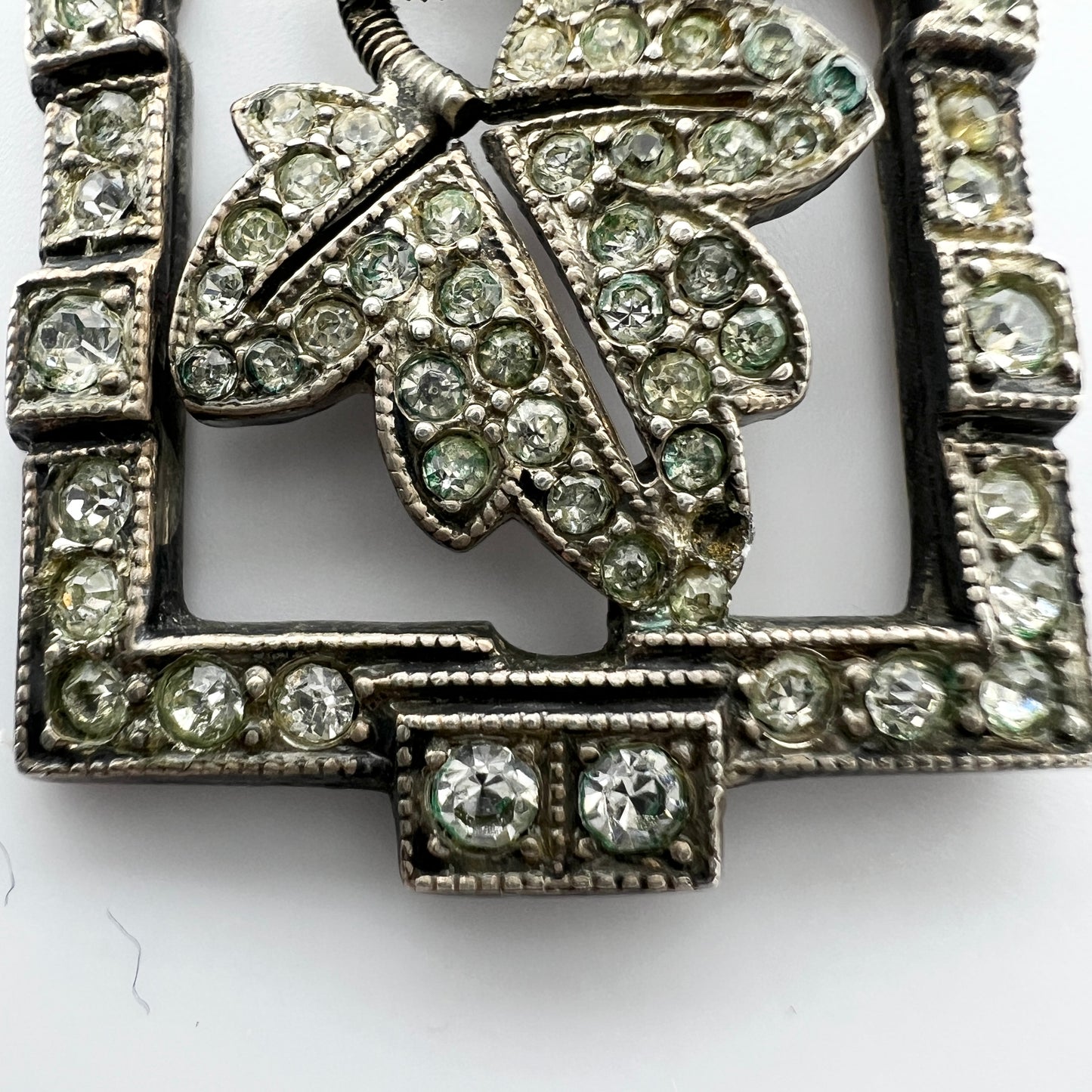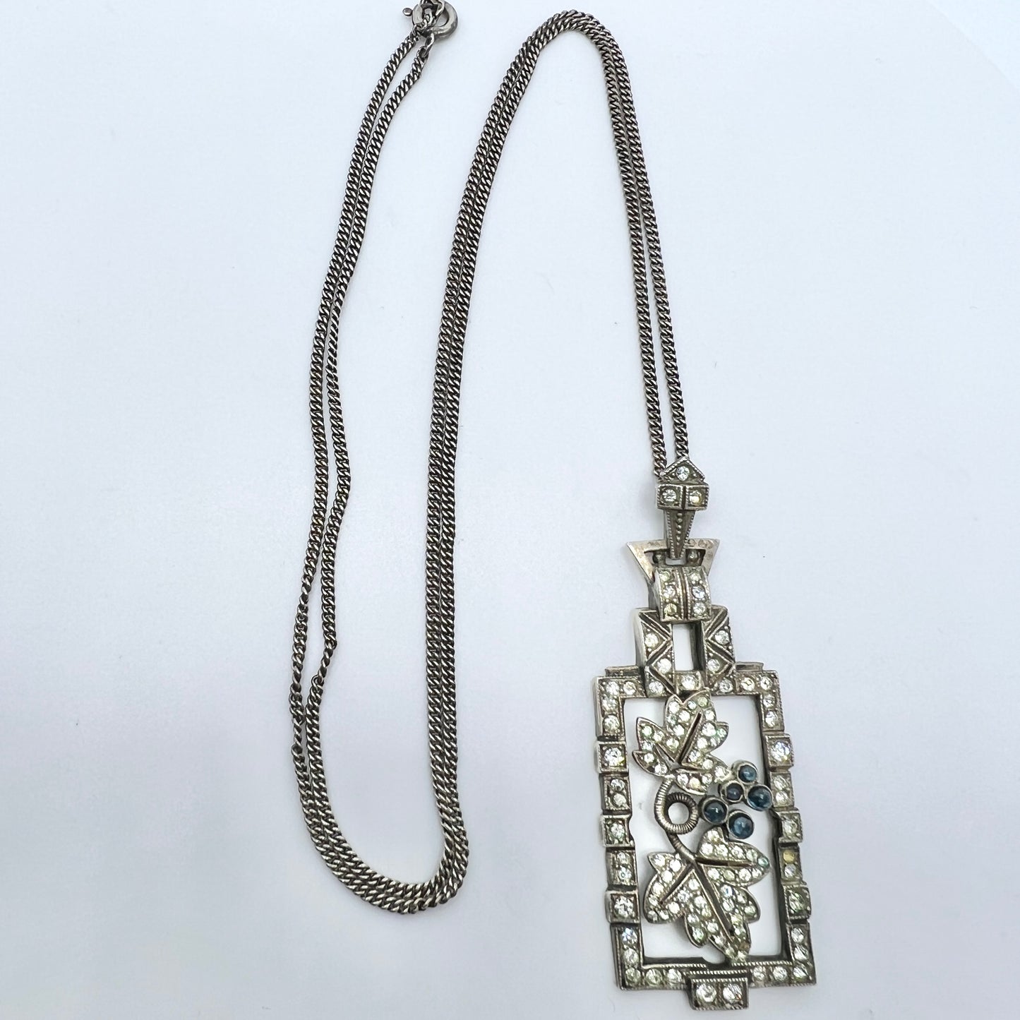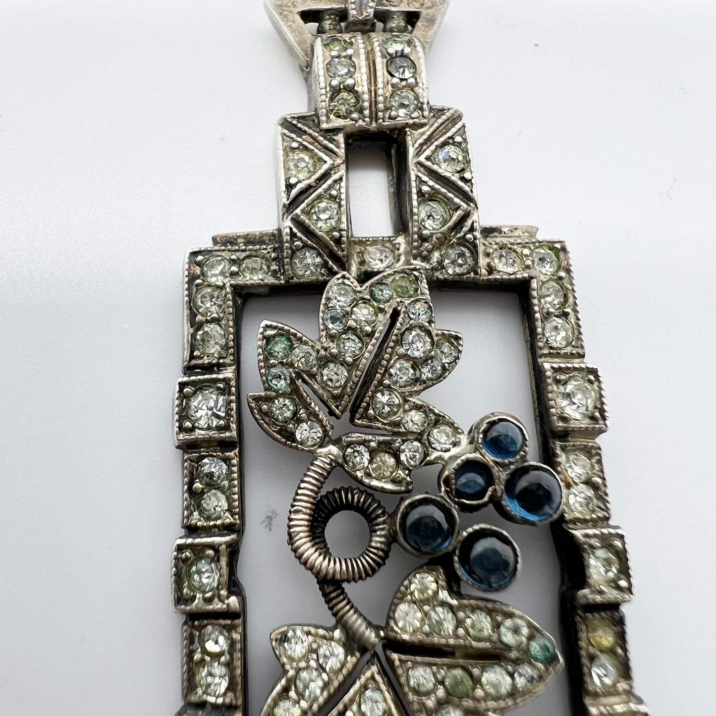 Vintage c 1930 Art Deco 935 Sterling Silver Paste Grape Pendant Long Chain Necklace.