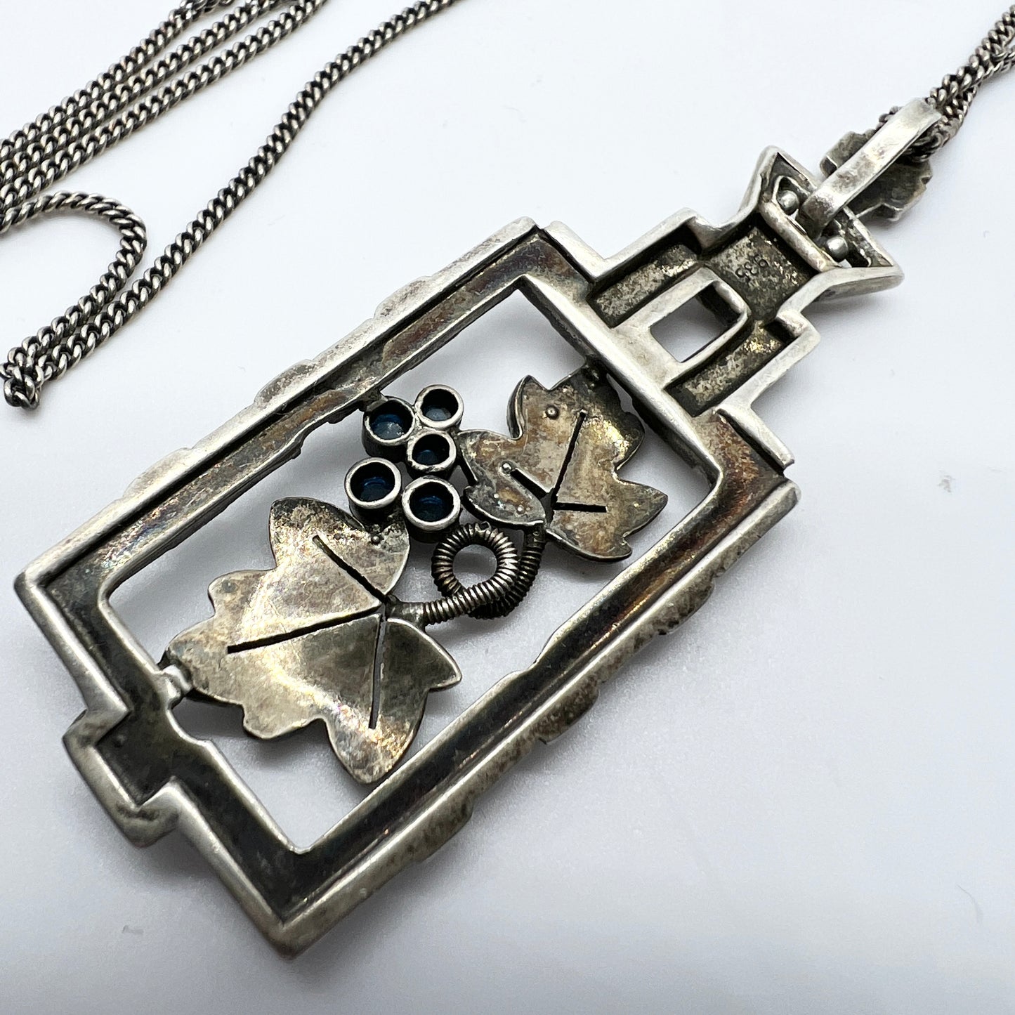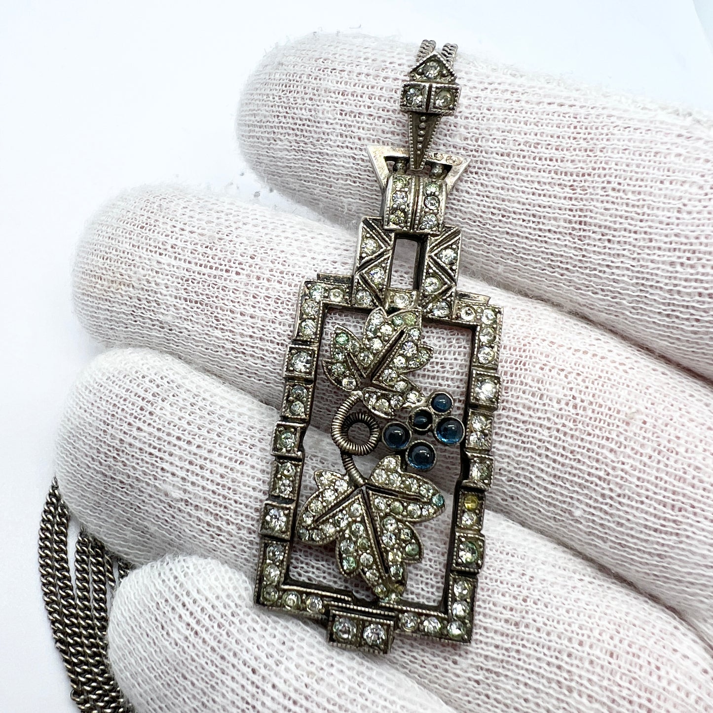 Wonderful and much sought after vintage sterling silver paste stone grape pendant necklace. Pendant and chain hallmarked with Swedish import marks. Also marked for 935 silver. Germany or Austria c 1930.