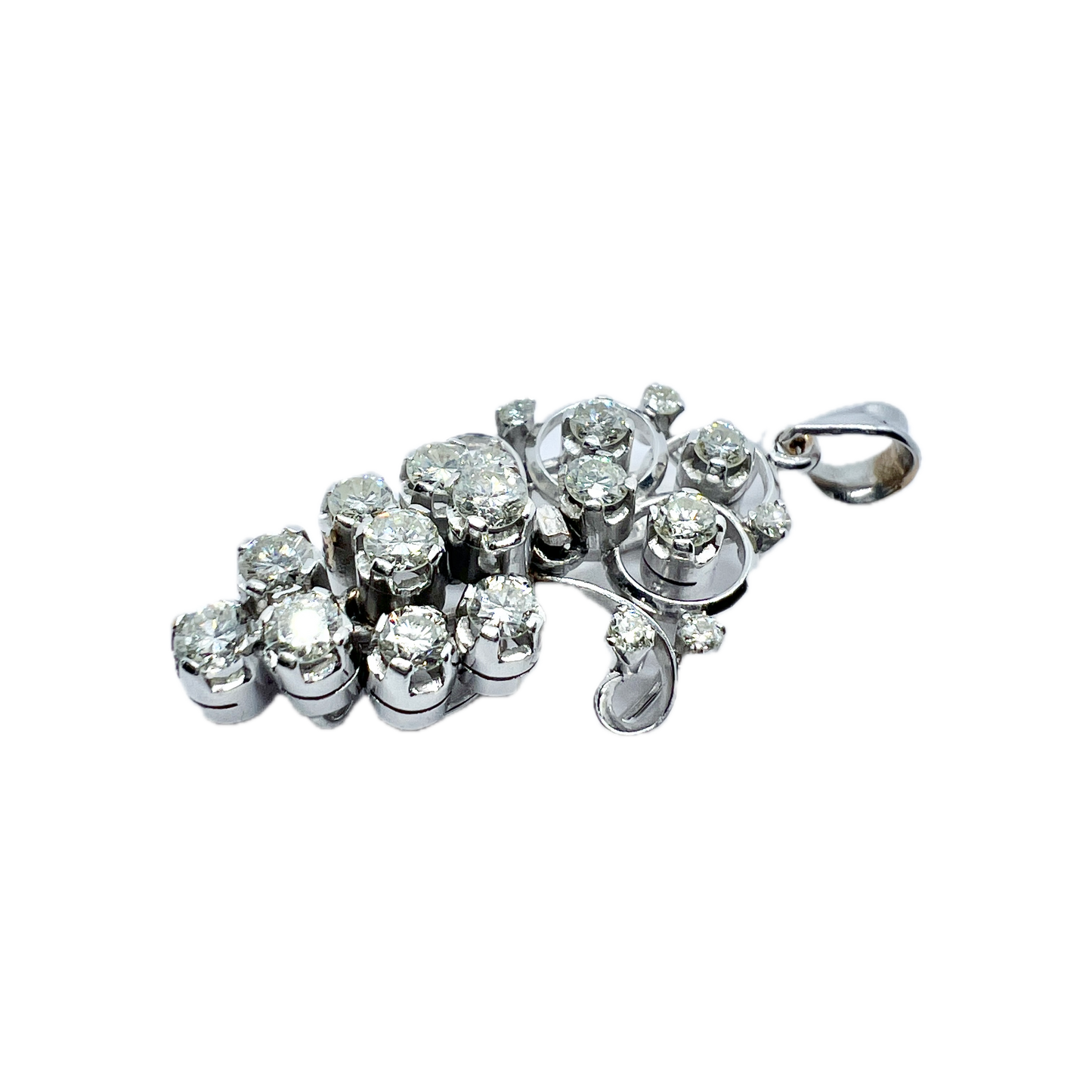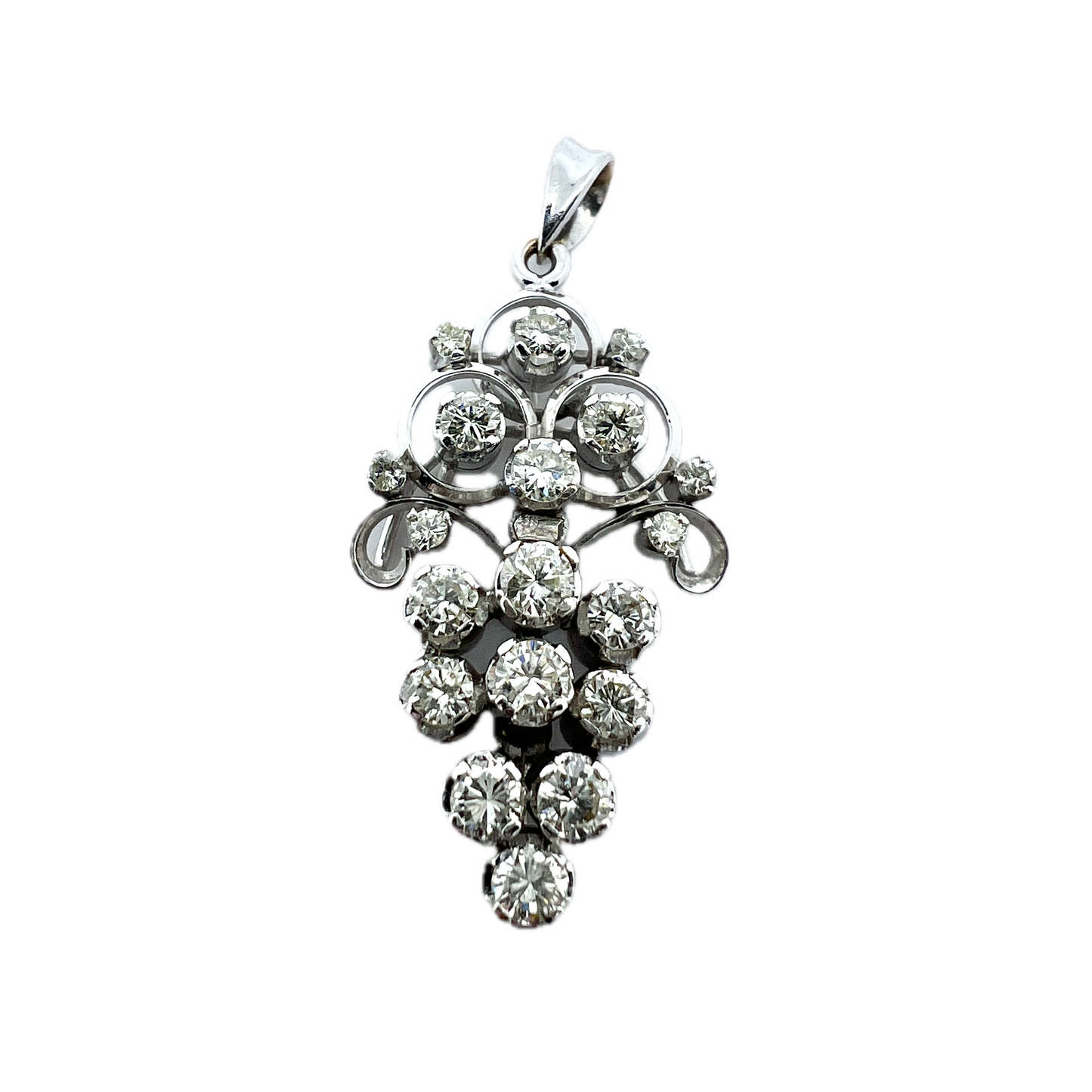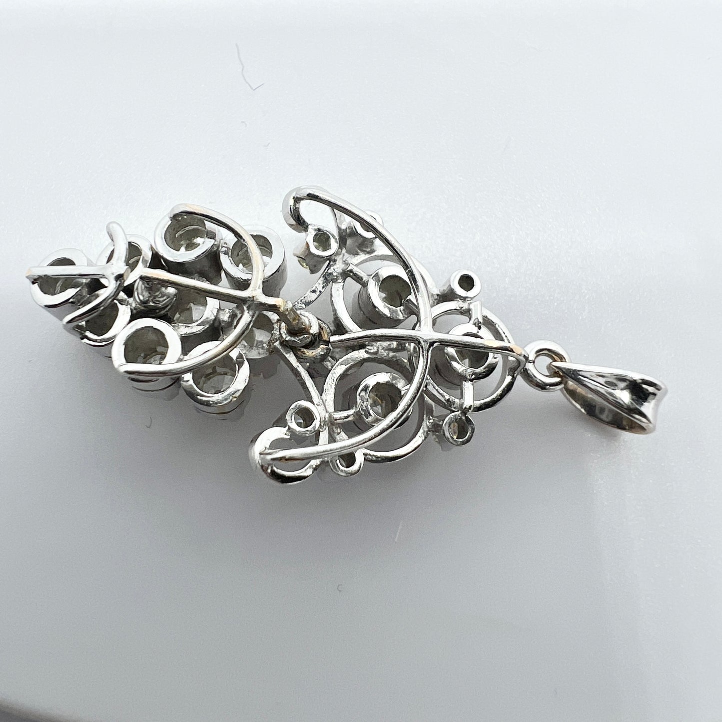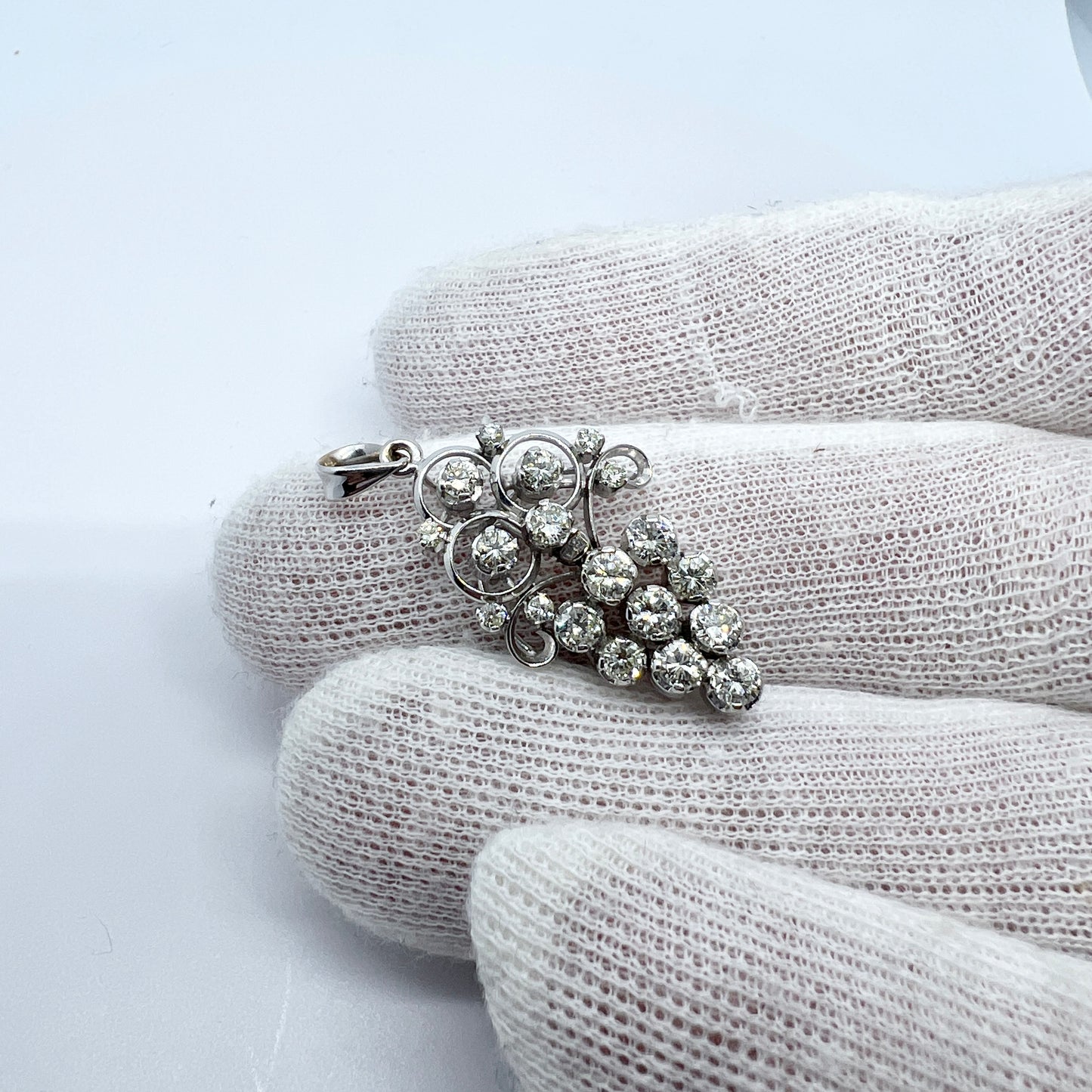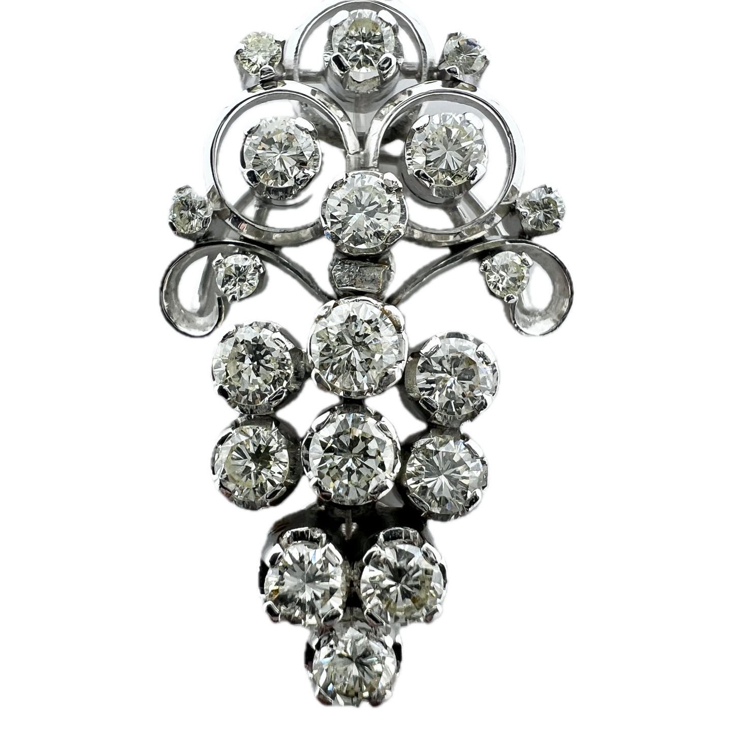 Wonderful vintage 18k white gold diamond "grapes" pendant. Apparently unmarked. c 1950s.