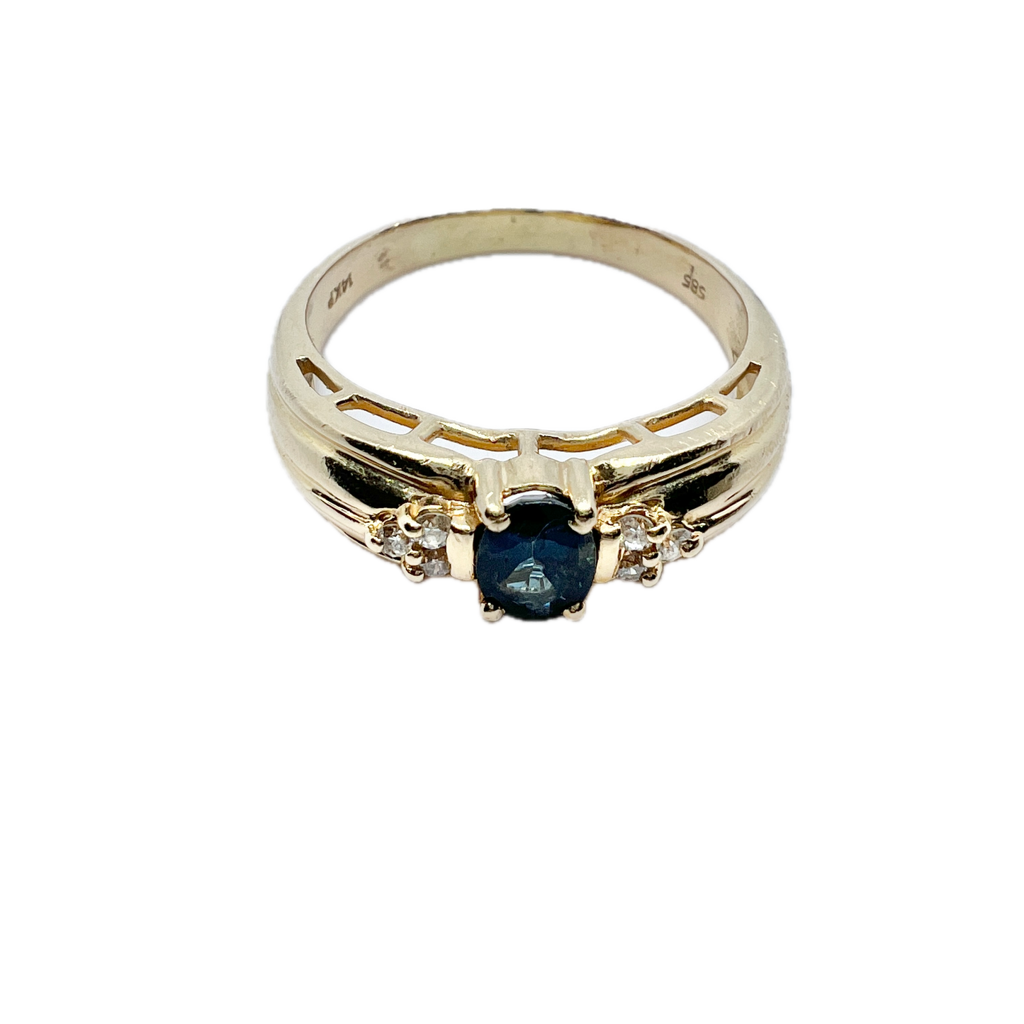 Vintage c 1950s. Mid-Century 14k Gold Diamond Sapphire Ring.